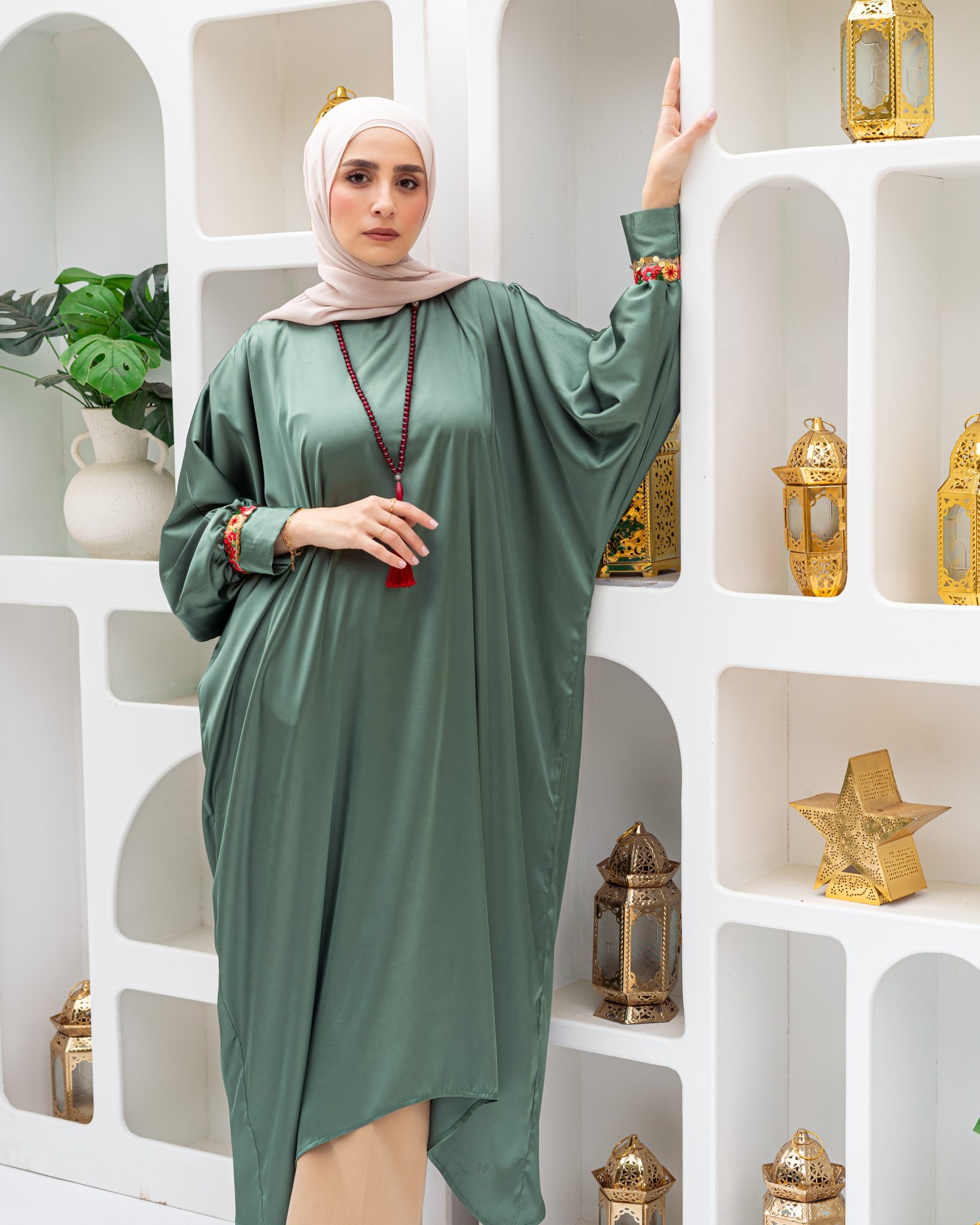 Olive green Satin Dress