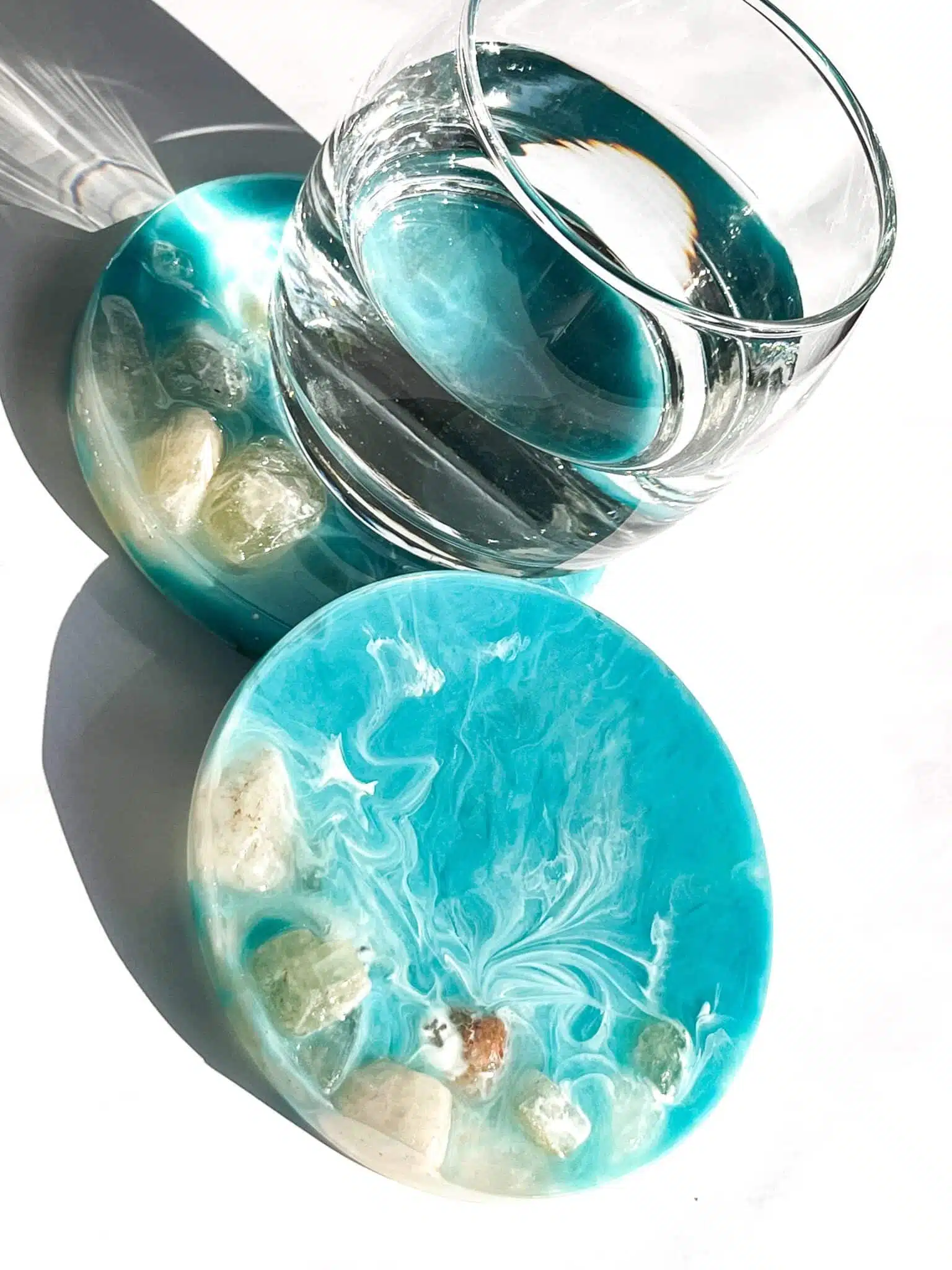 Be the first to review “Opaque turquoise rocky sea coaster”