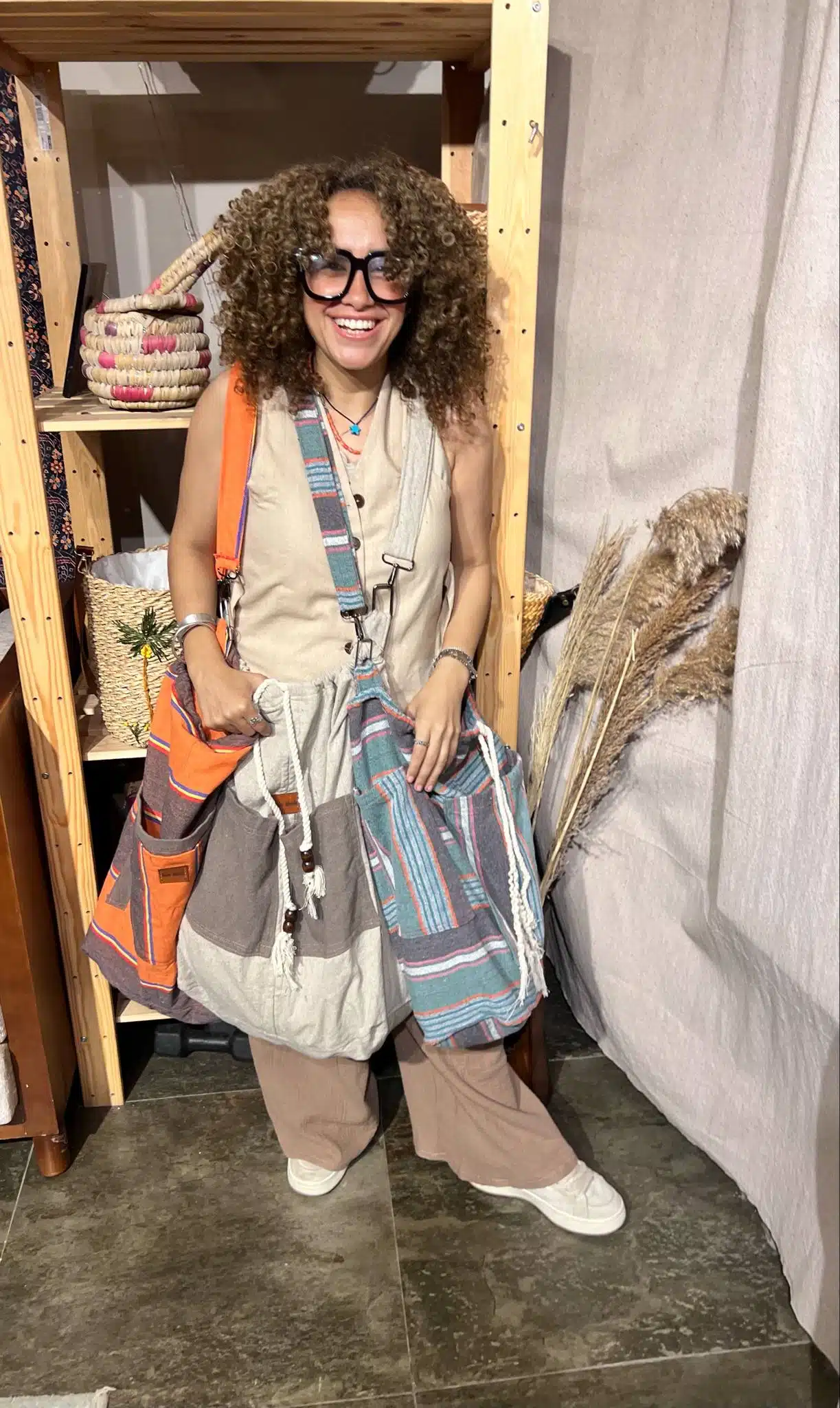 شنطة رضا ملونة حجم ٤٠*٤٥ تقريبا مما يجعلها اختيار مناسب للايام الطويلة التي تحتاجي فيها حقا للكثير من أشياءك الشخصية😍