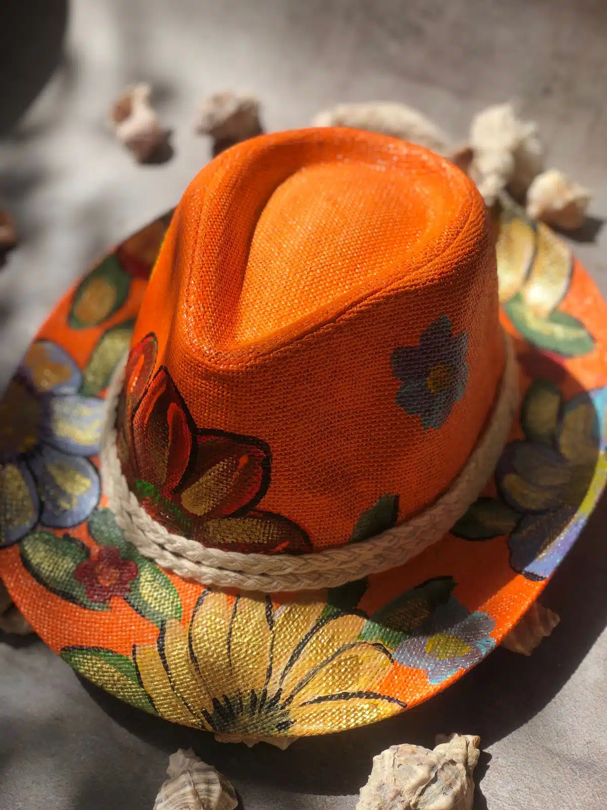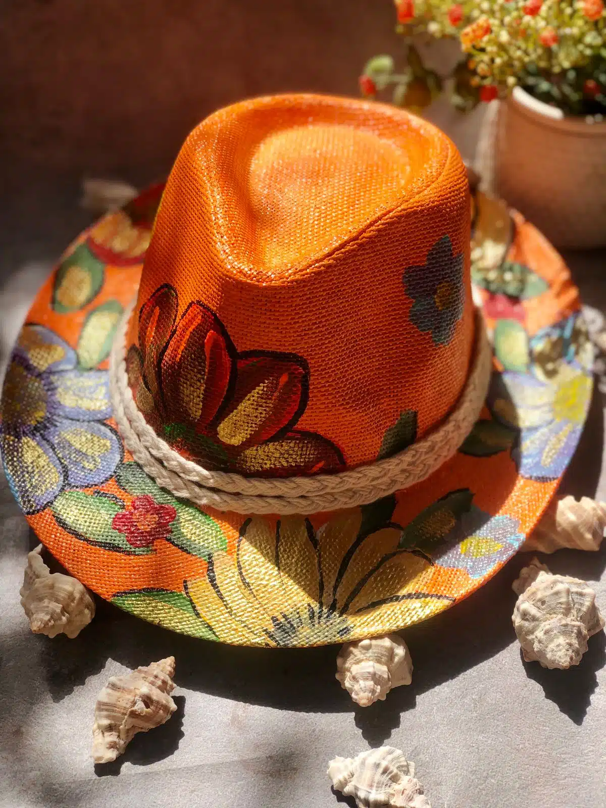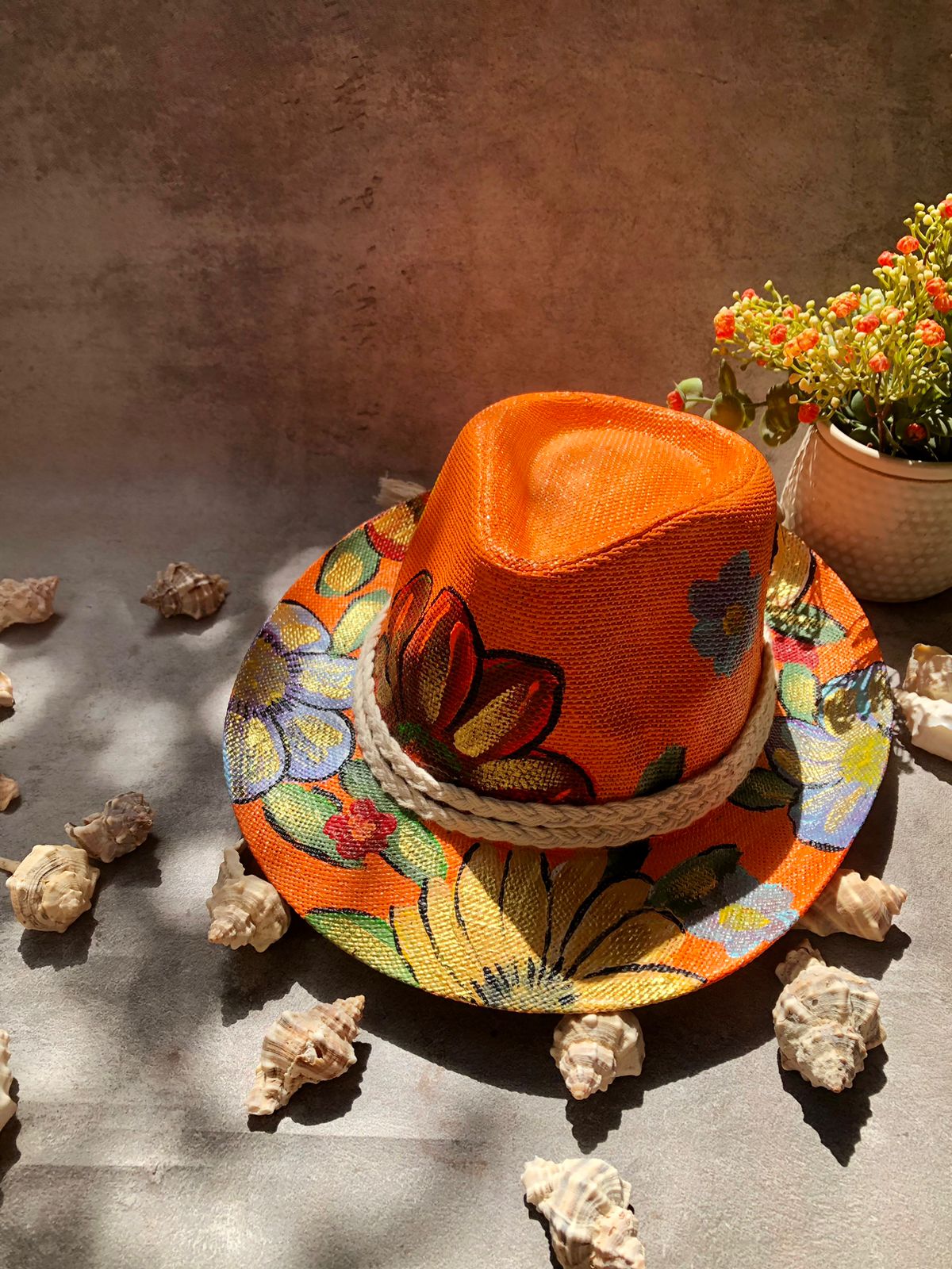 Hand painted orange hats with mixed colors of flowers