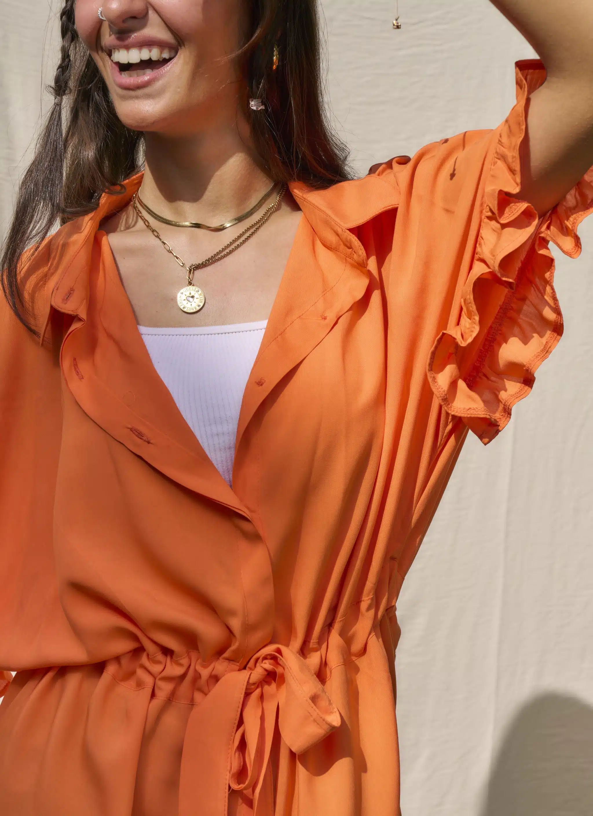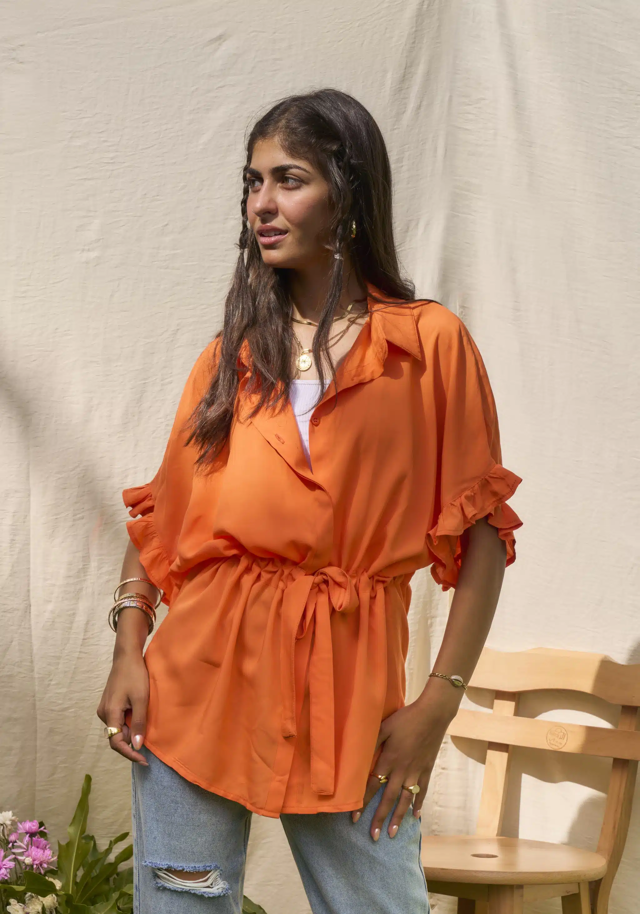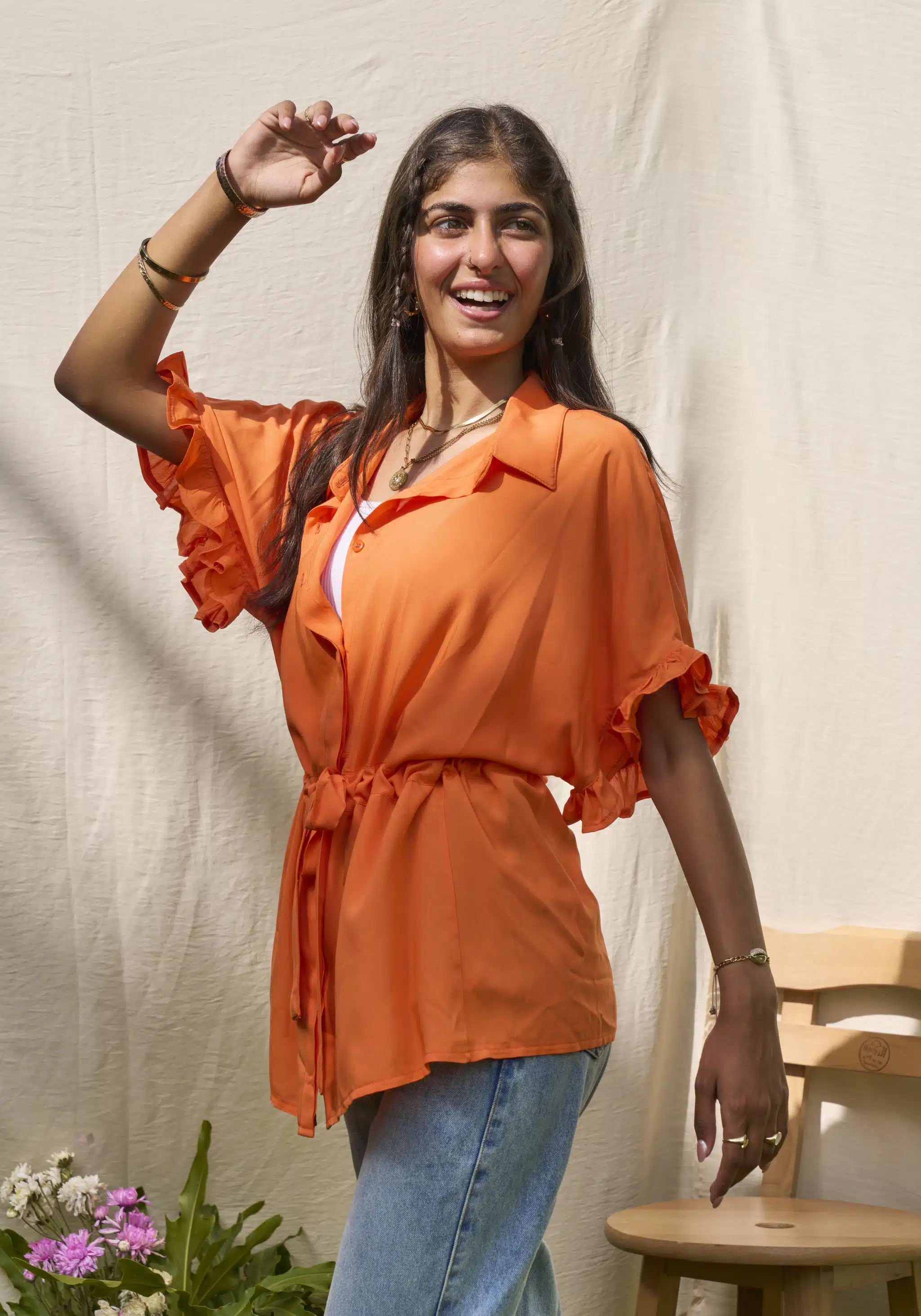 Orange ruffled sleeves shirt