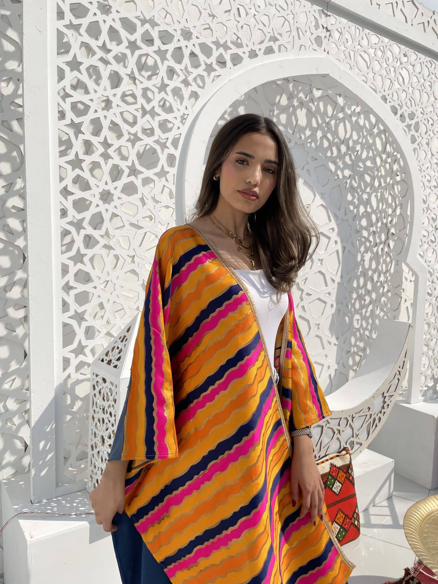 Orange kaftan with stripes