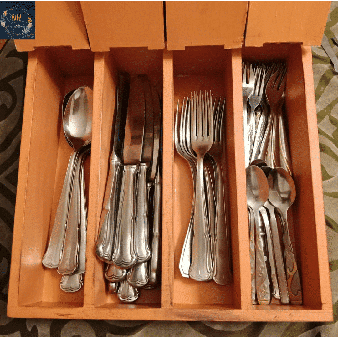 handmade decoupage organizer for spoons, forks & knives