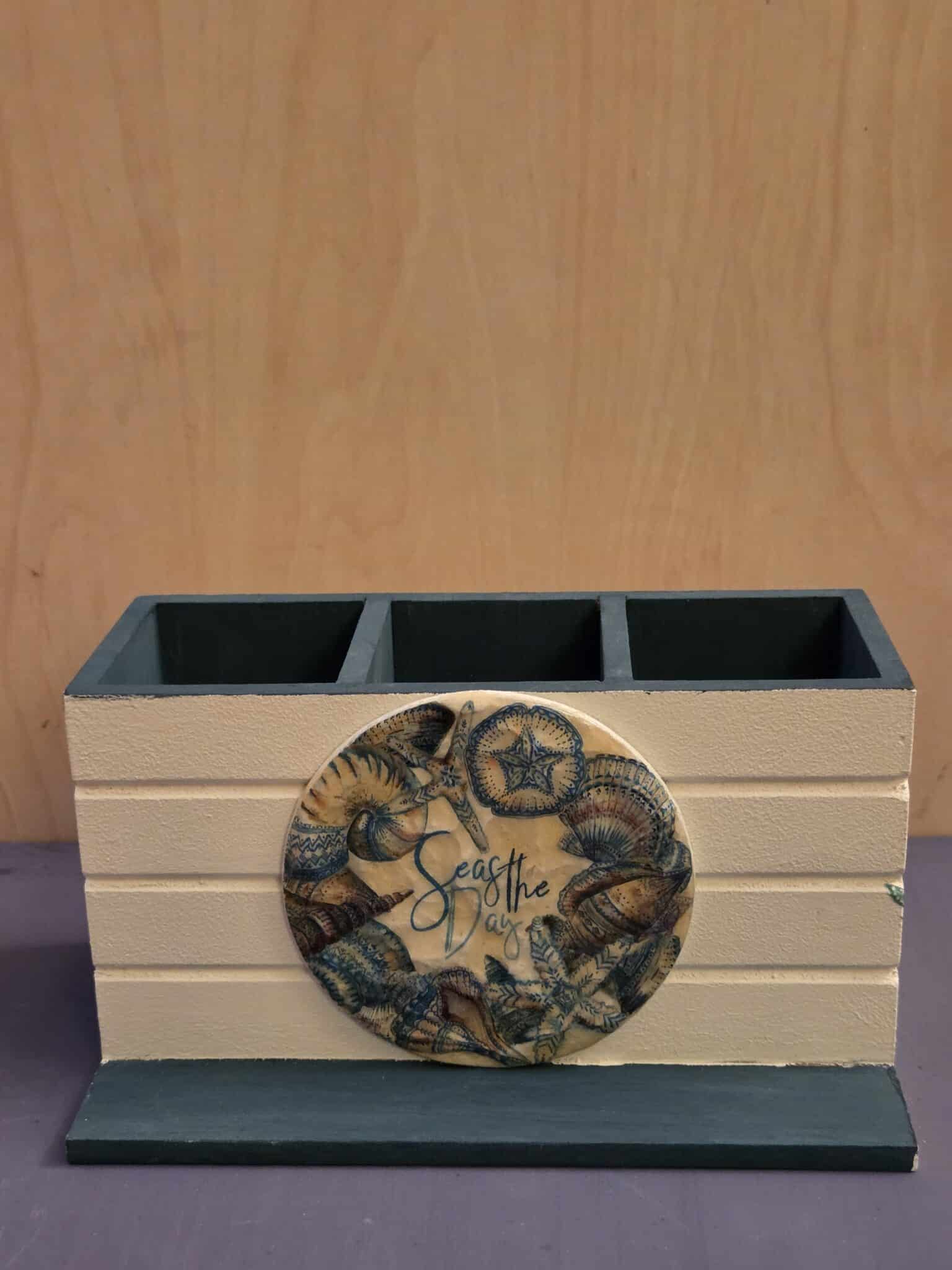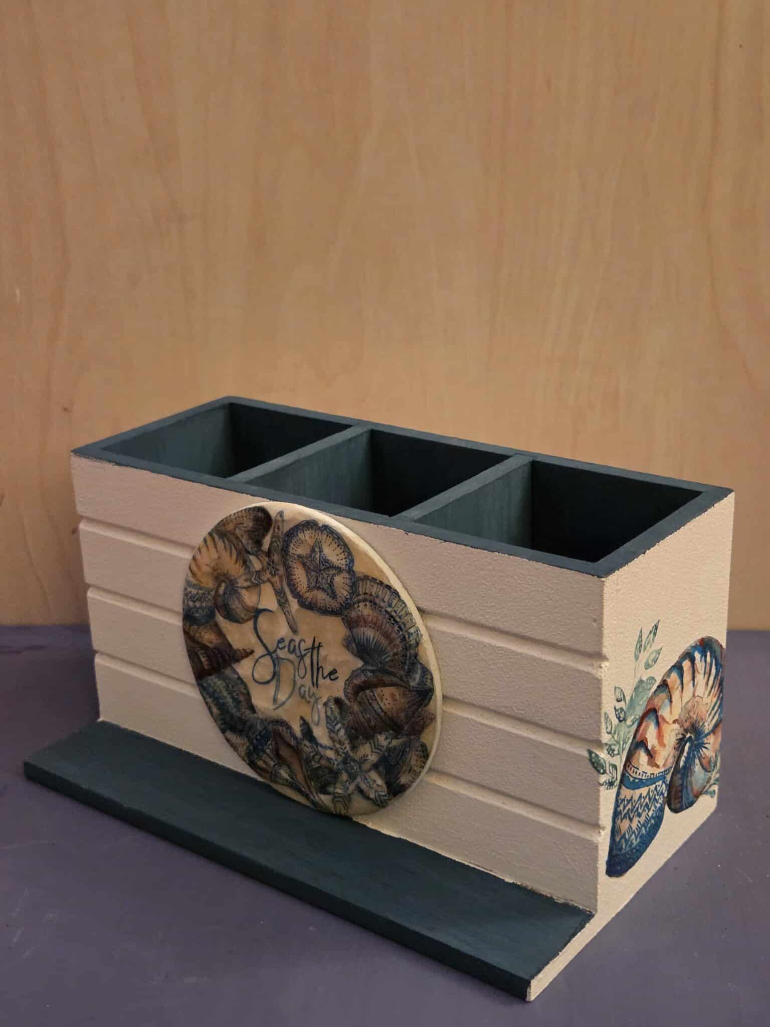 Organizer 20*10 cm decoupaged with a summer pattern can be used for cutlery in dining room or organizer in the living room