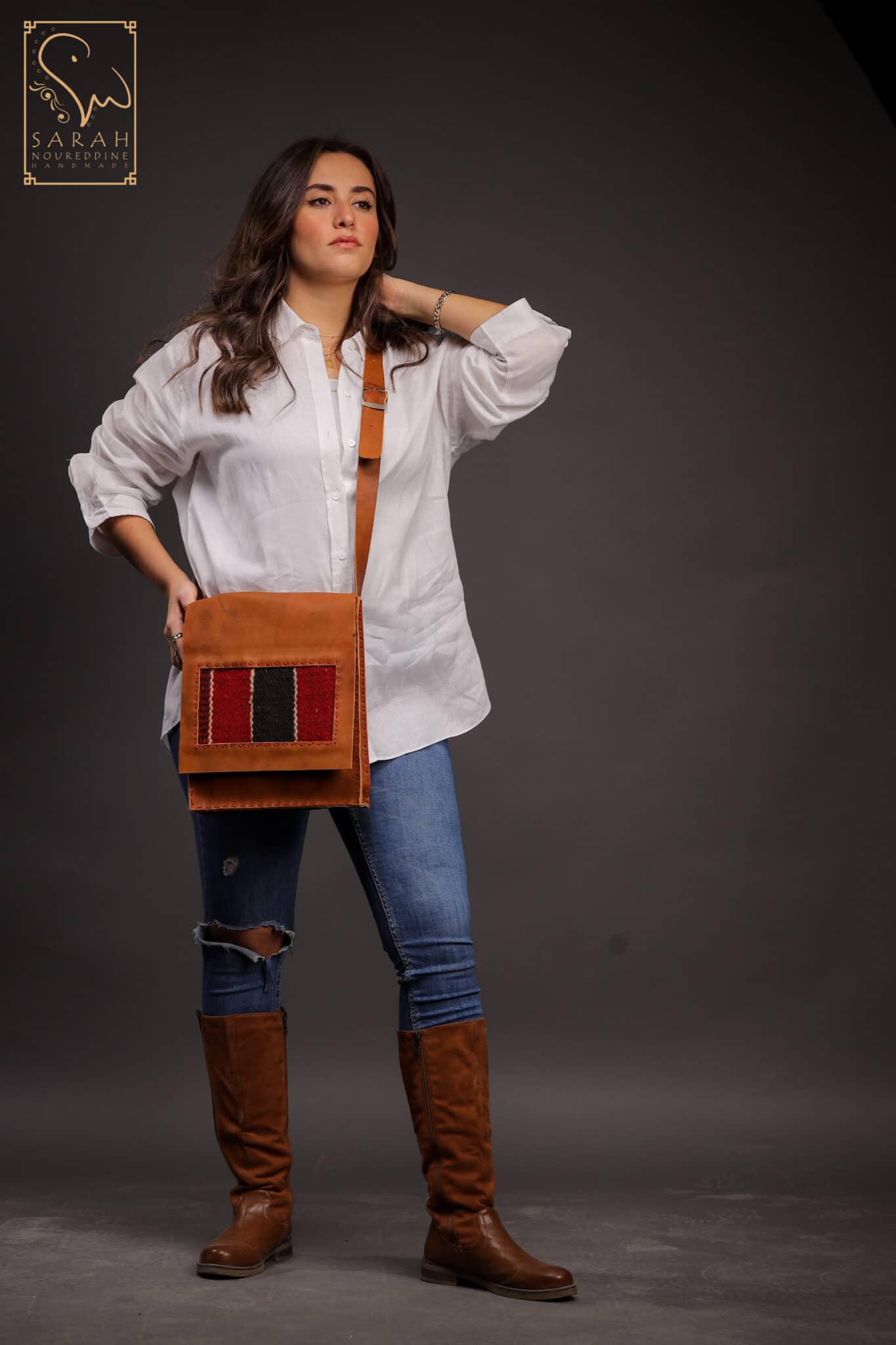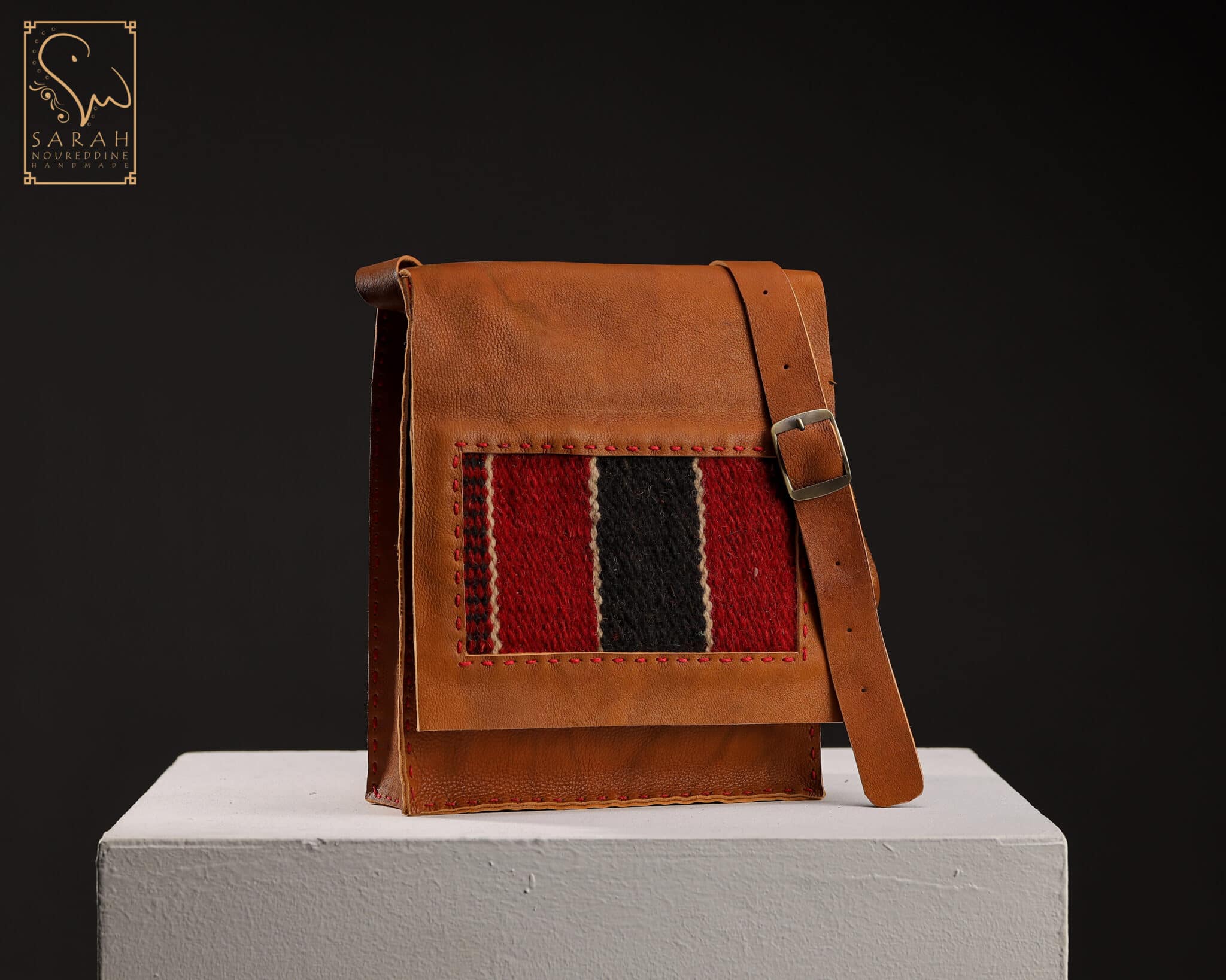 Genuine leather handmade bag with Arabian carpet