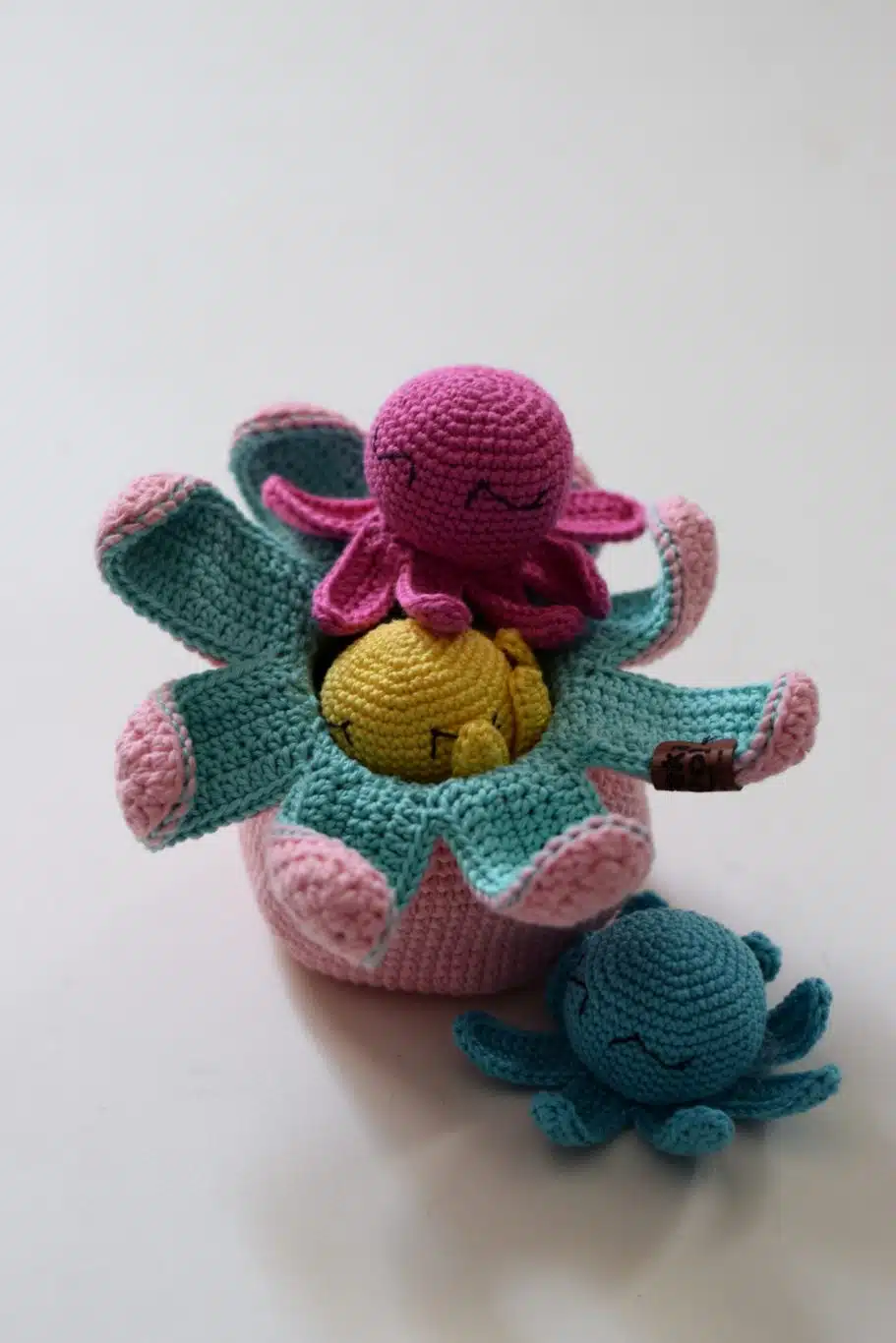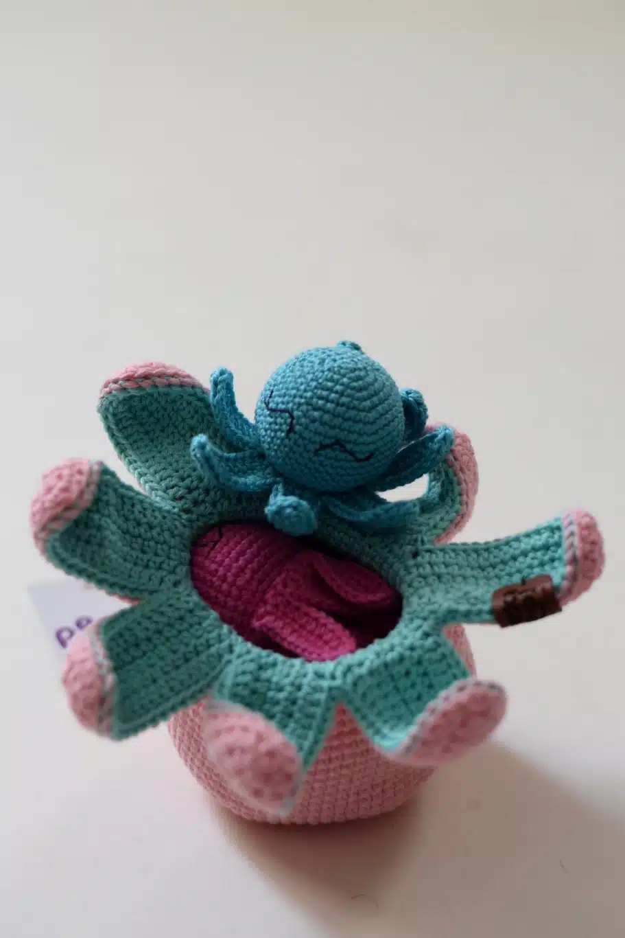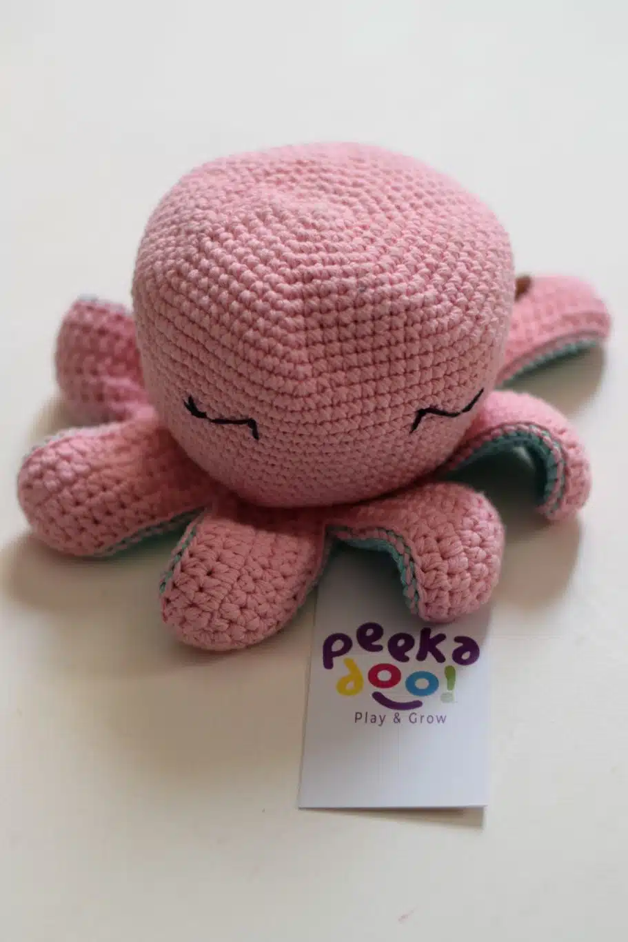 With eight twisty tentacles and a friendly smile, Otto the Octopus is a sensory-rich crochet toy that helps babies explore texture and movement.