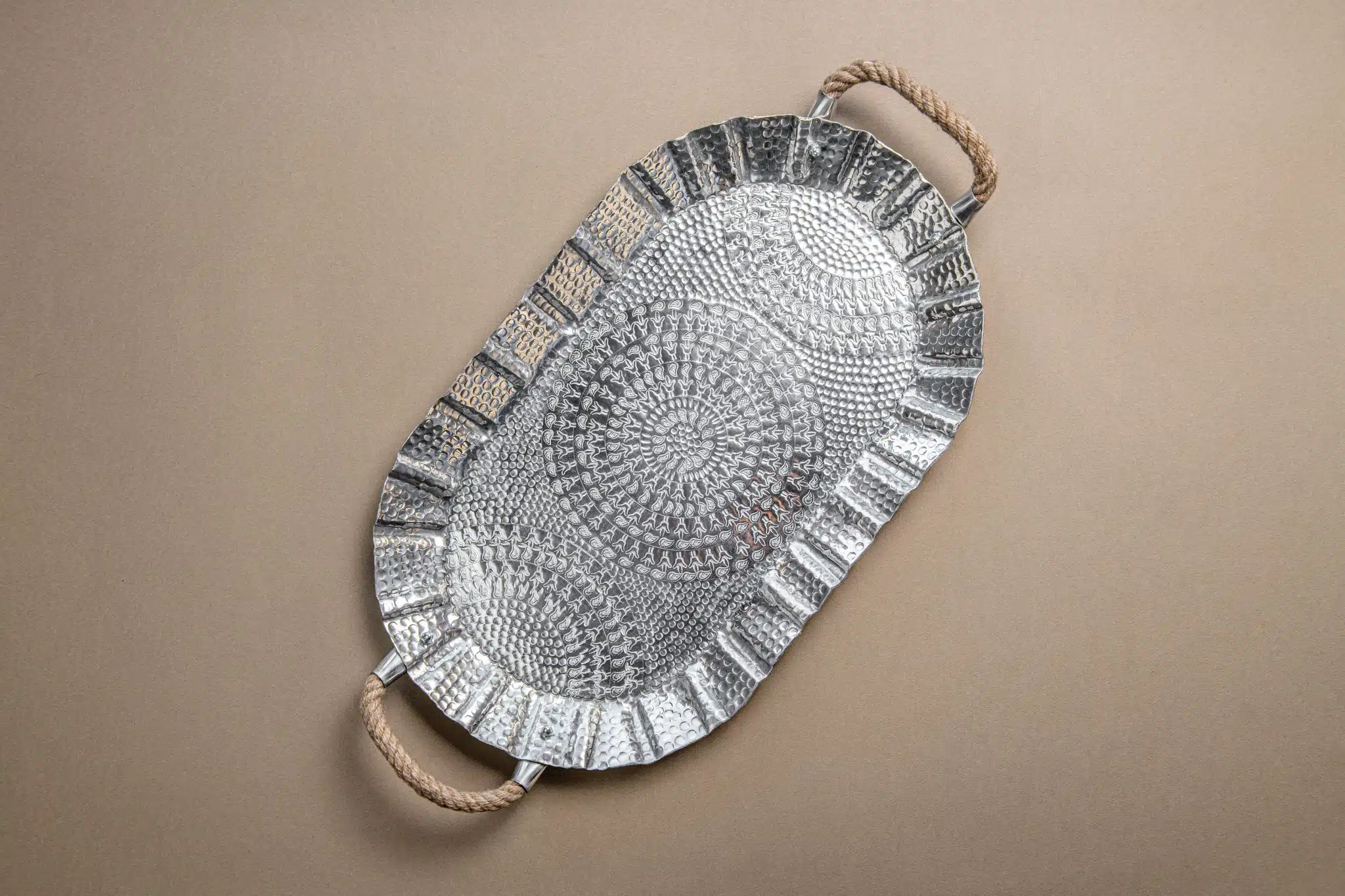 oval aluminum handmade tray and also used as serving plate