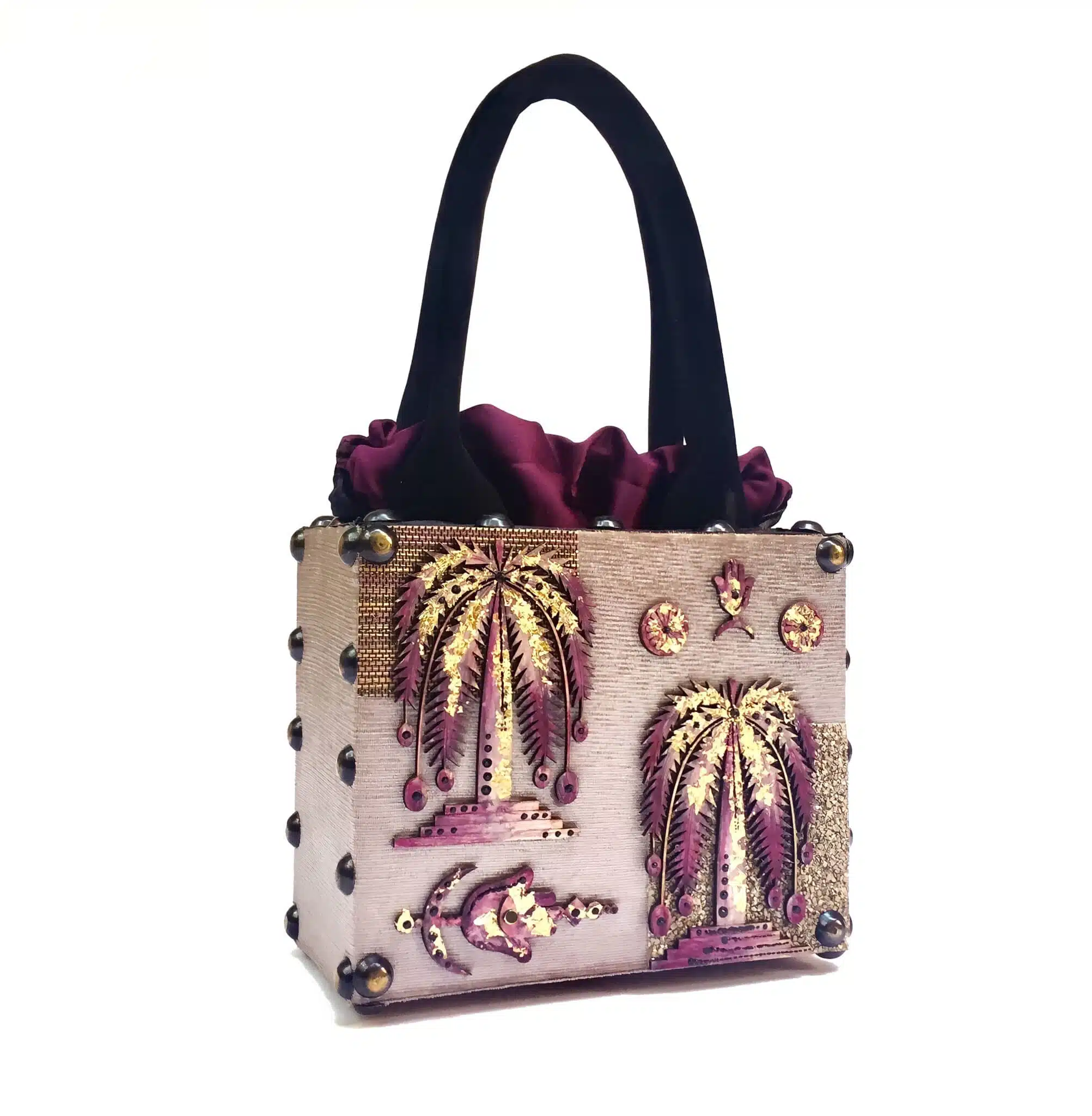 Wooden handpainted bag,