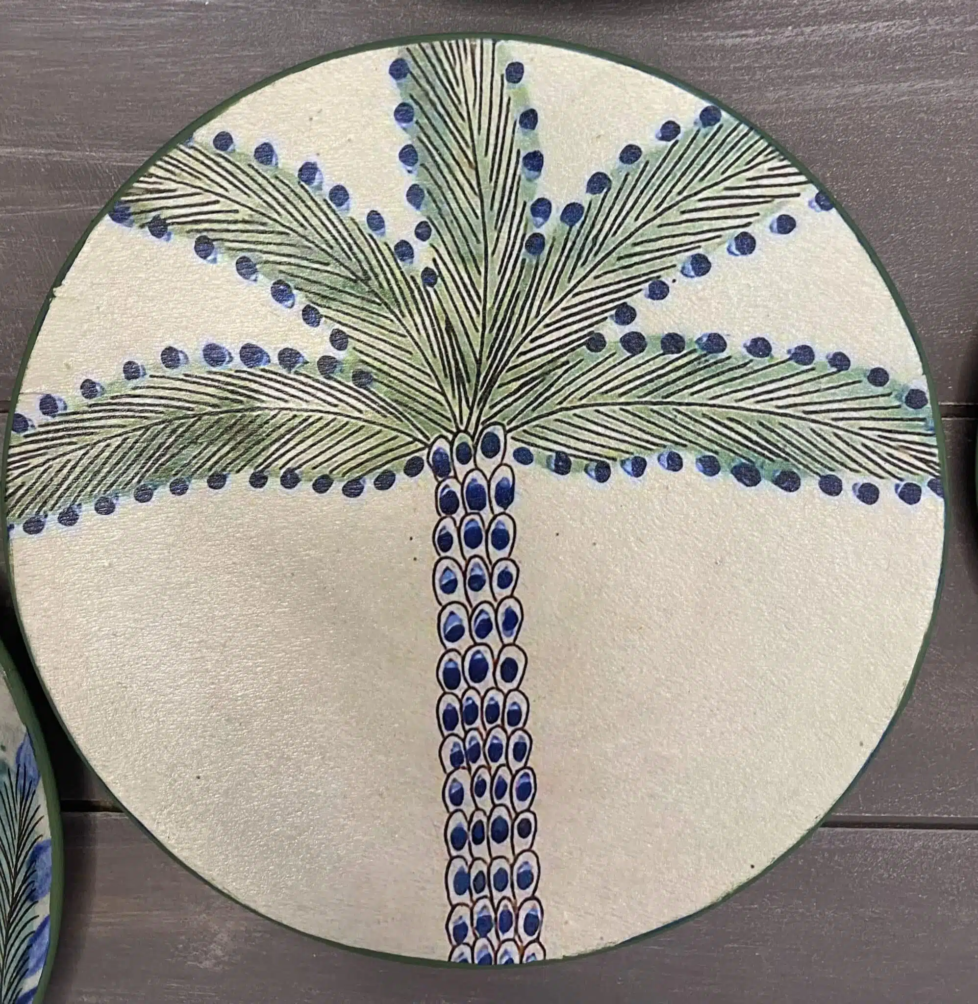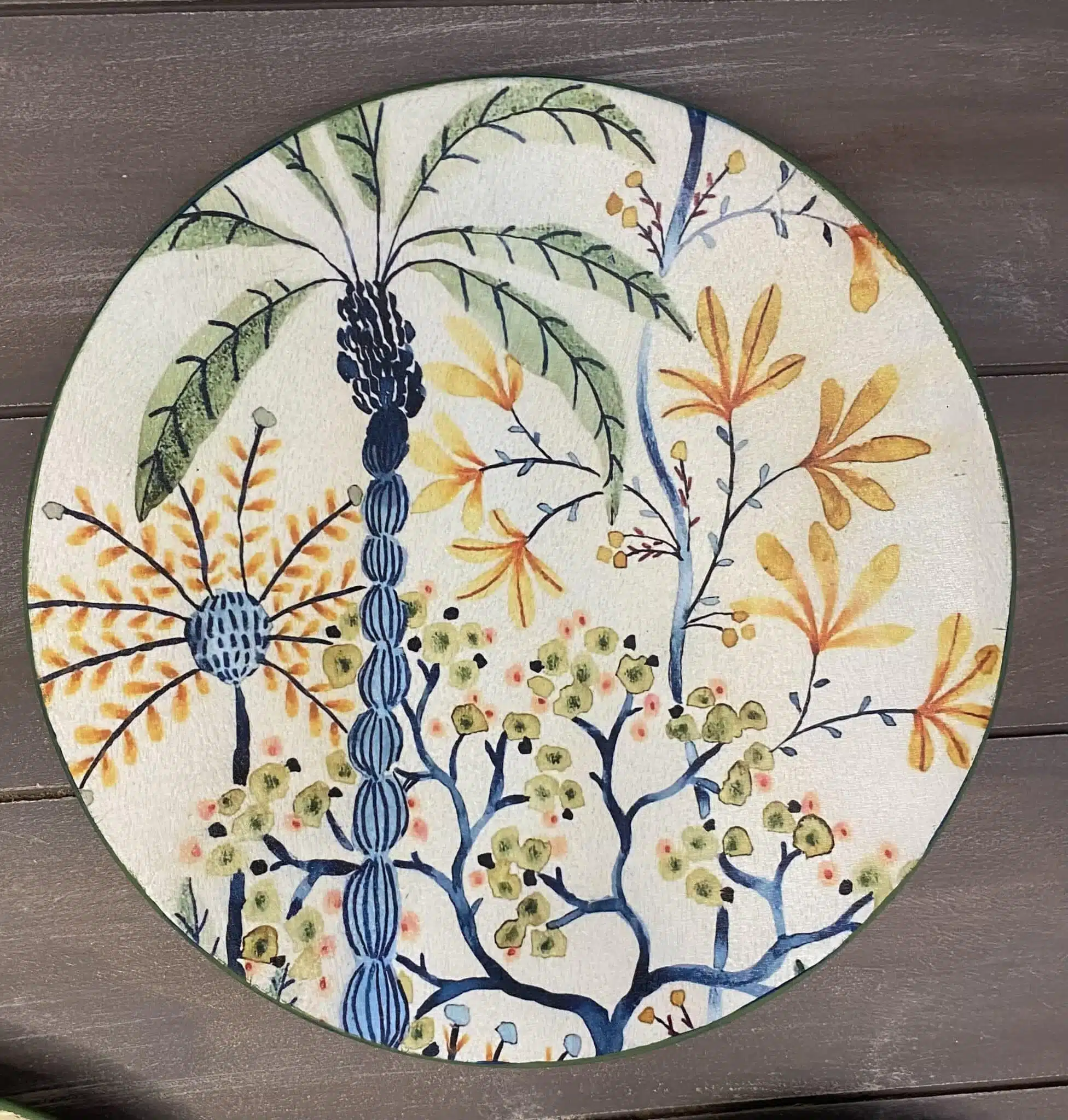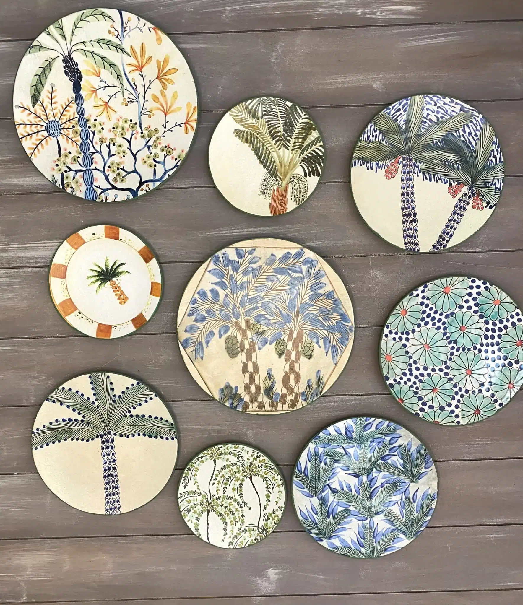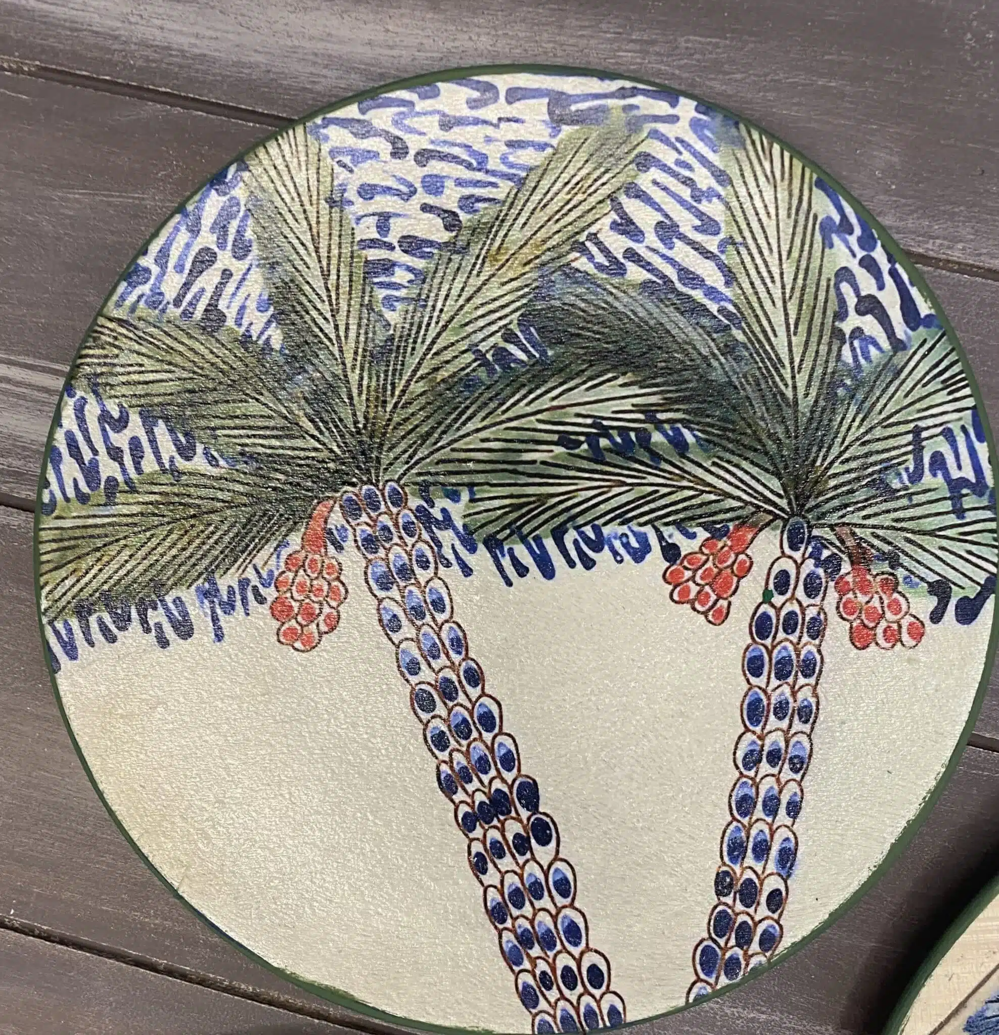 Decoupaged wall plates with palm trees theme
