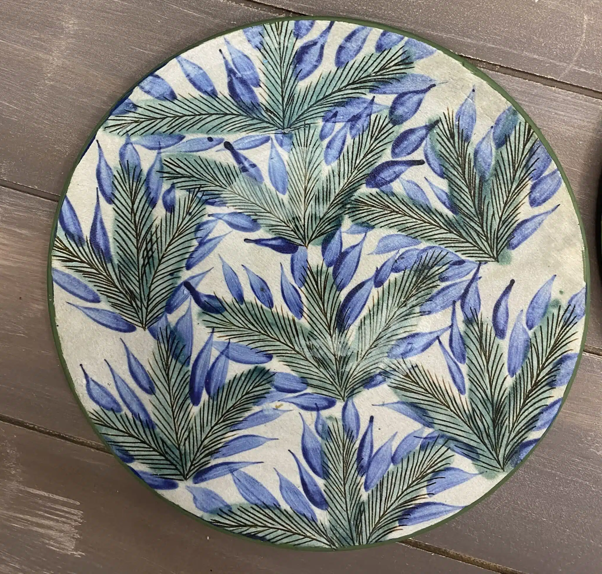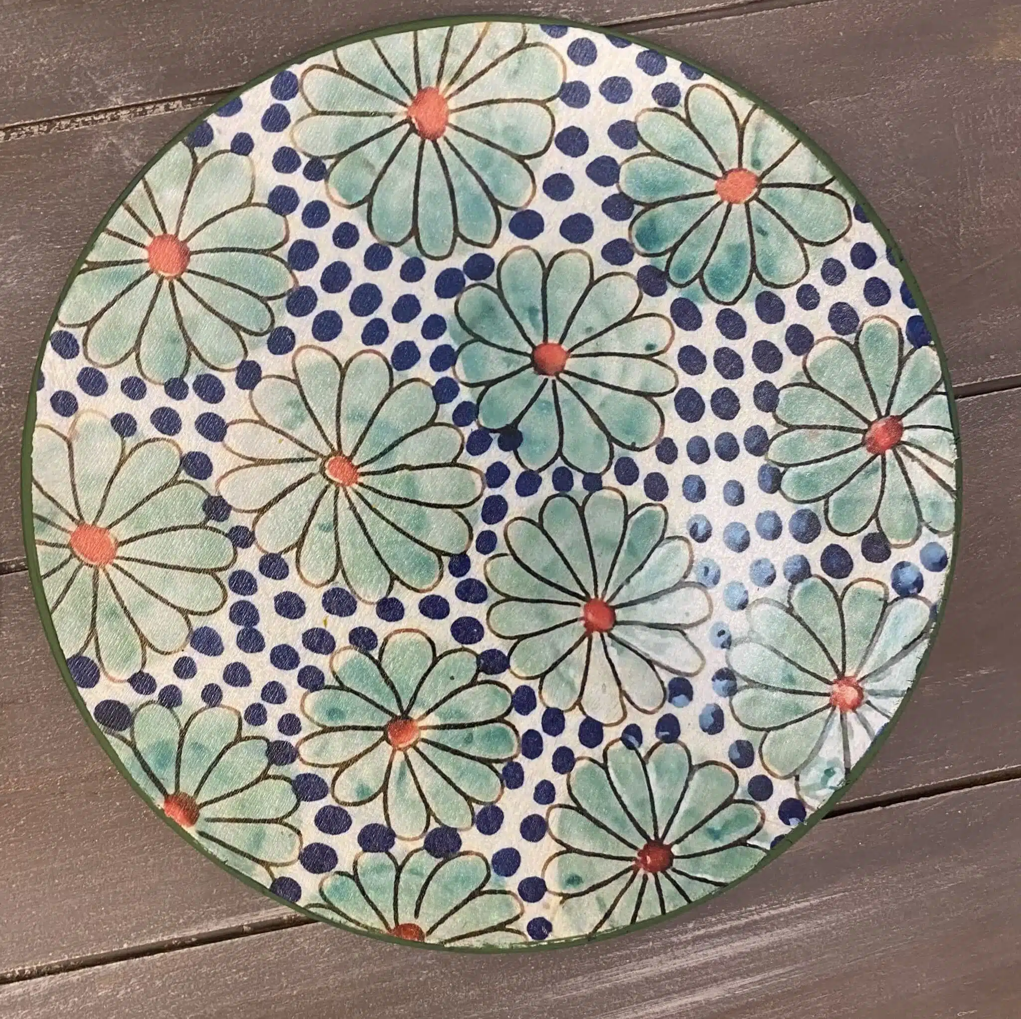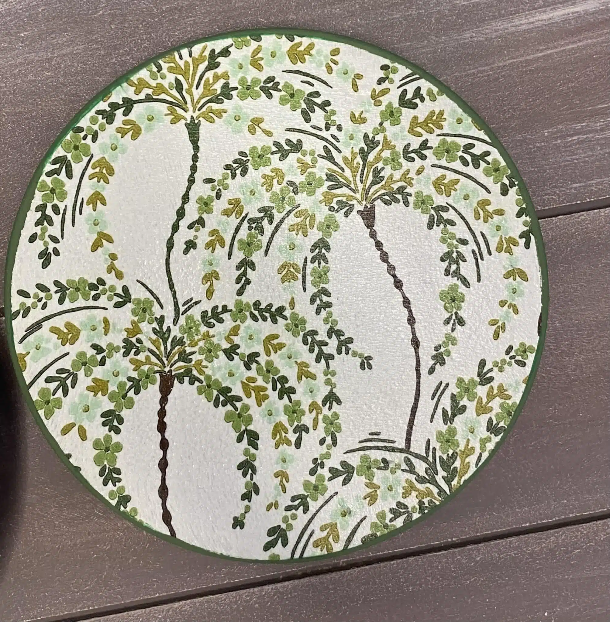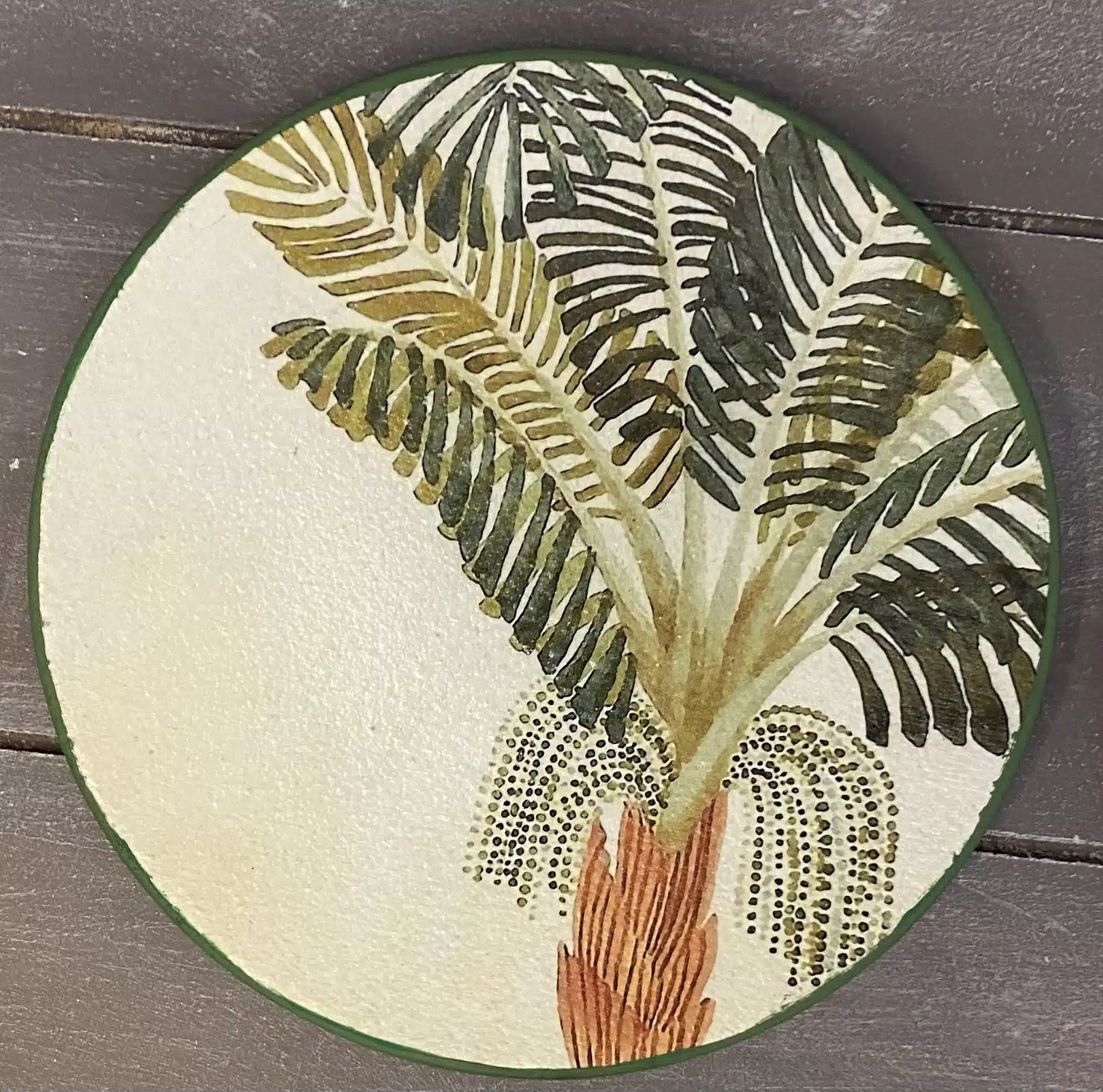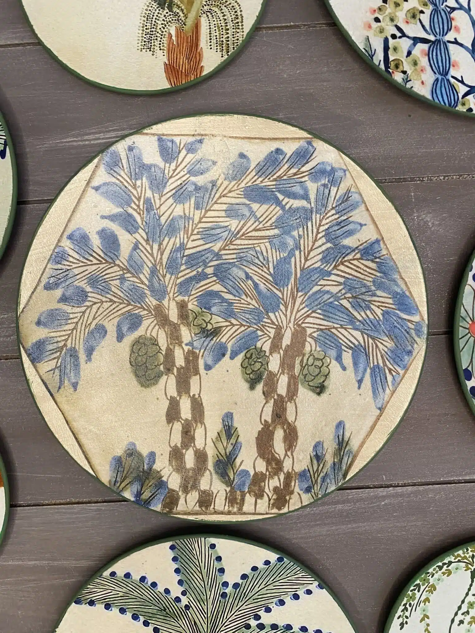 Decoupaged wall plates with palm trees theme