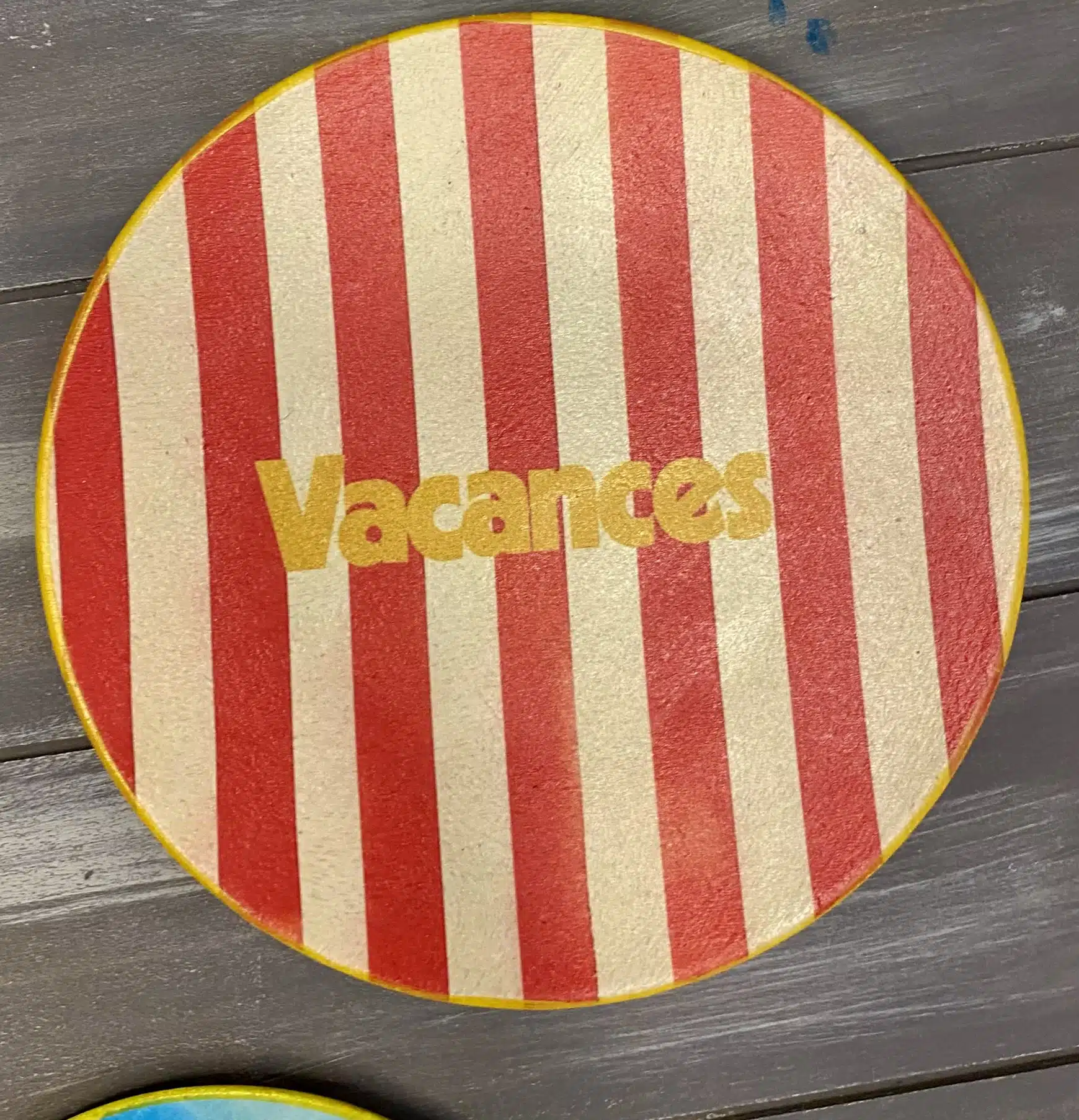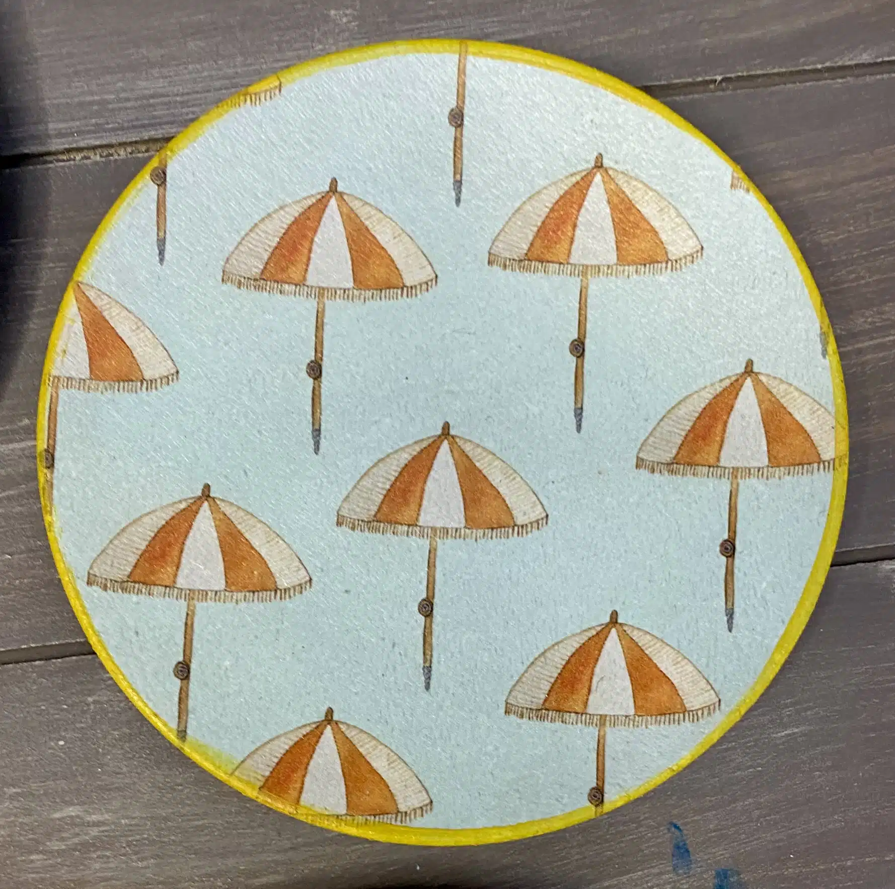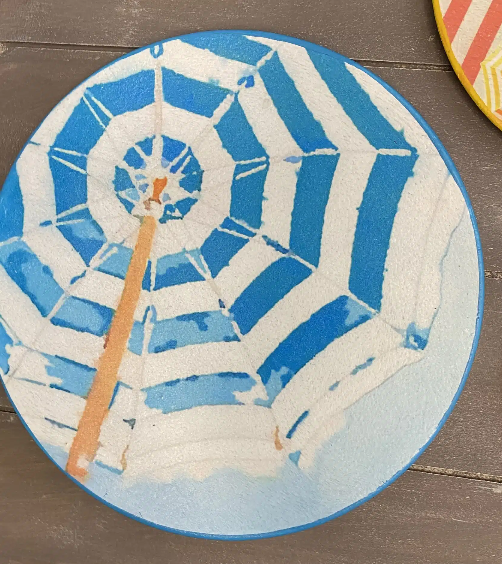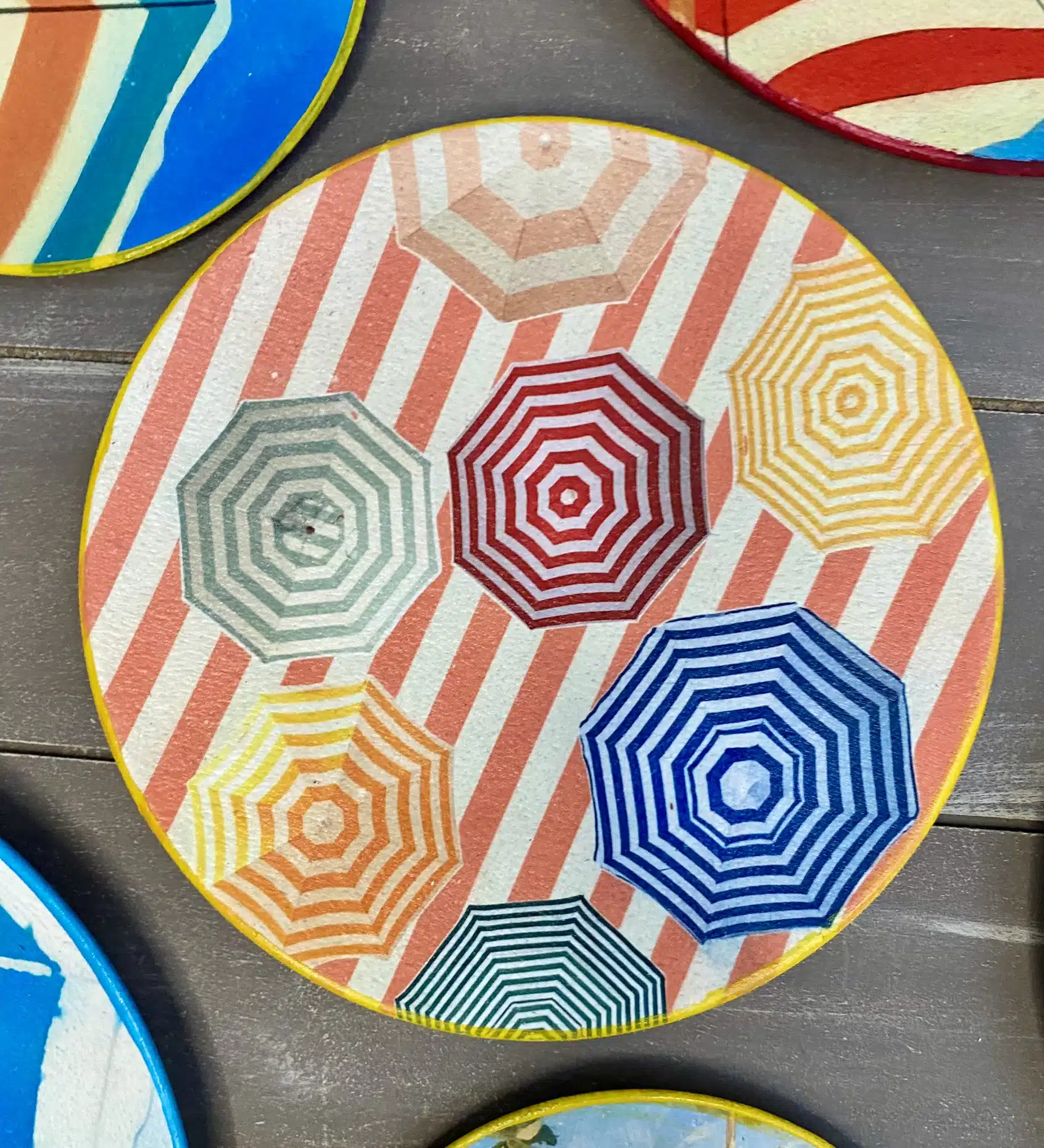 Decoupaged wall plates for summer in retro parasol theme