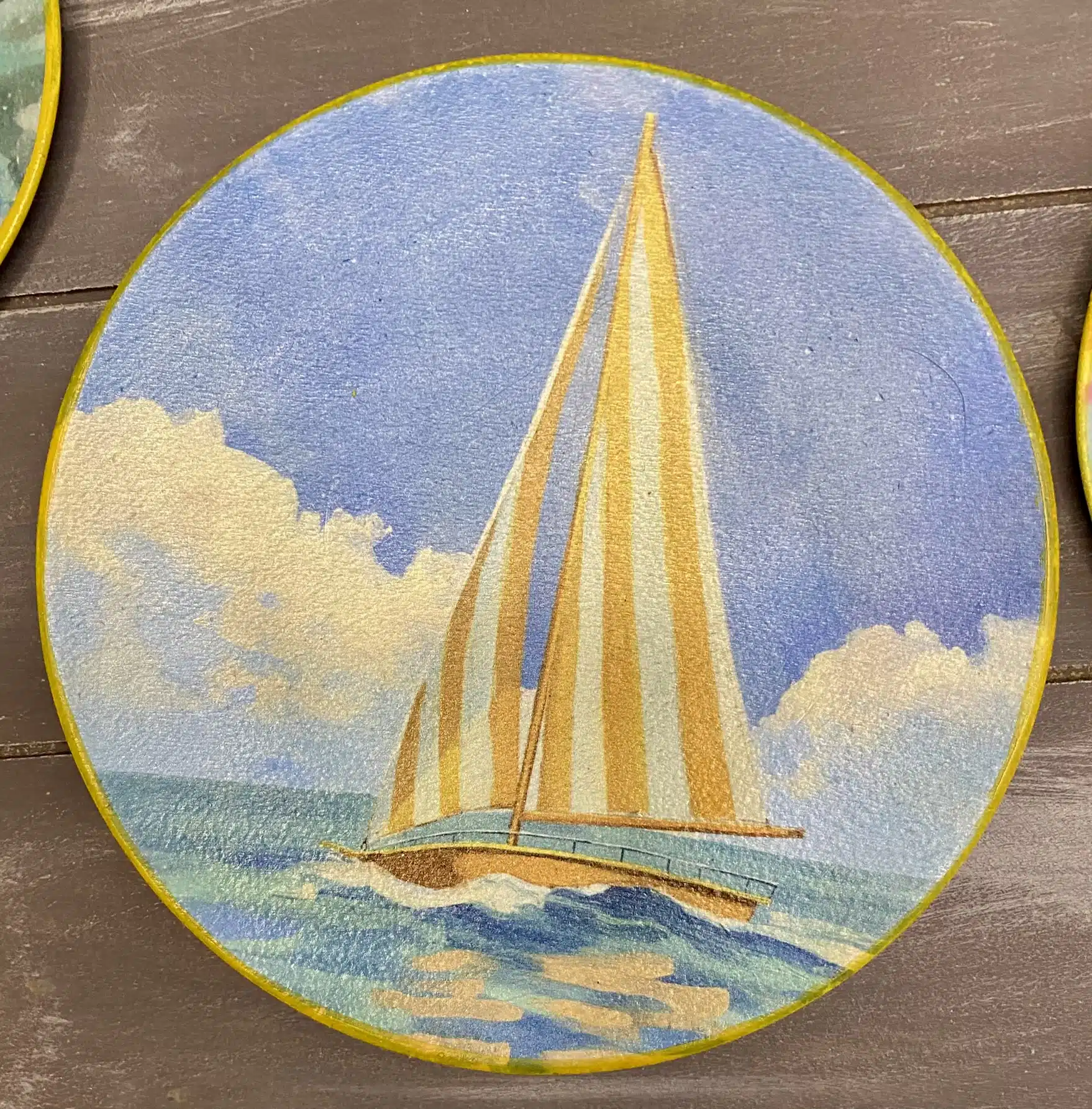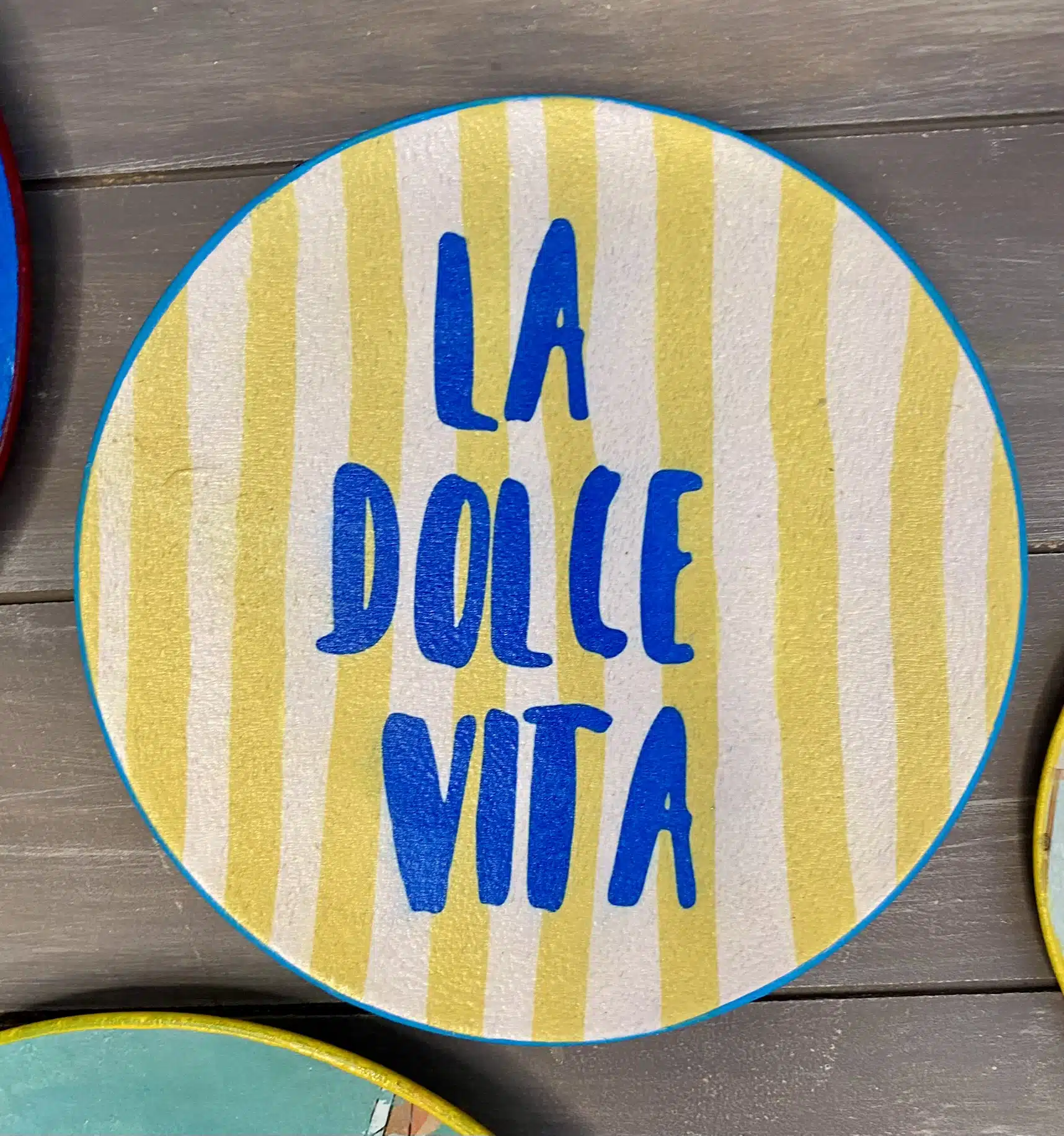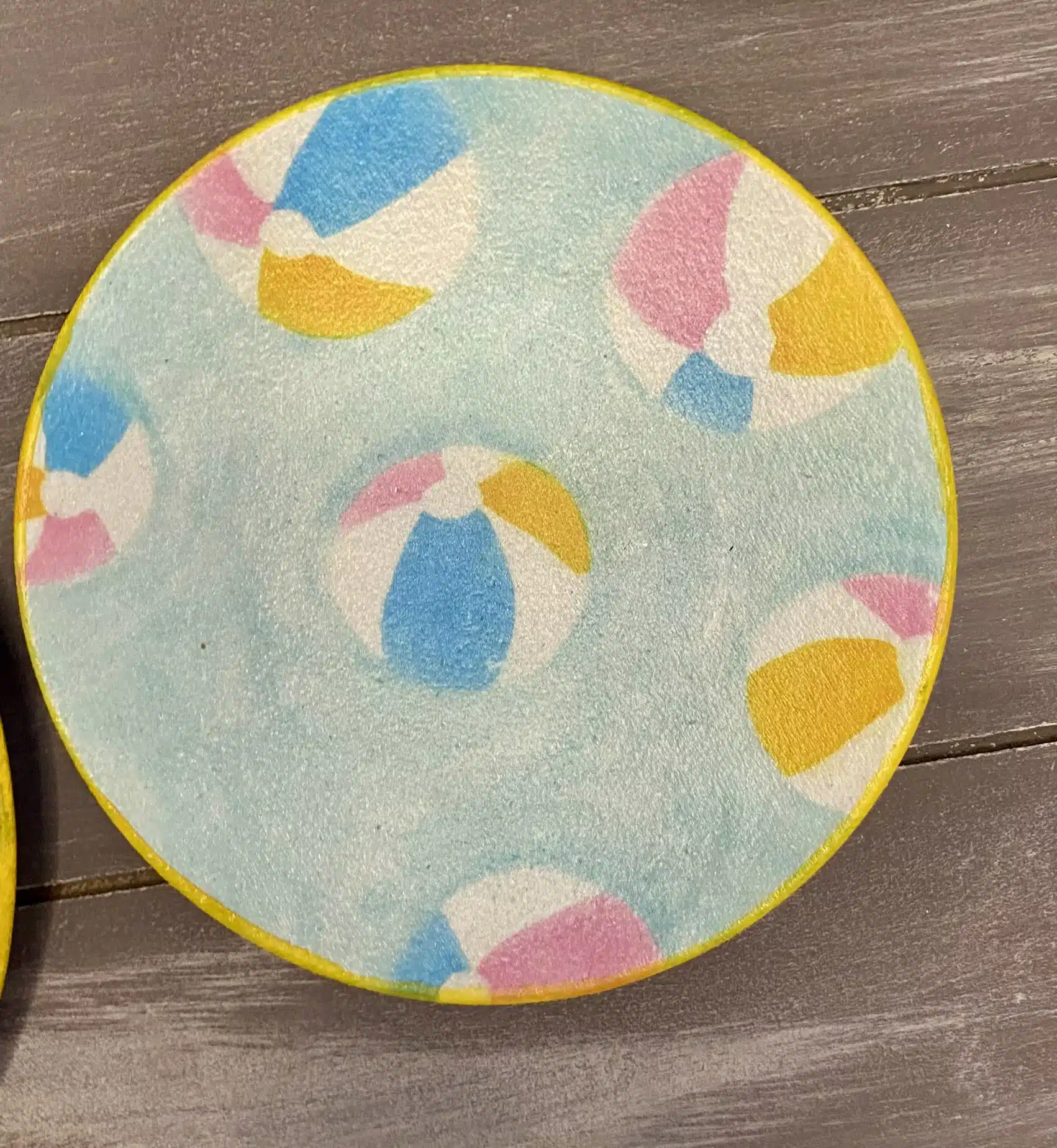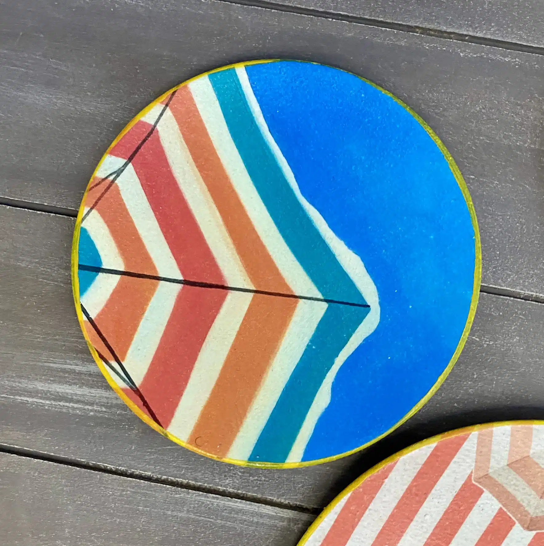 Decoupaged wall plates for summer in retro parasol theme