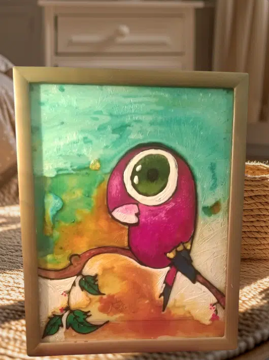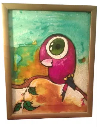 Glass painting with transparent and crystalline glass colors.