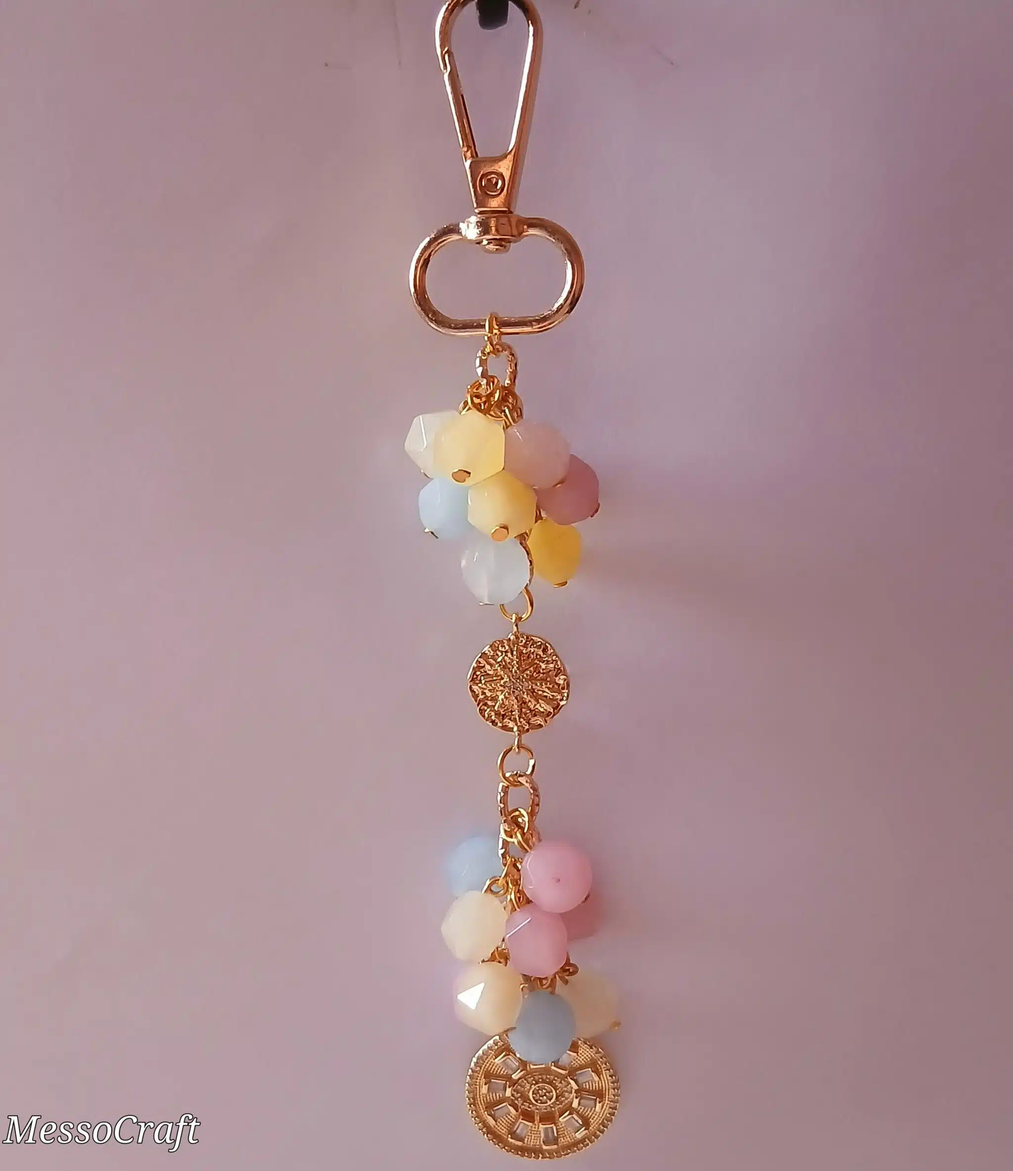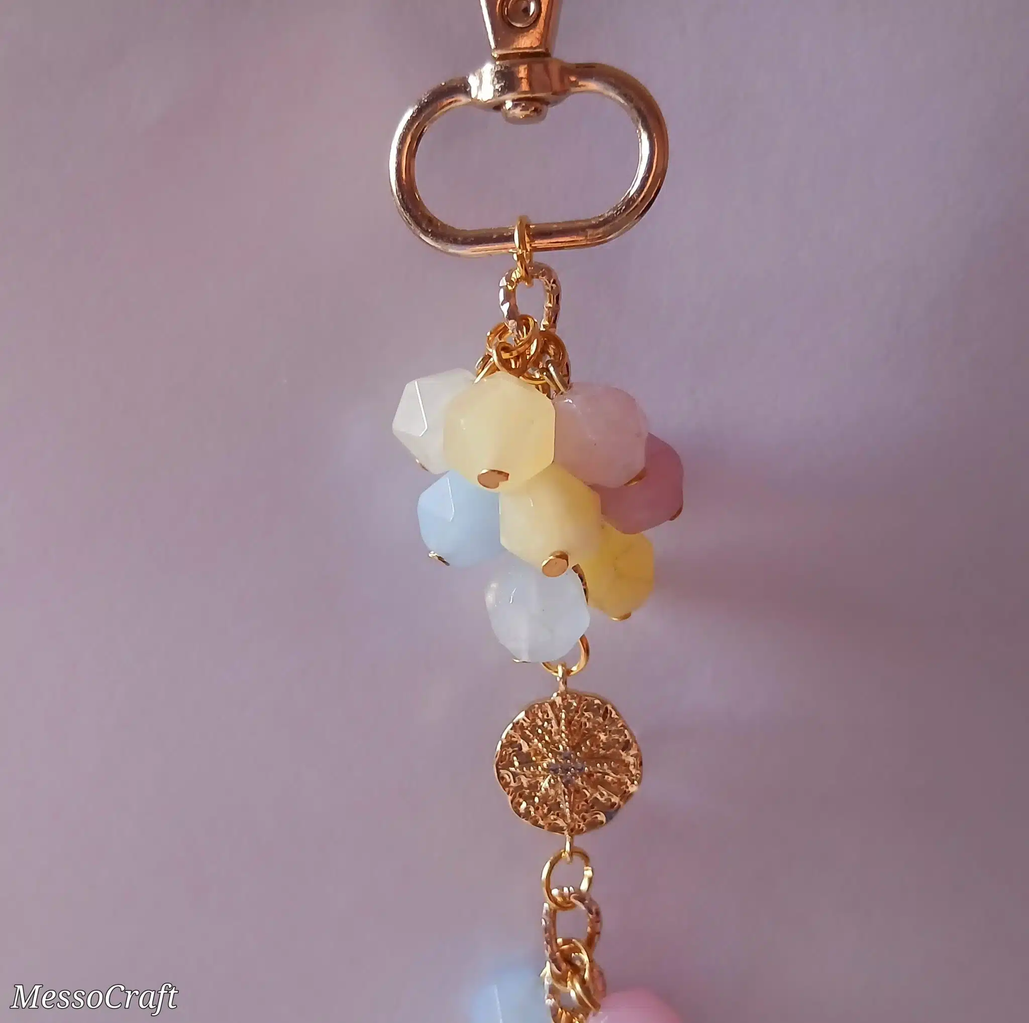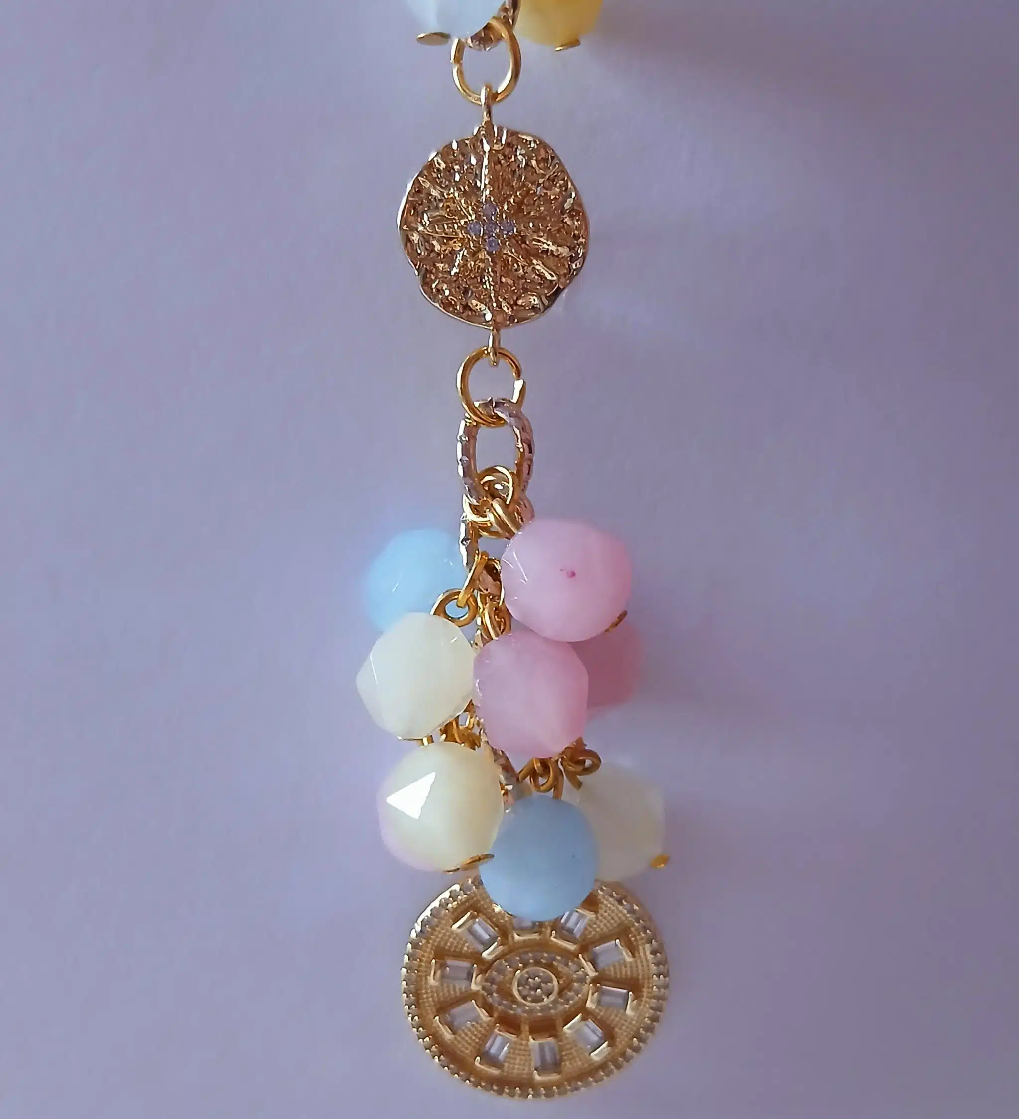 Bag charms pastel multicolour crystal stones and hanged 2 plated circle pendants