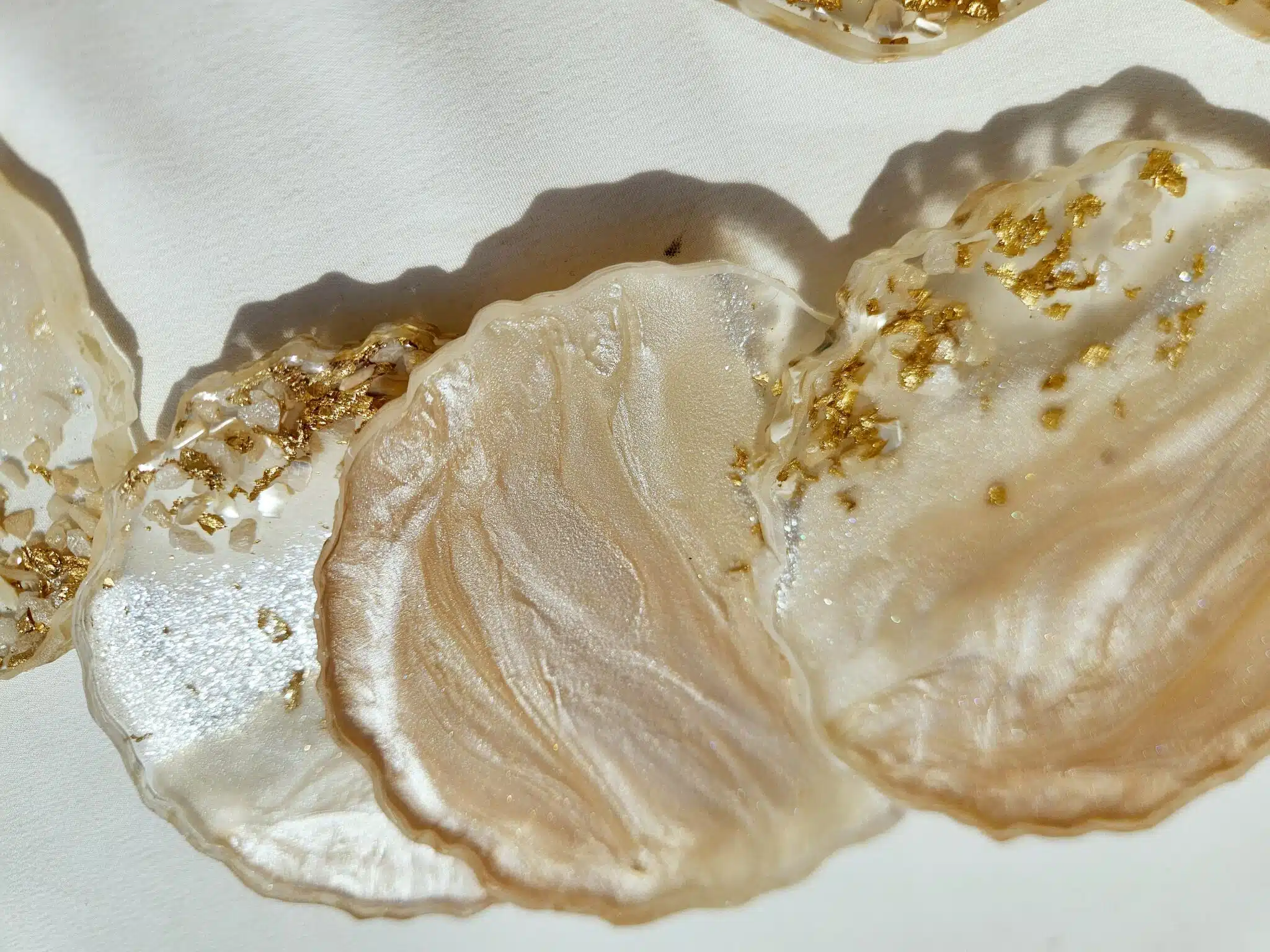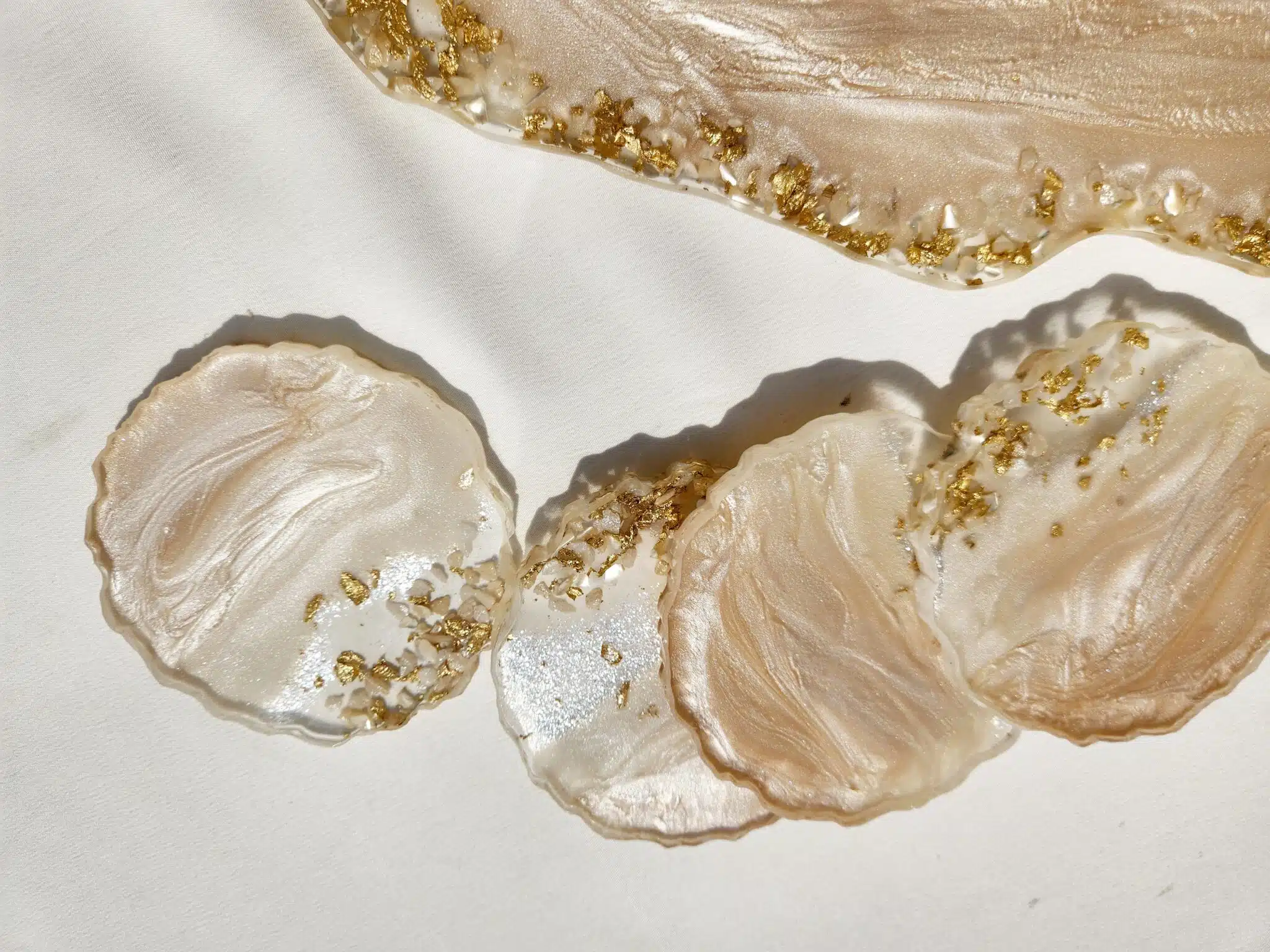 Best selling Bahgah decorative peachy paige coasters..light weighted durable made from resin inlaid with natural stones and crystals .