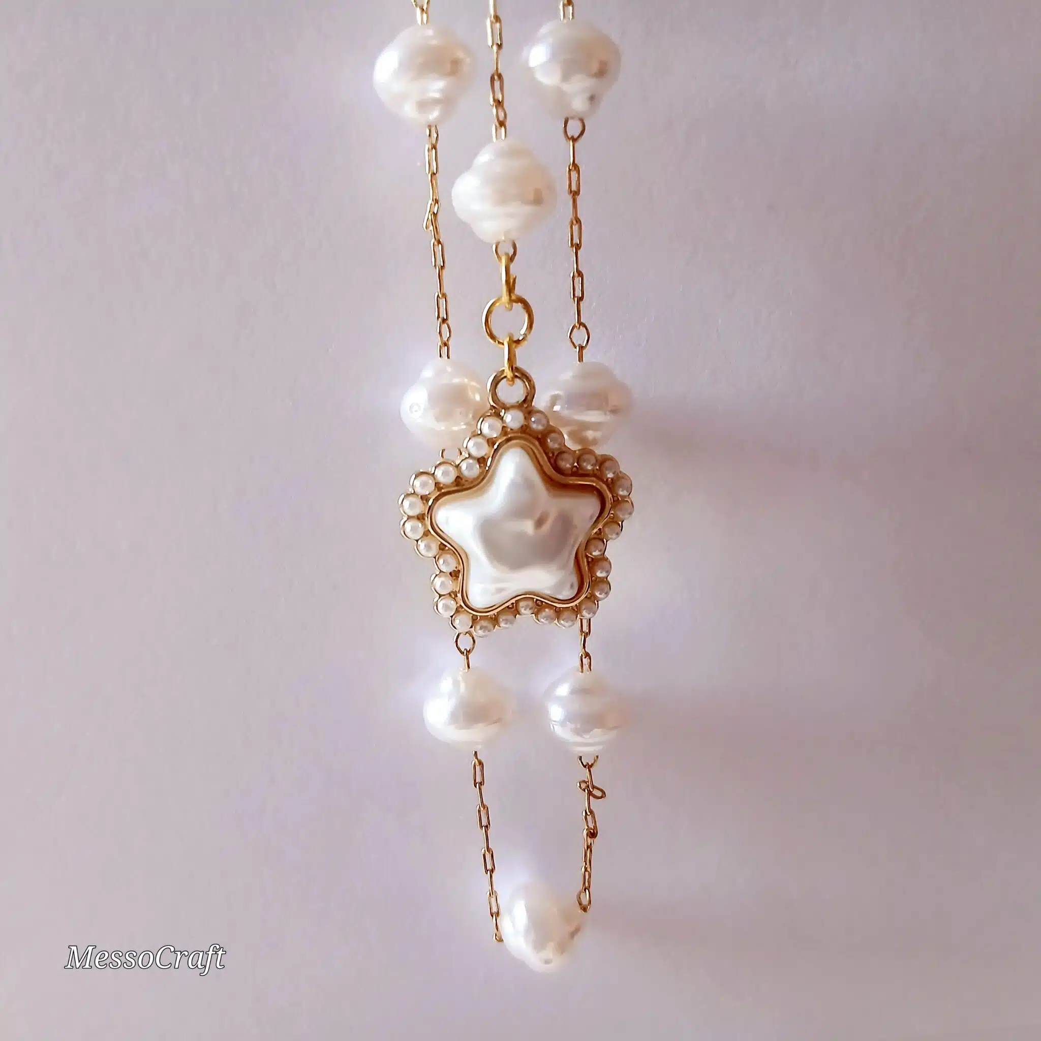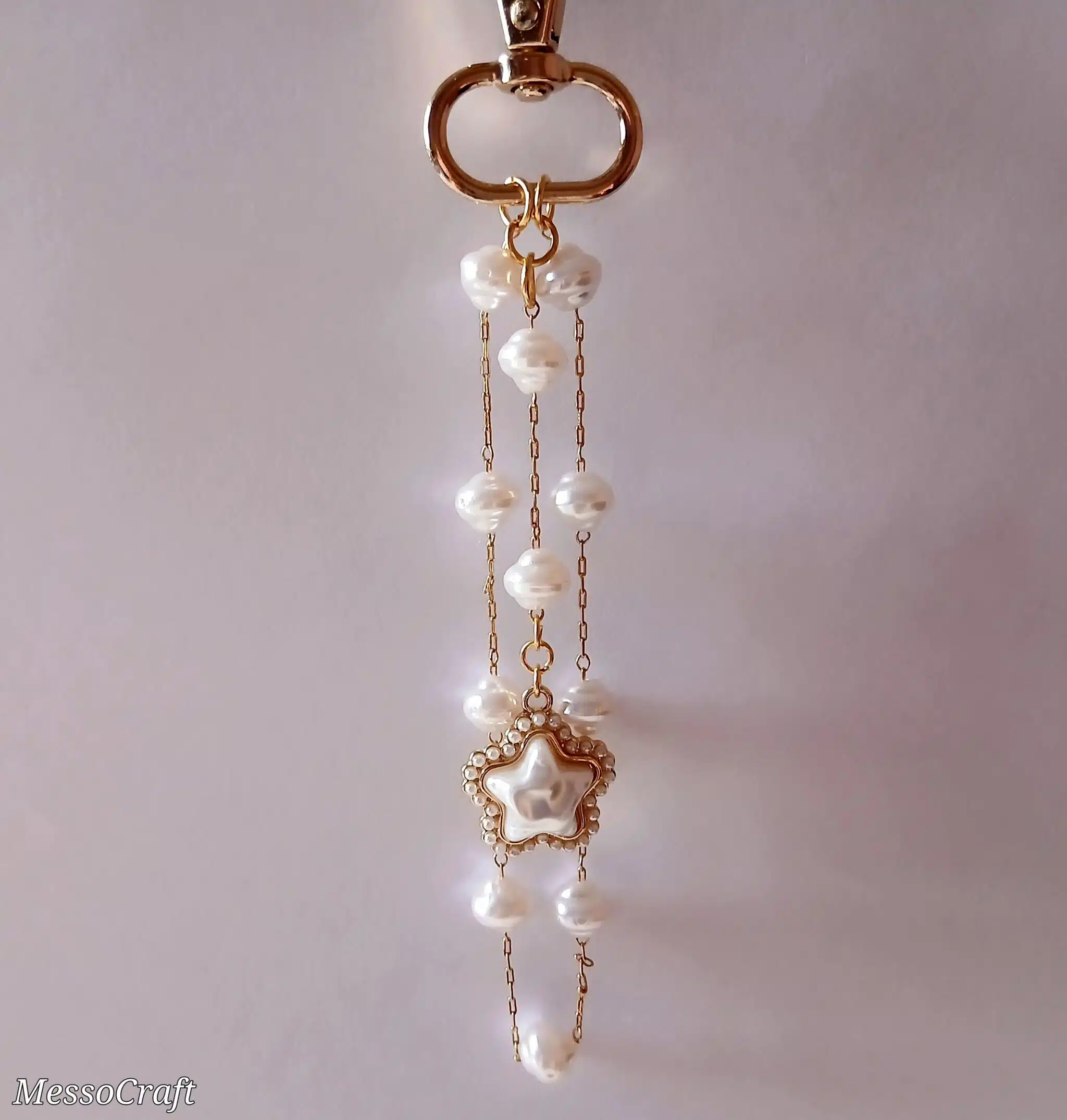 Bag charms made of pearl stones and Chinese gold chain and hanged a plated pendant in the shape of a star made of pearl stone