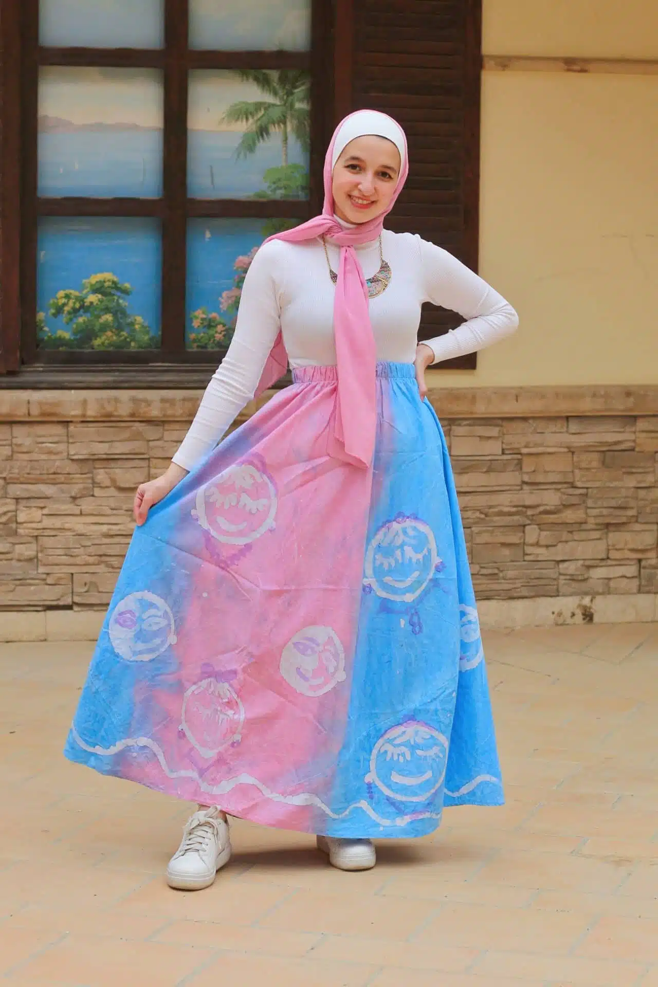 Handmade skirt from white 100% cotton fabric size to 95 kg.