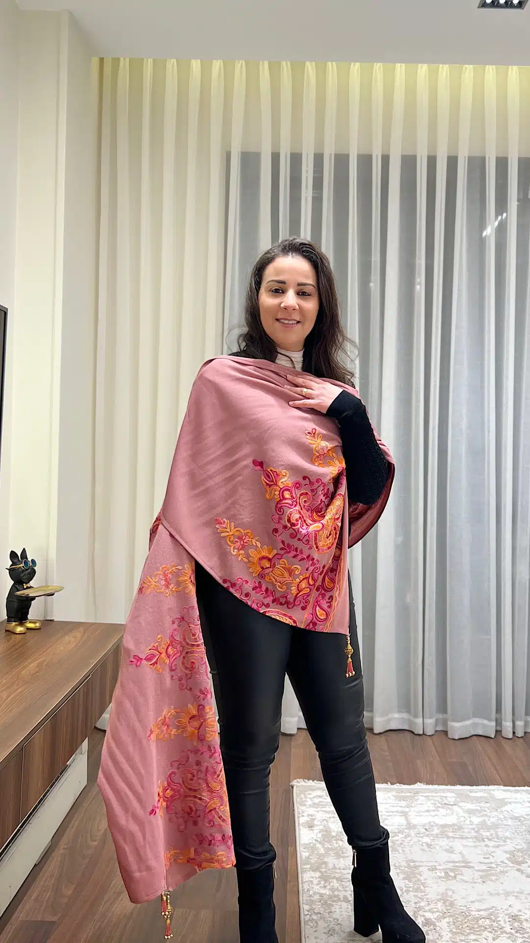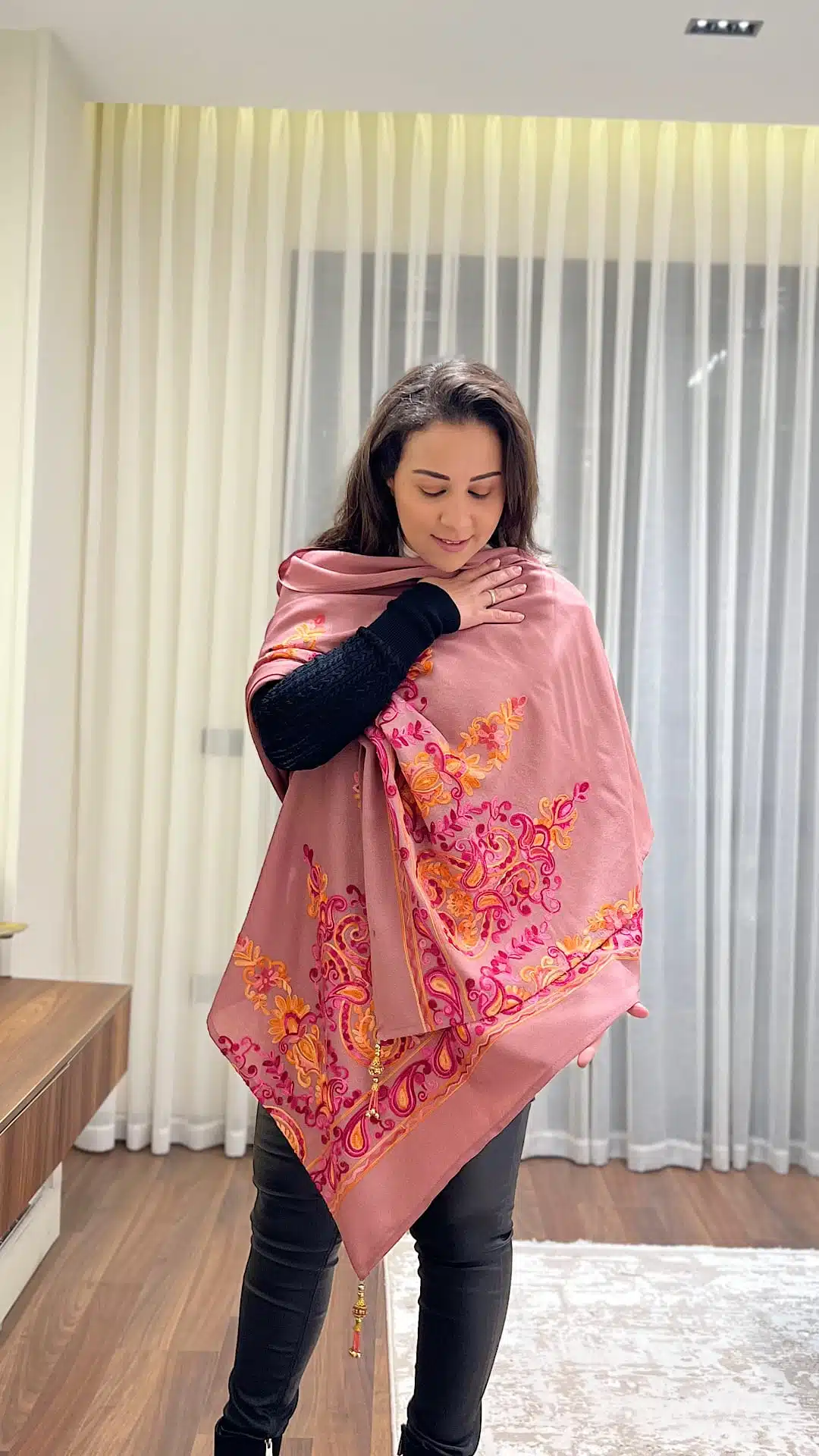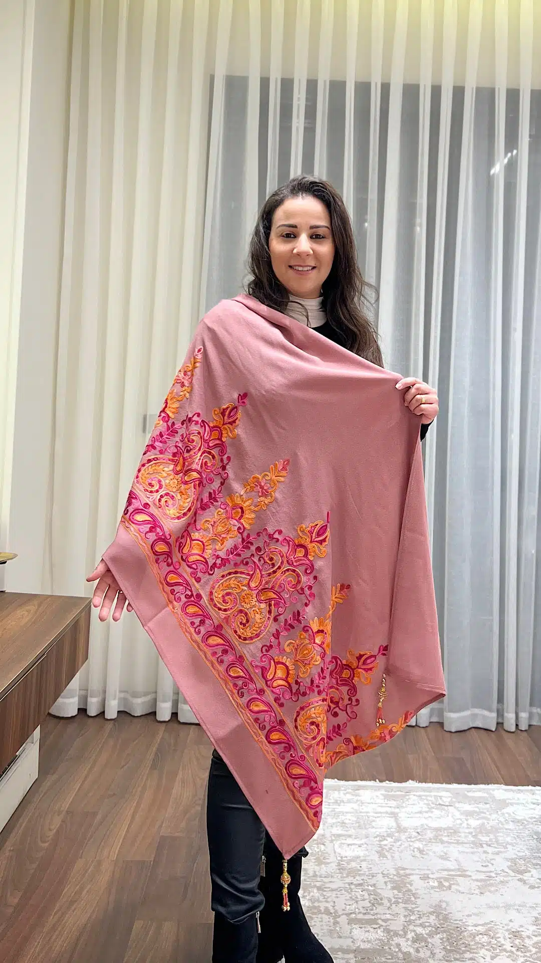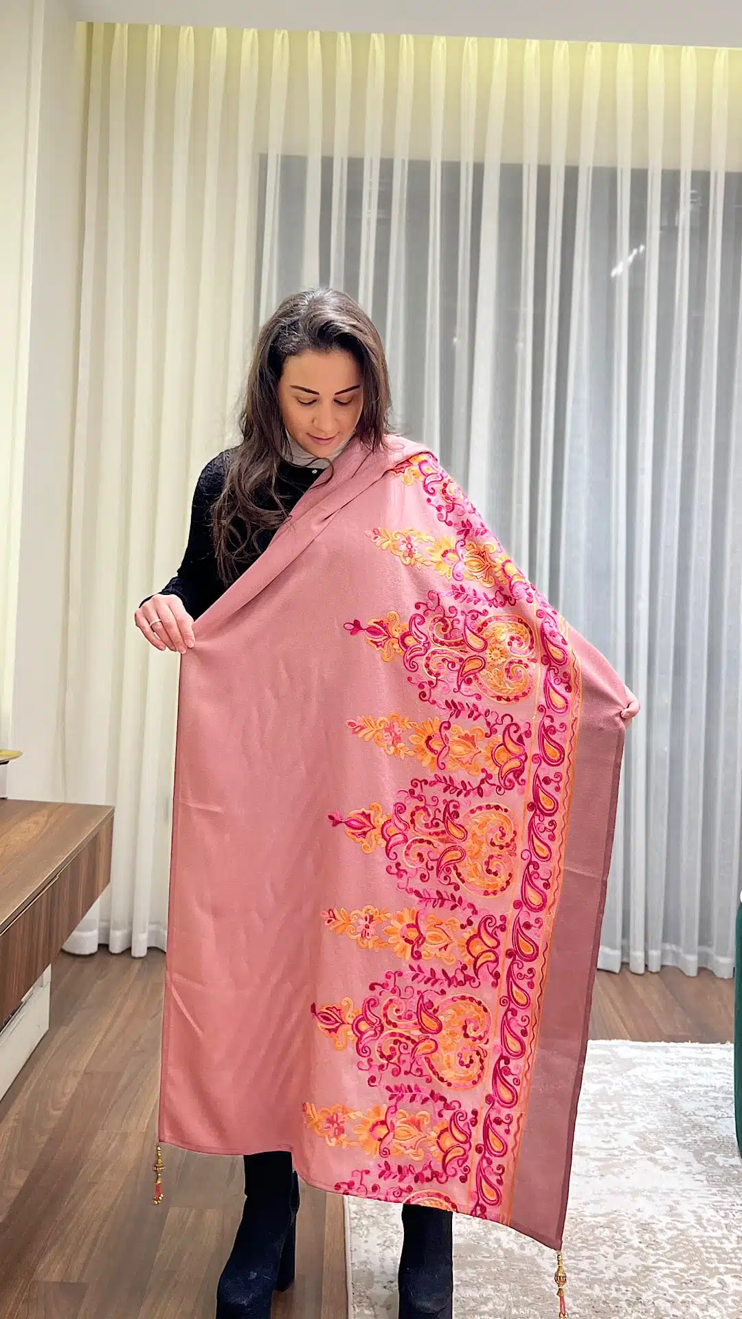 Pink Indian embroidery shawl with Indian tasseles