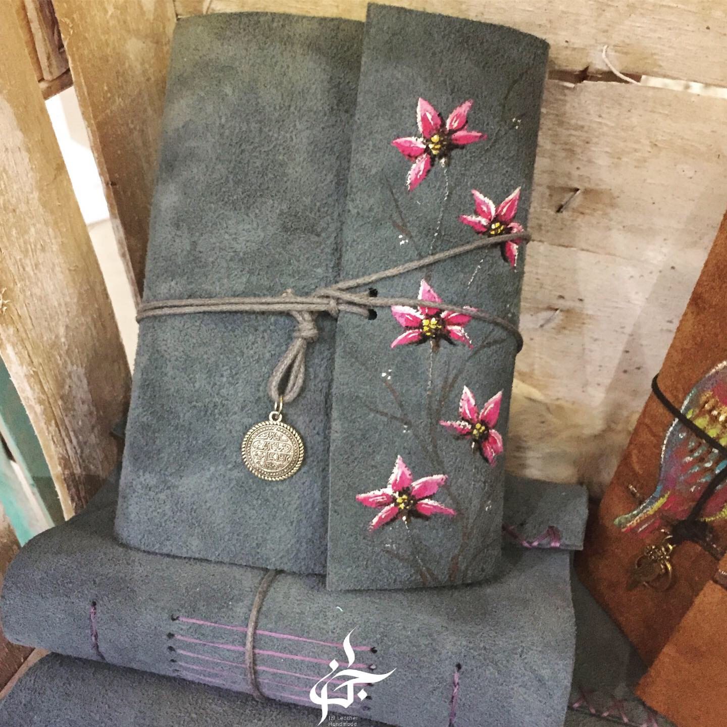 handmade genuine leather notebook with hand painted cover.