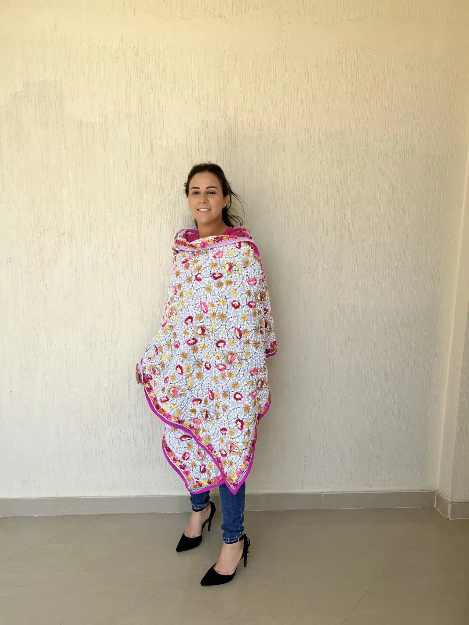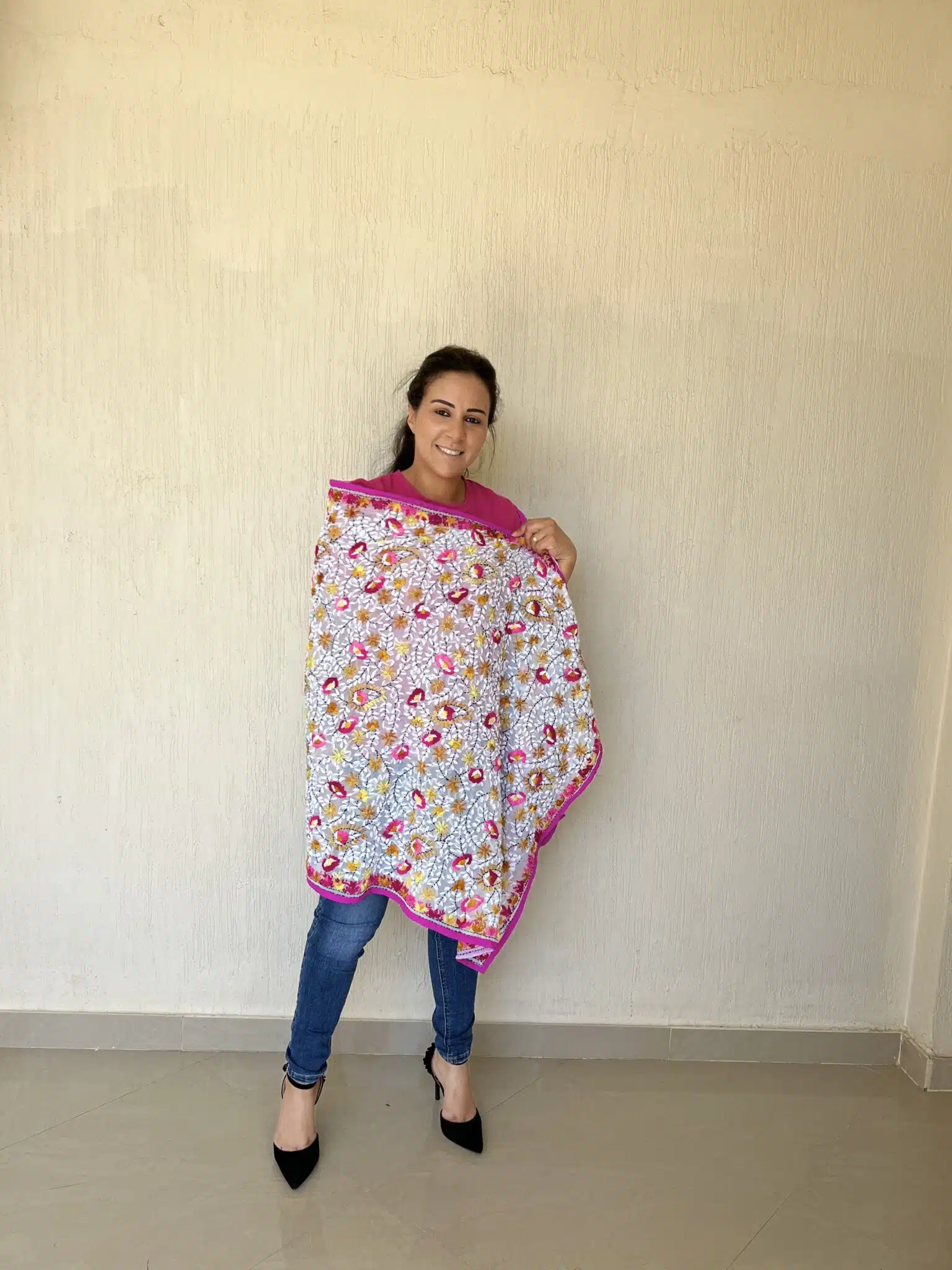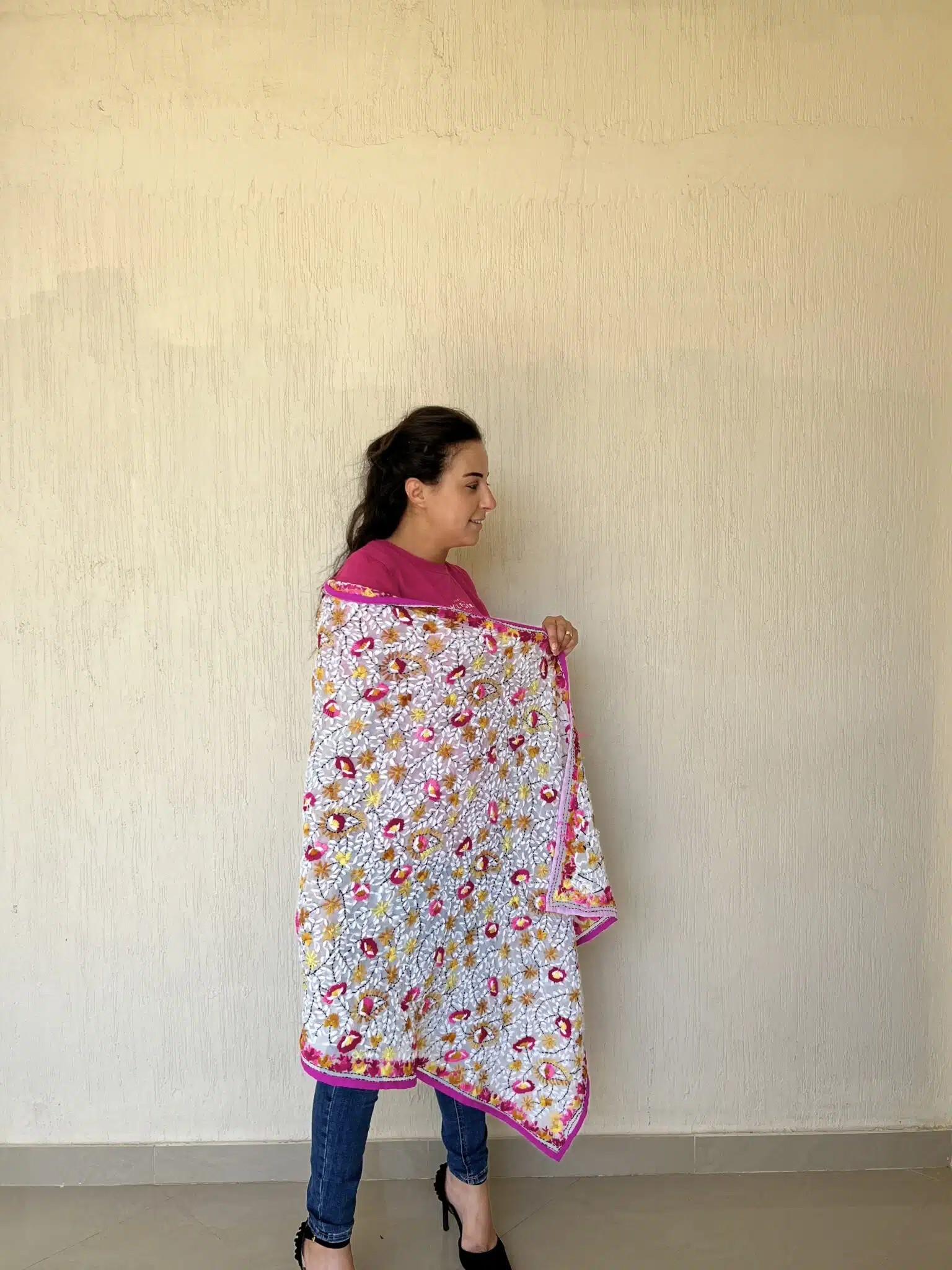 Pink Indian embroidery shawl