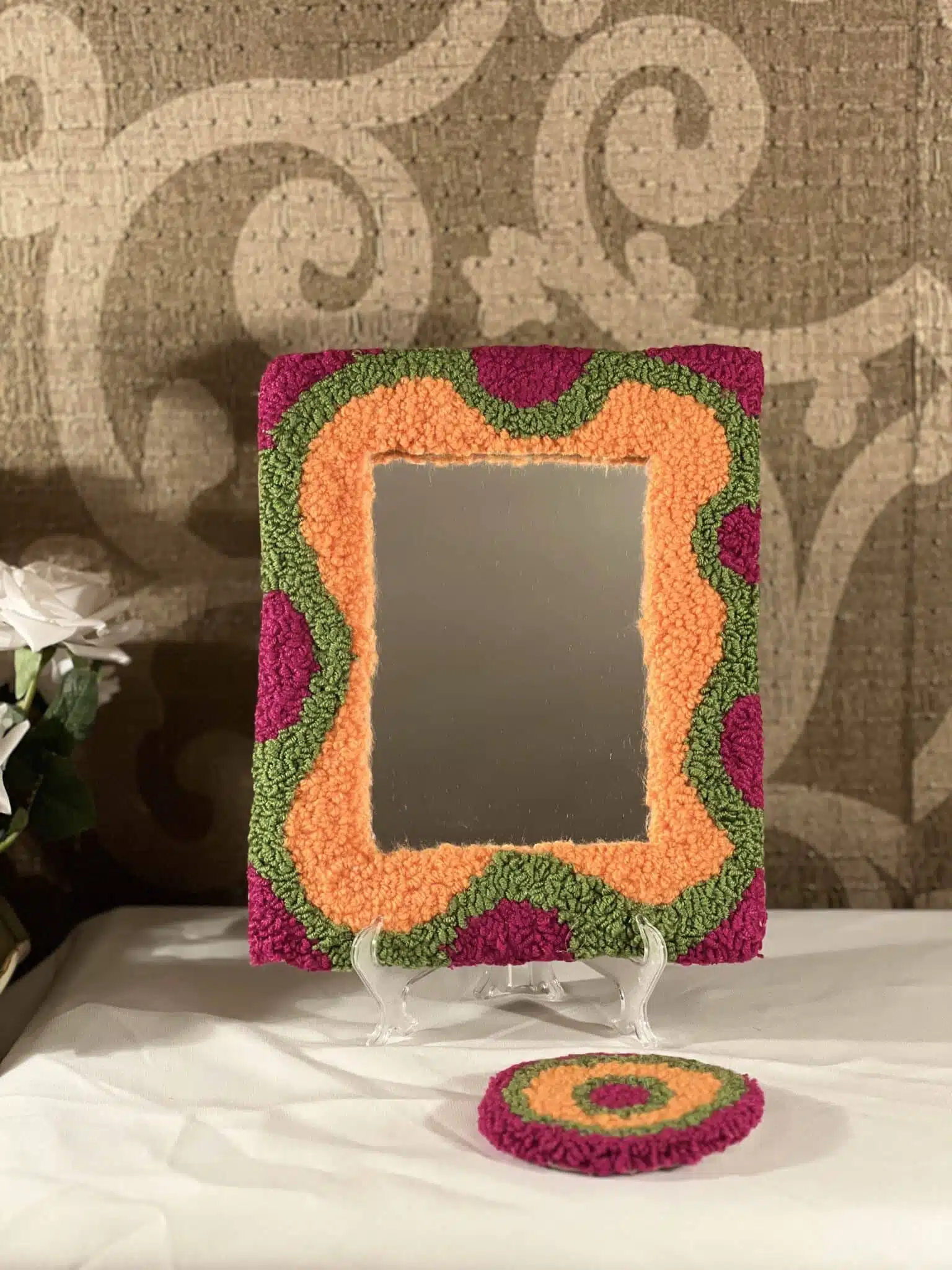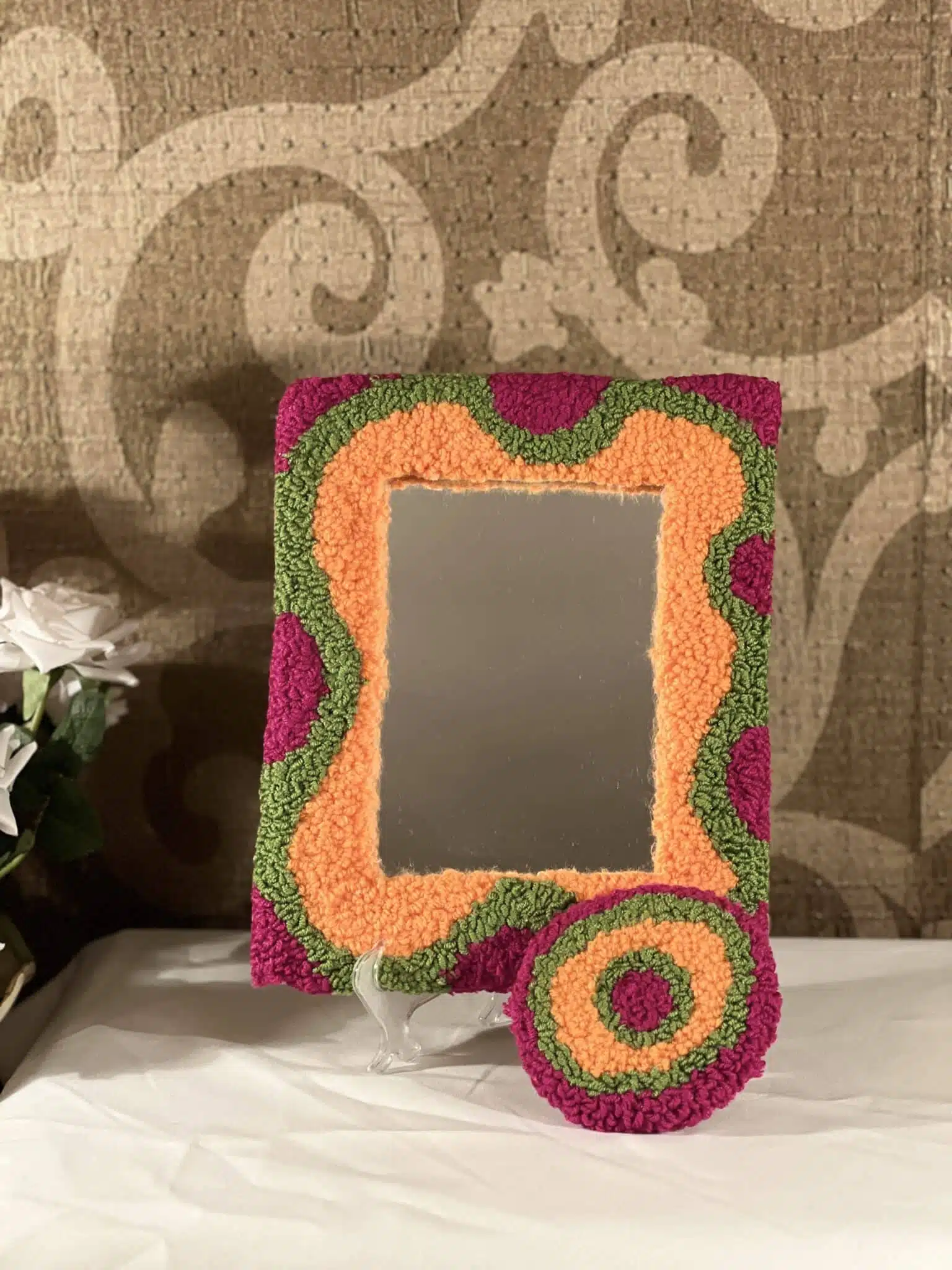 - Tufted mirror frame.