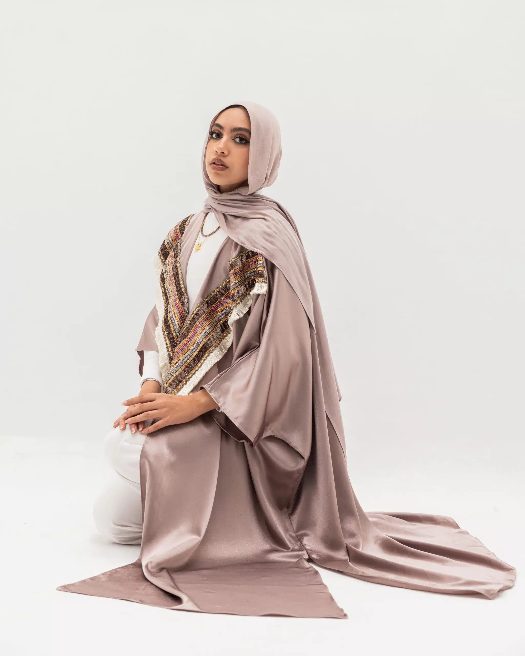 pink satin abaya.