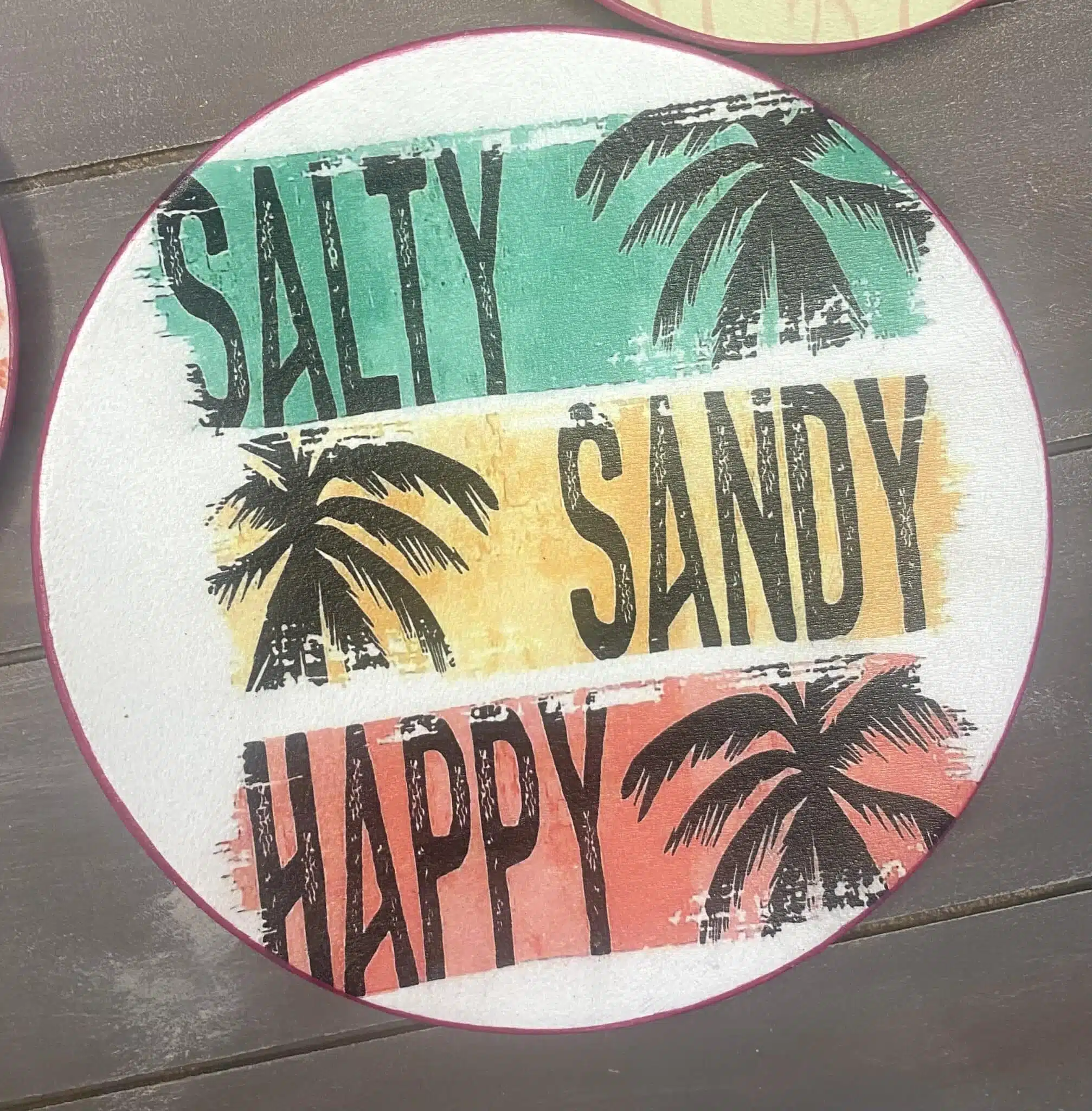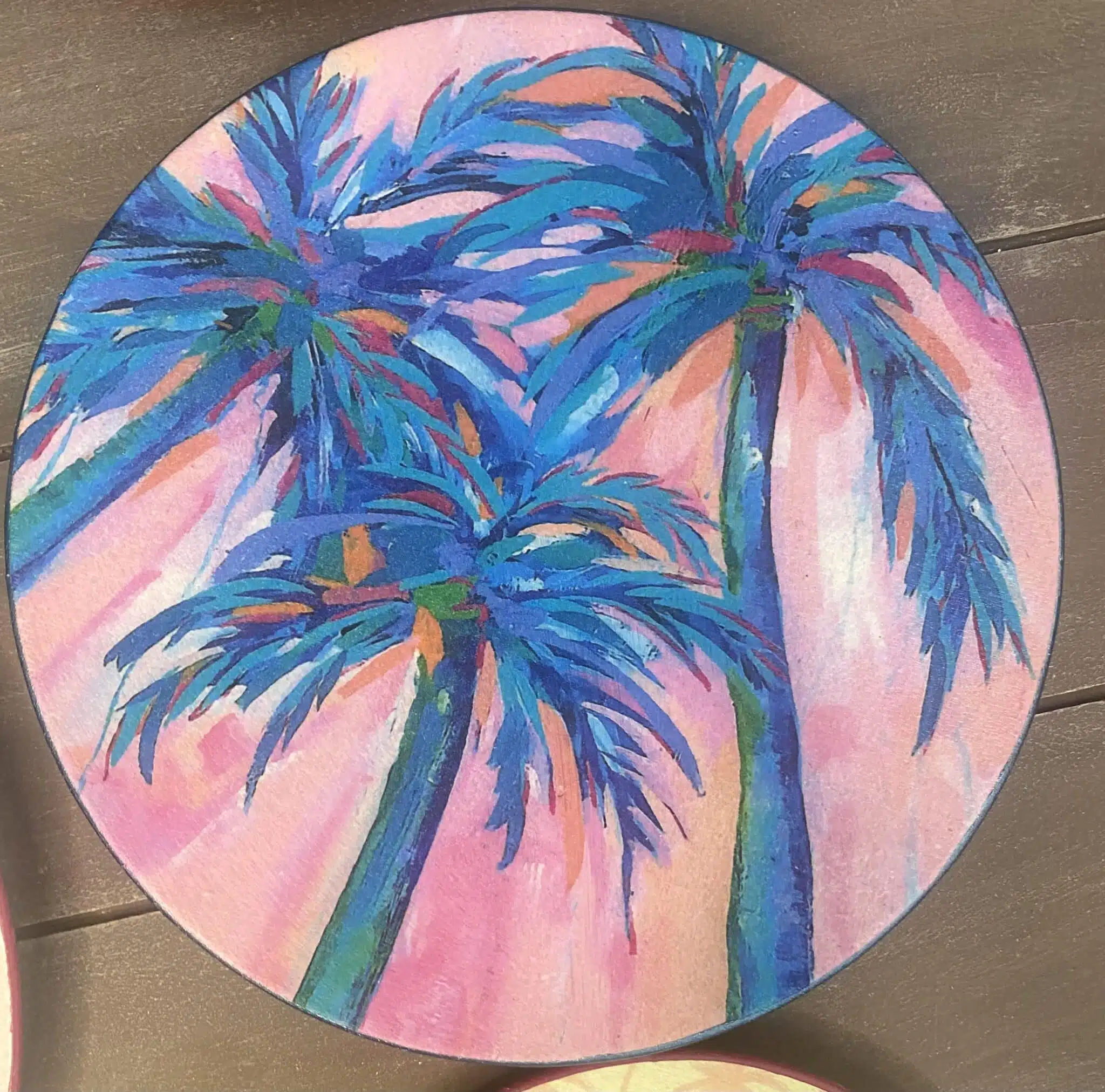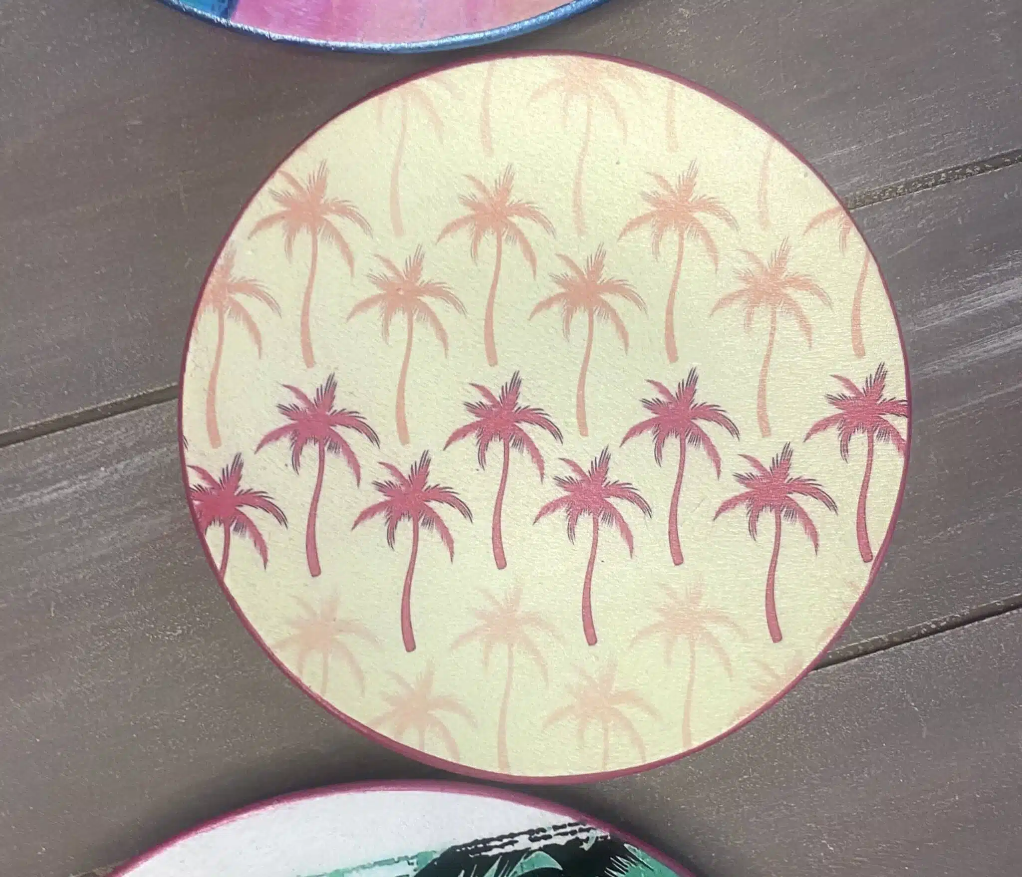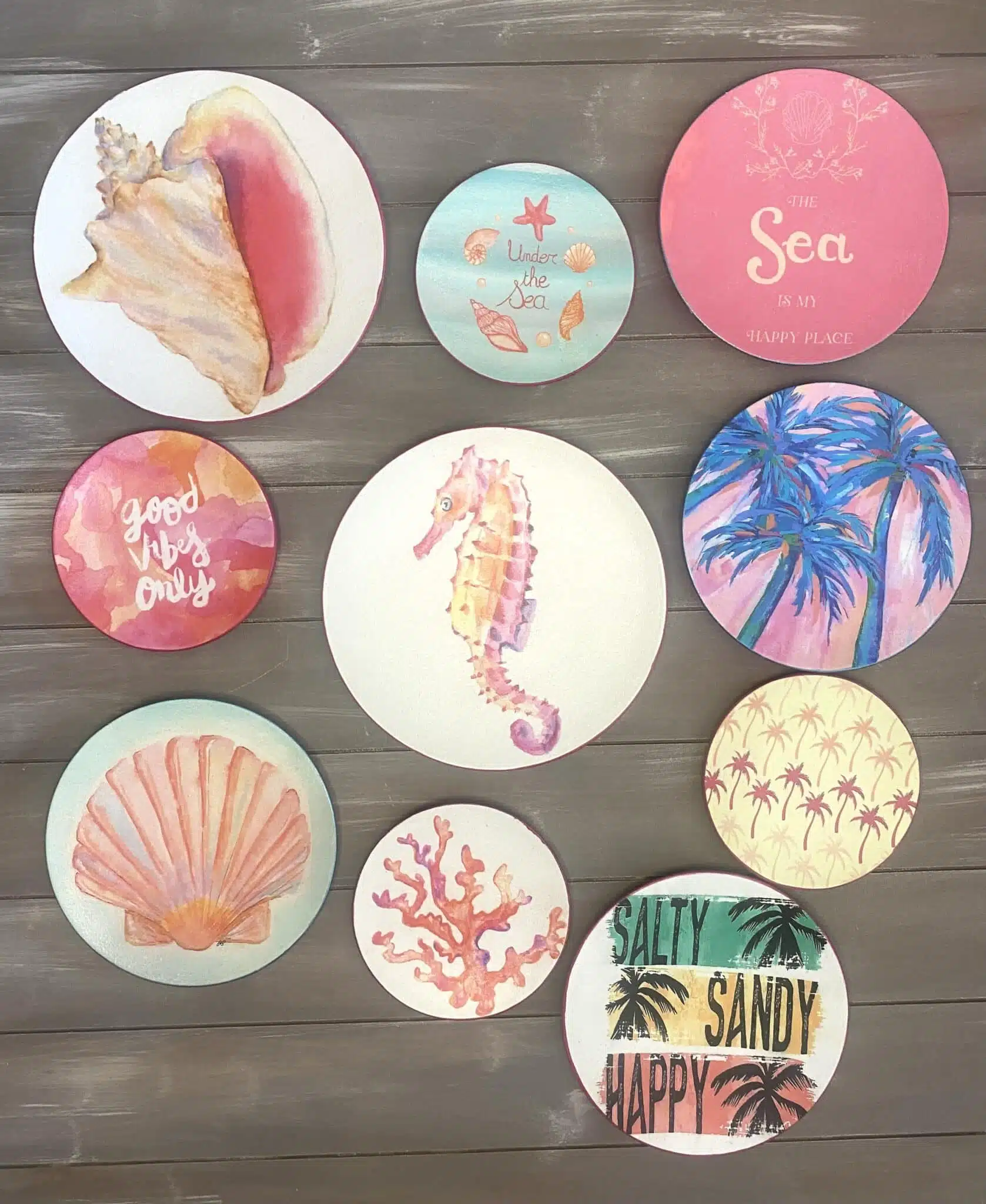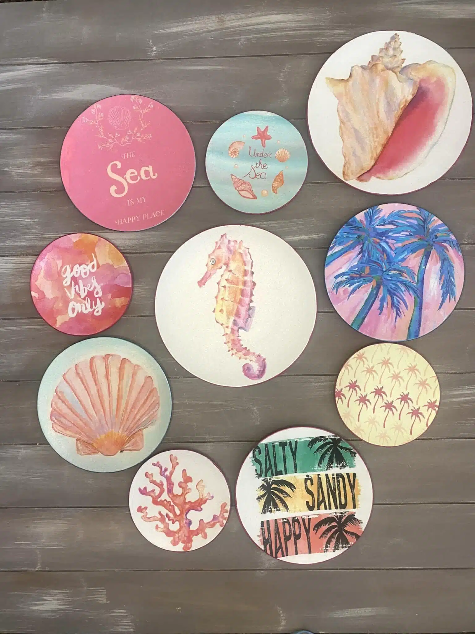 Decoupaged wall plates in pink colors for summer