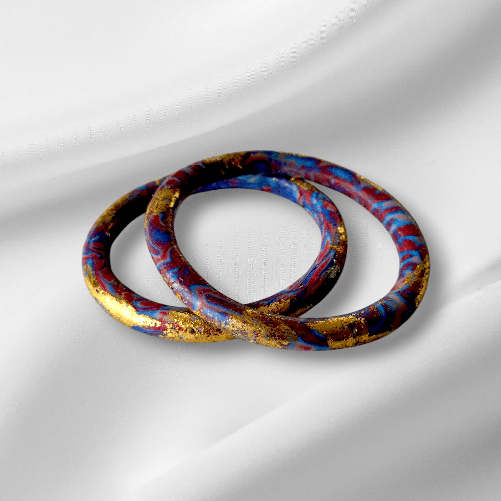 > Durable and Stylish Polymer Clay Bangles: Our bangles, crafted from high-quality polymer clay, offer both durability and elegance. Their modern designs and vibrant colors make them perfect for everyday wear.