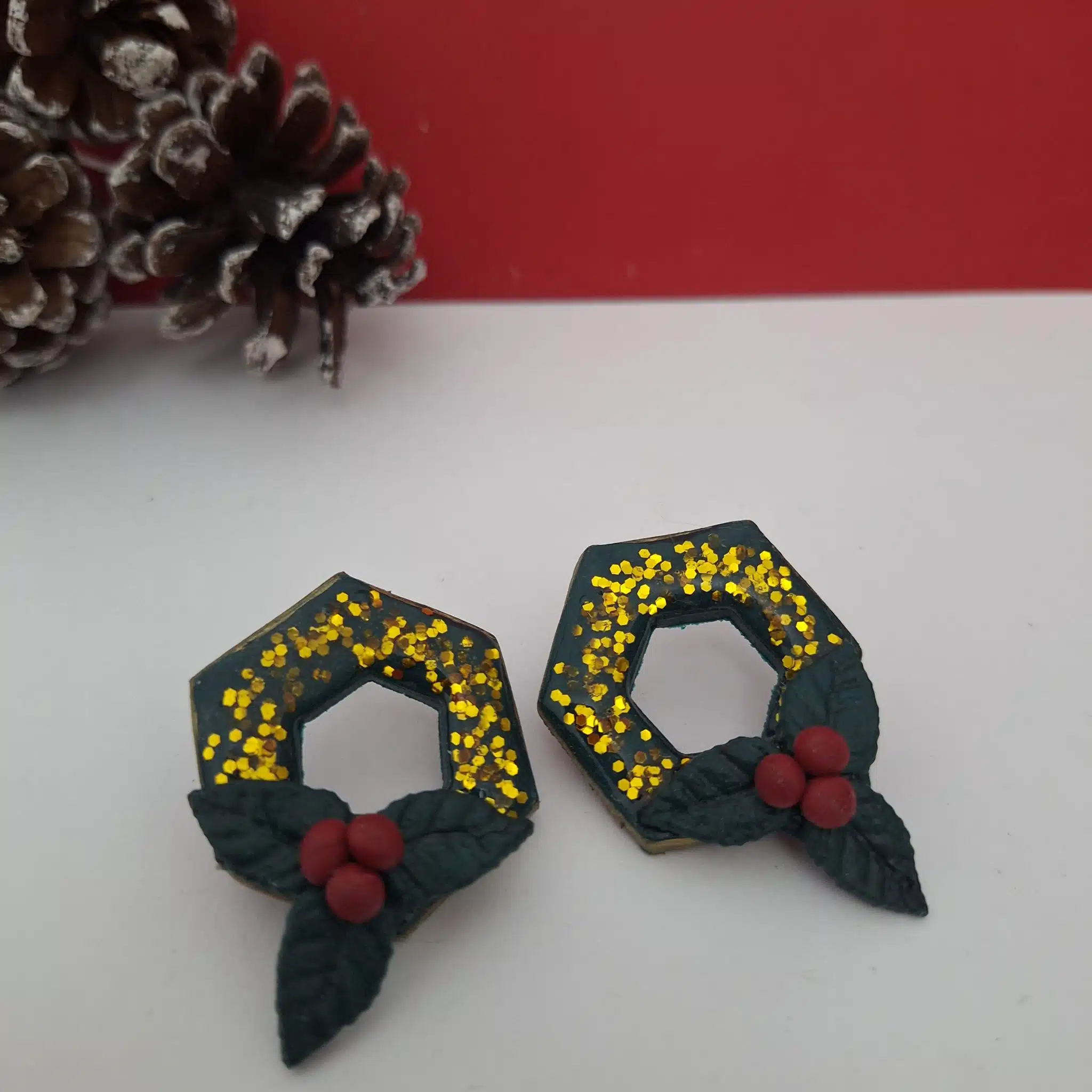 Polymer clay christmas wreath earrings