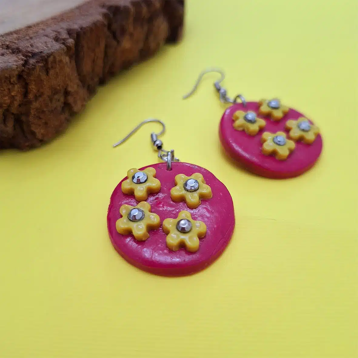 Polymer clay dangling earrings ‘Blossom’