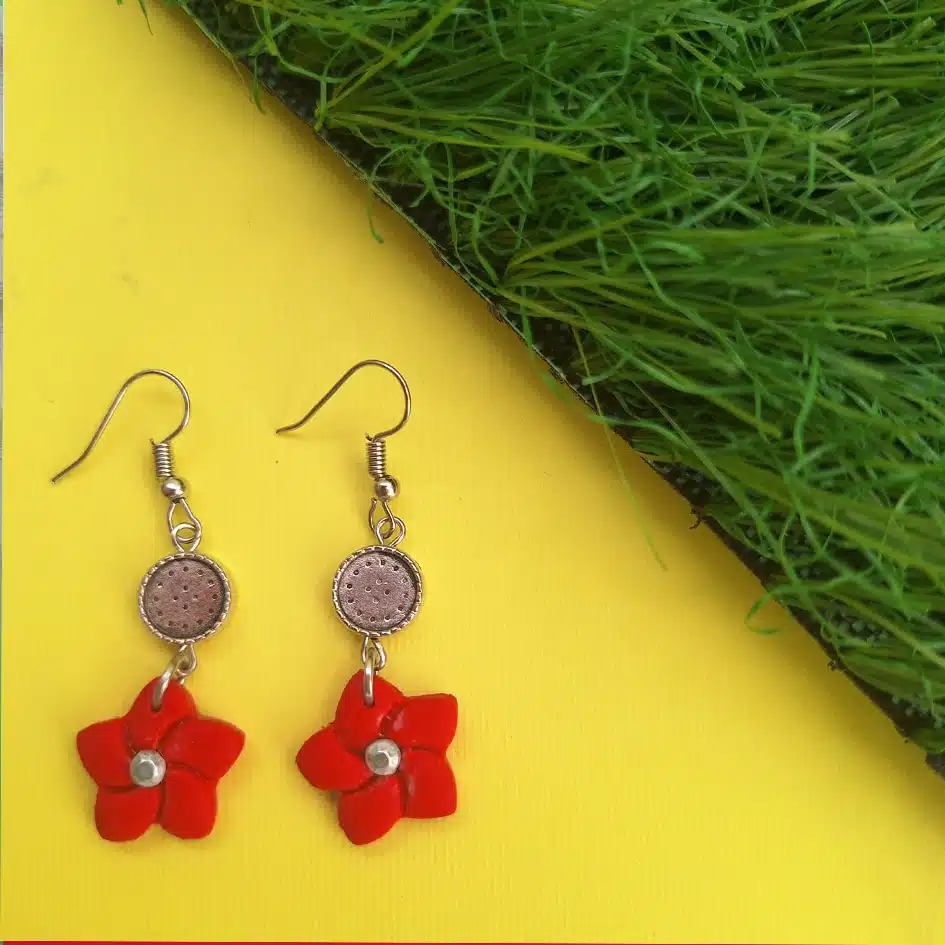 polymer clay dangly flower earrings with metal accent