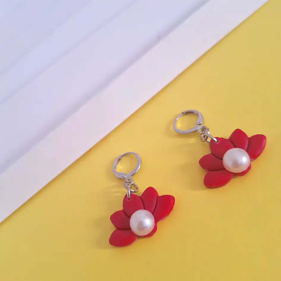 Be the first to review “polymer clay red lotus earrings with pearls”