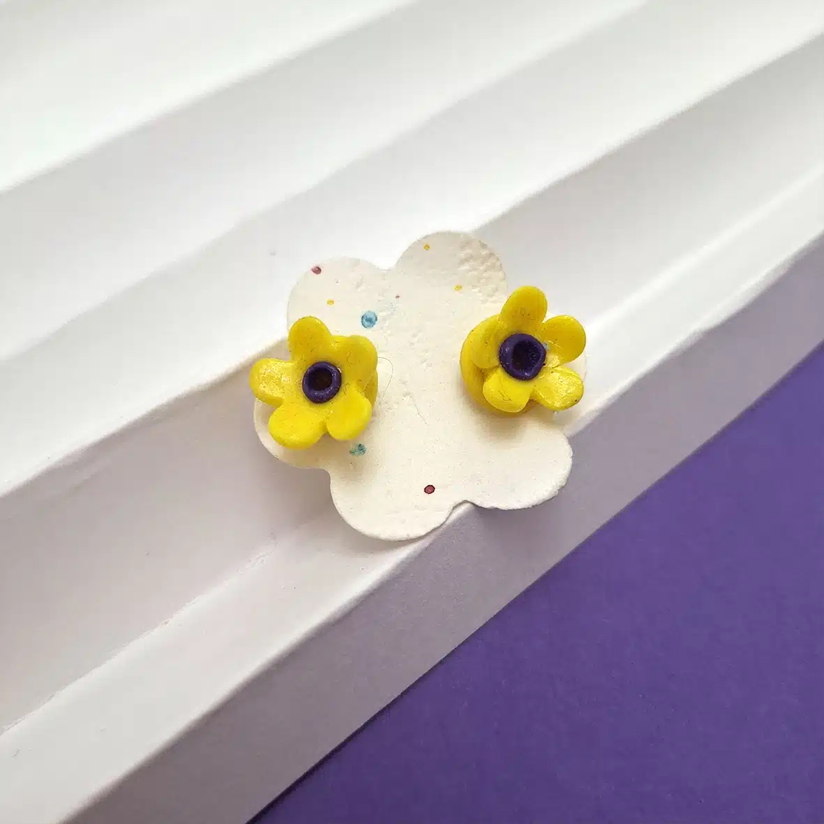 Be the first to review “polymer clay studs yellow flower with purple core”