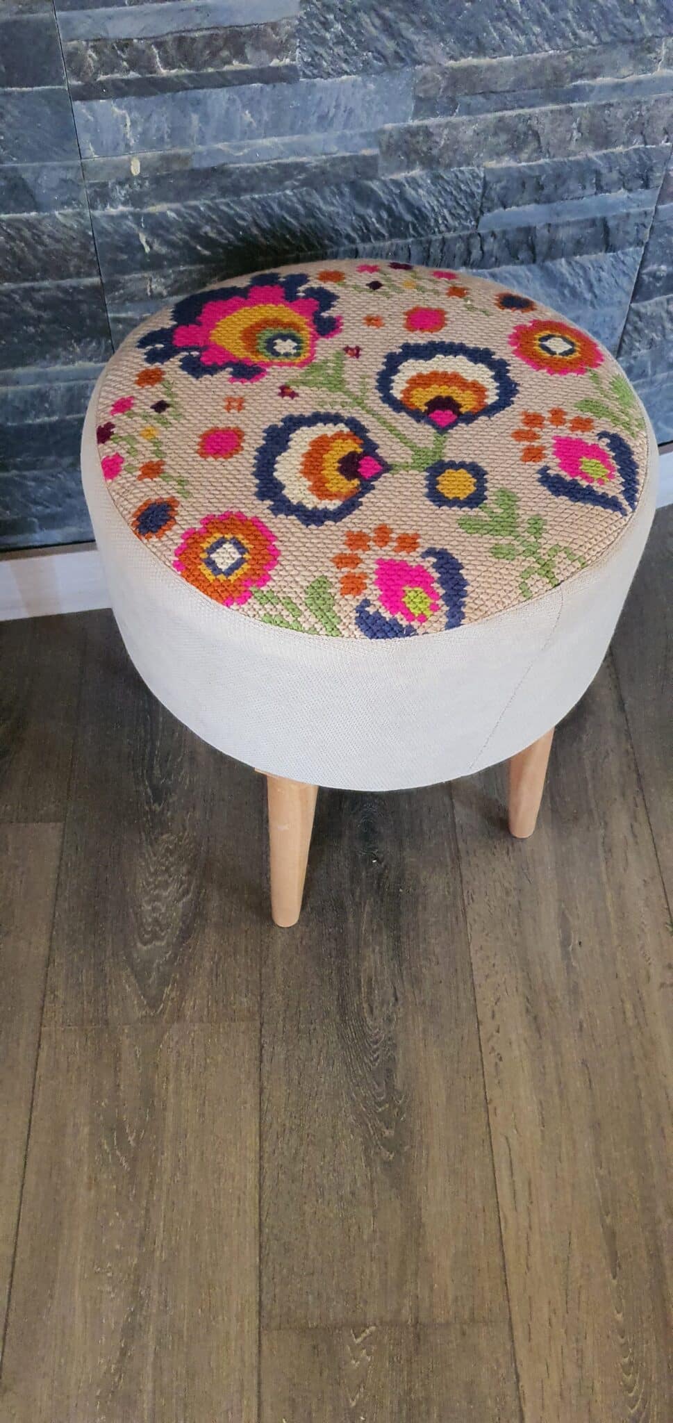 Handmade embroidered pouf