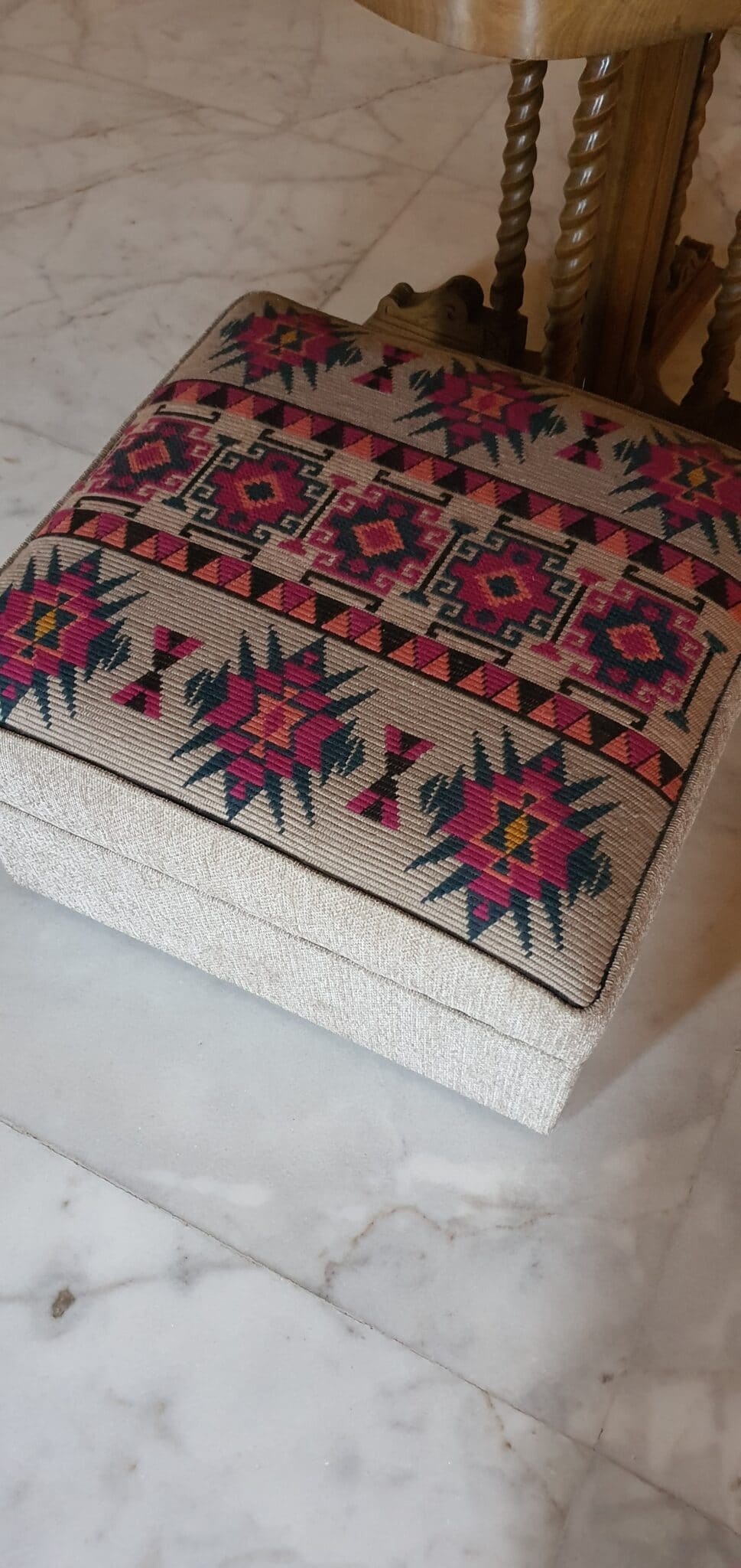 Hanfmade embroidered pouf Dimensions 60×60