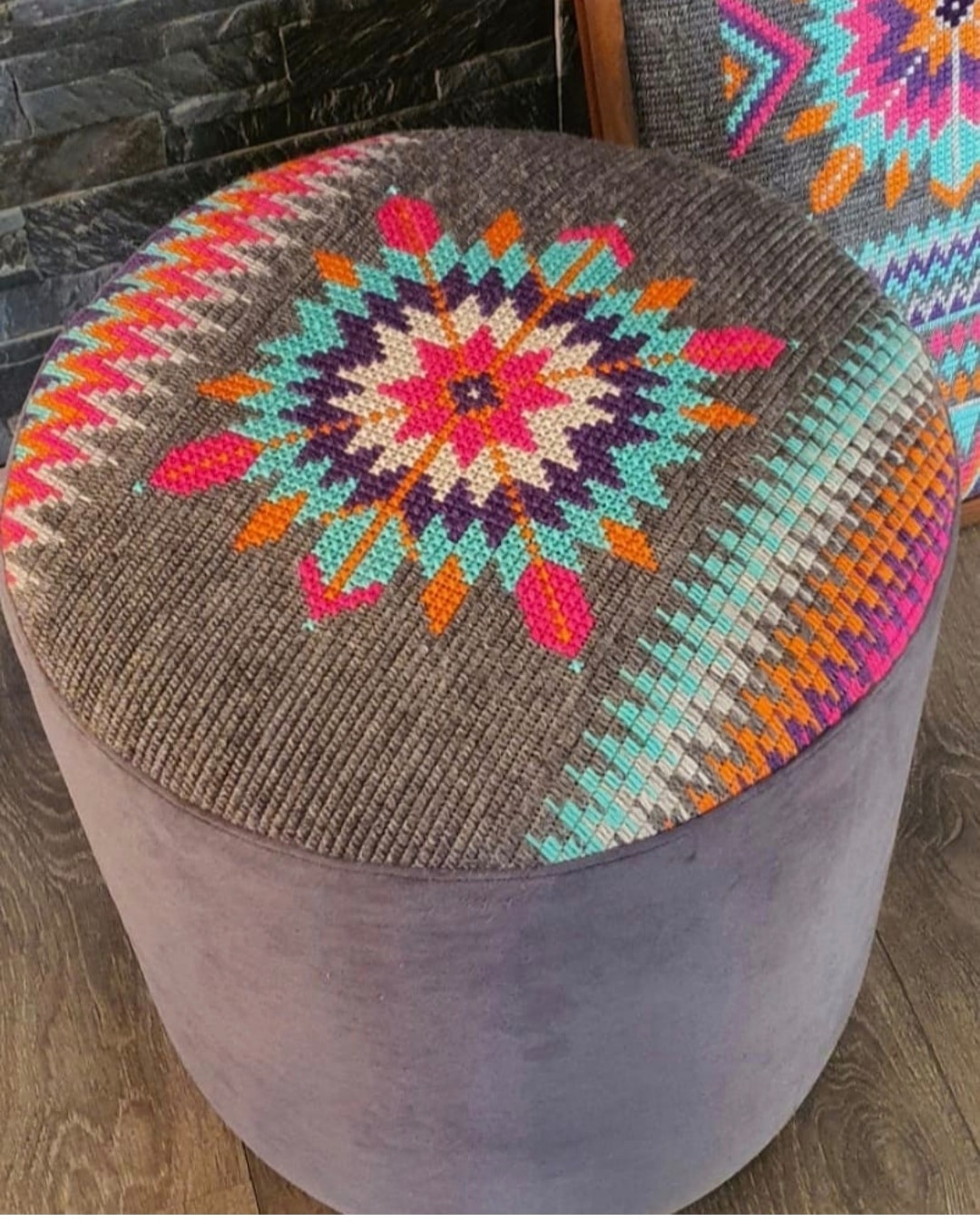 Round handmade pouf Diameter 40cm Height 45 cm