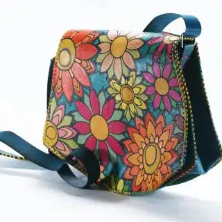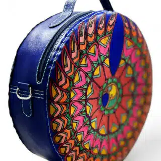This hand bag is uniquely shaped and printed with vivid UV colors..