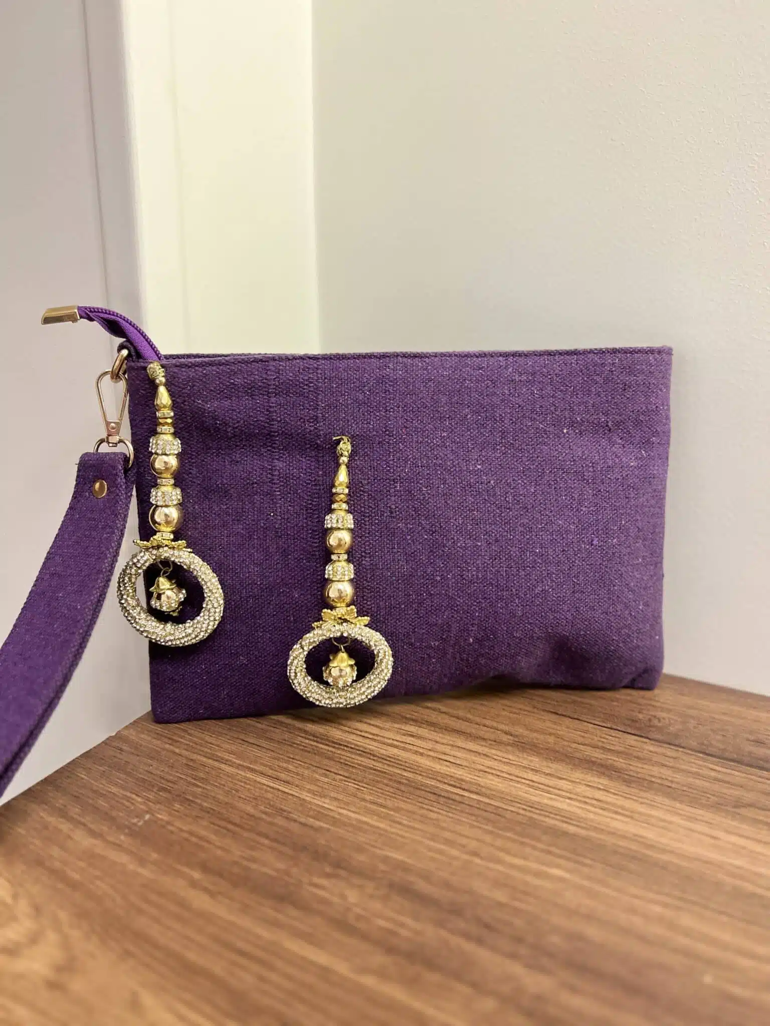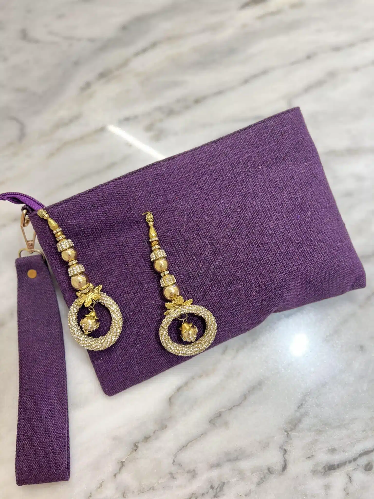 Purple canvas clutch with indian tassels