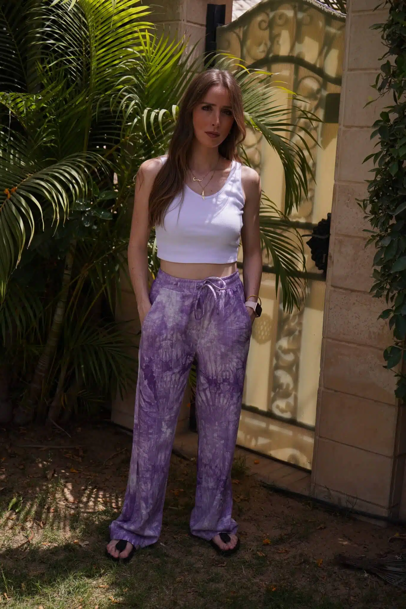 Purple tie-dye Linen pants