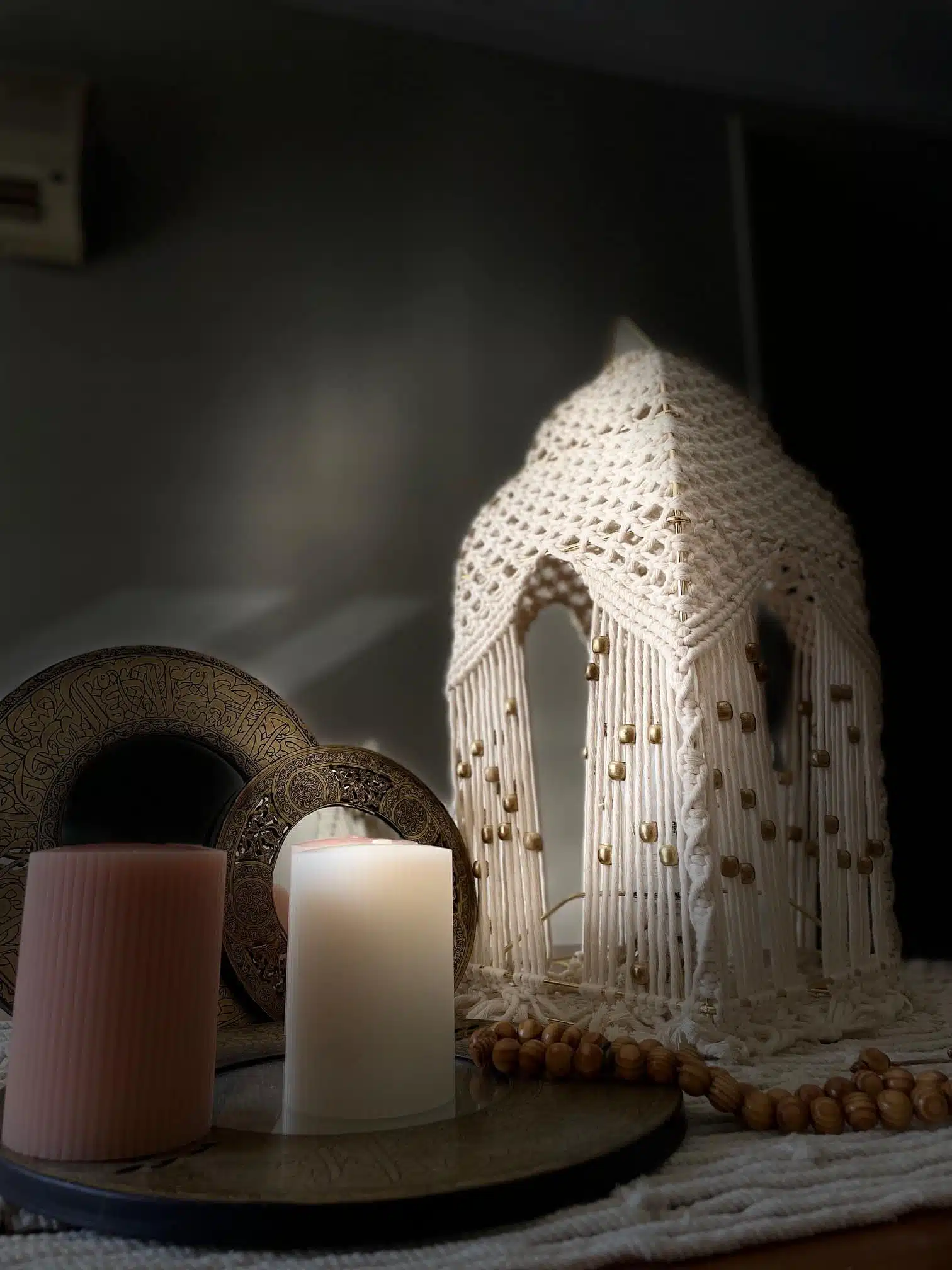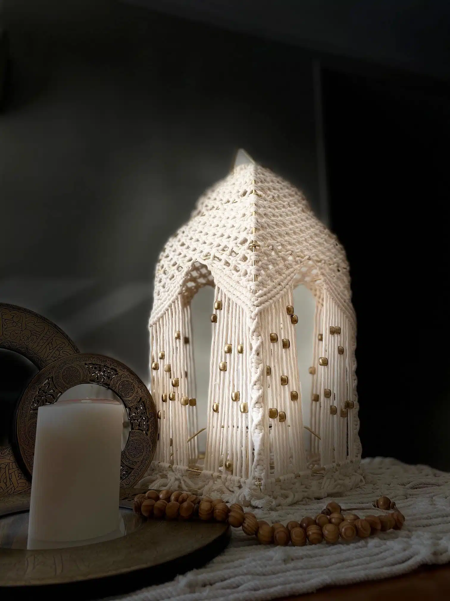 Gold Plated pure cotton Ramadan Lantern, with beautiful golden beads.