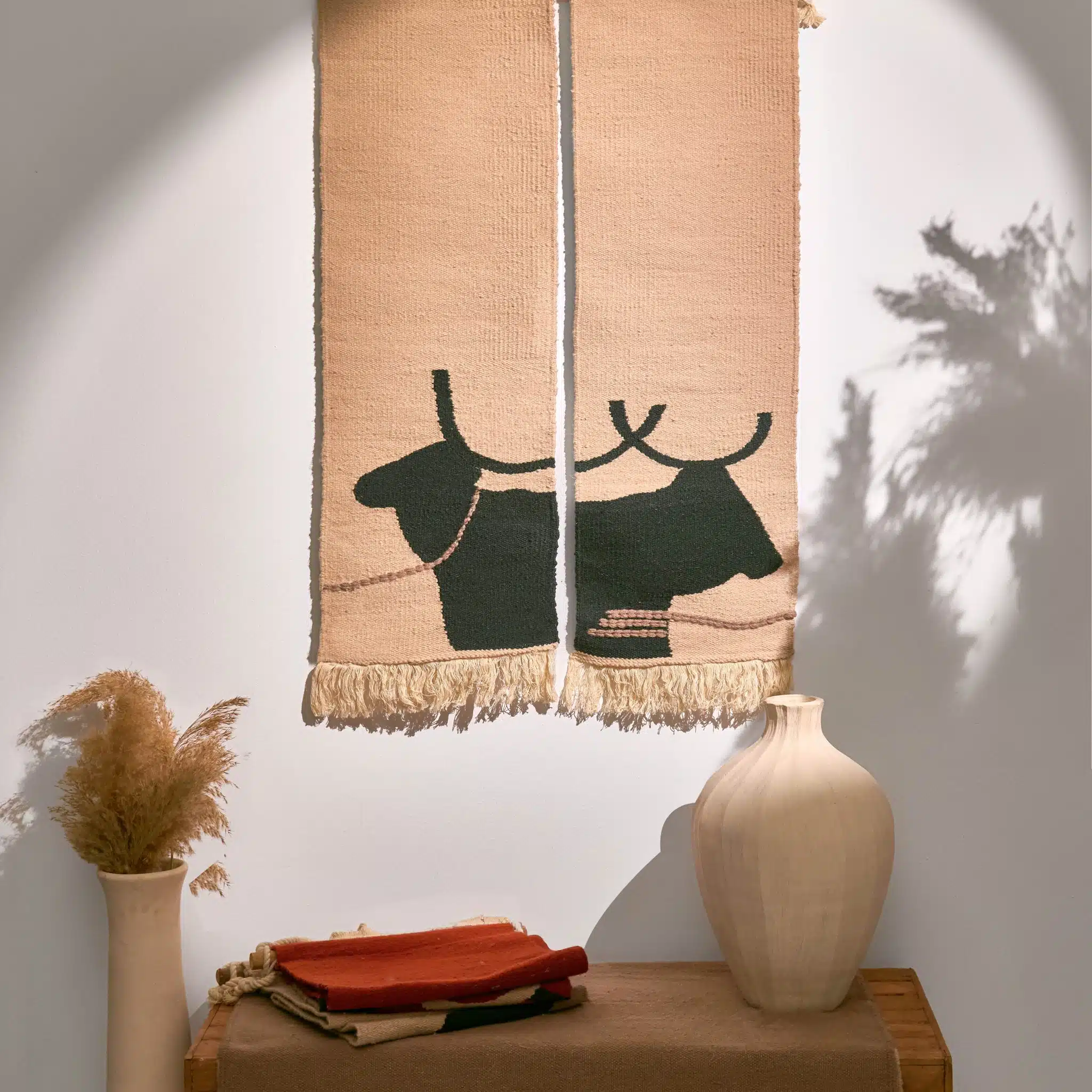 This wall art shows two buffaloes facing sideways, symbolizing the endless cycle of life. The