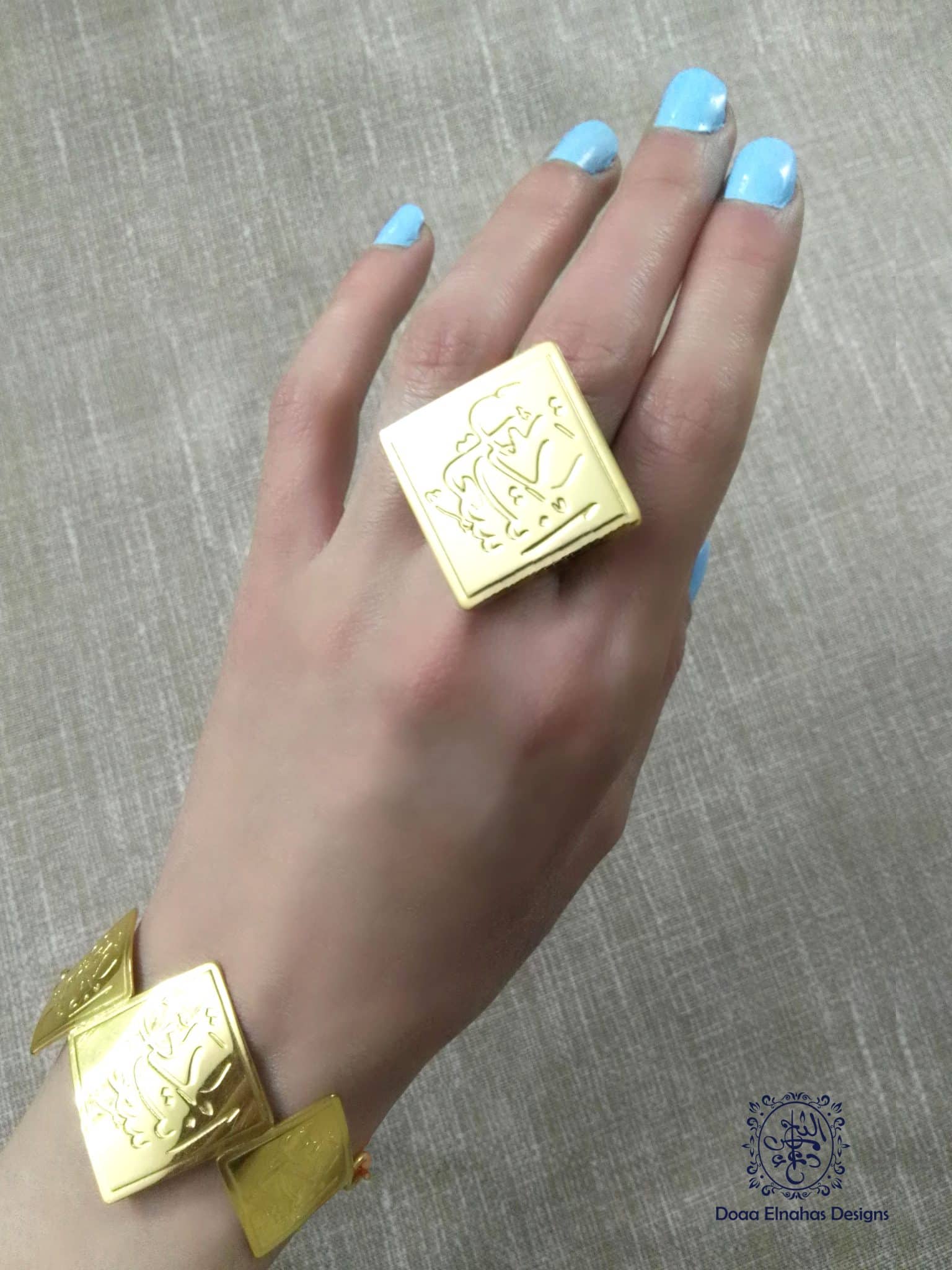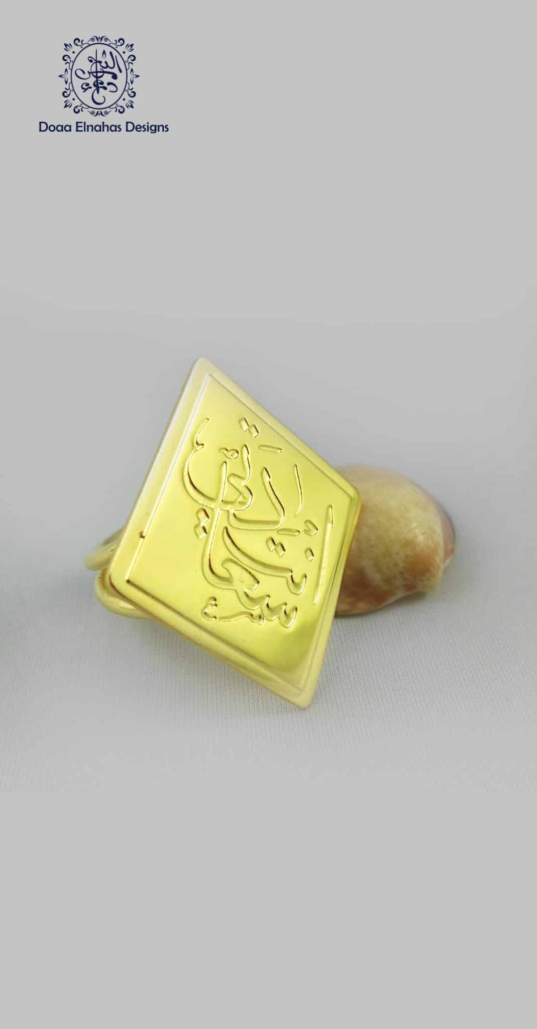 Gold-plated brass ring with Arabic calligraphy engravings “انت سعادتي”