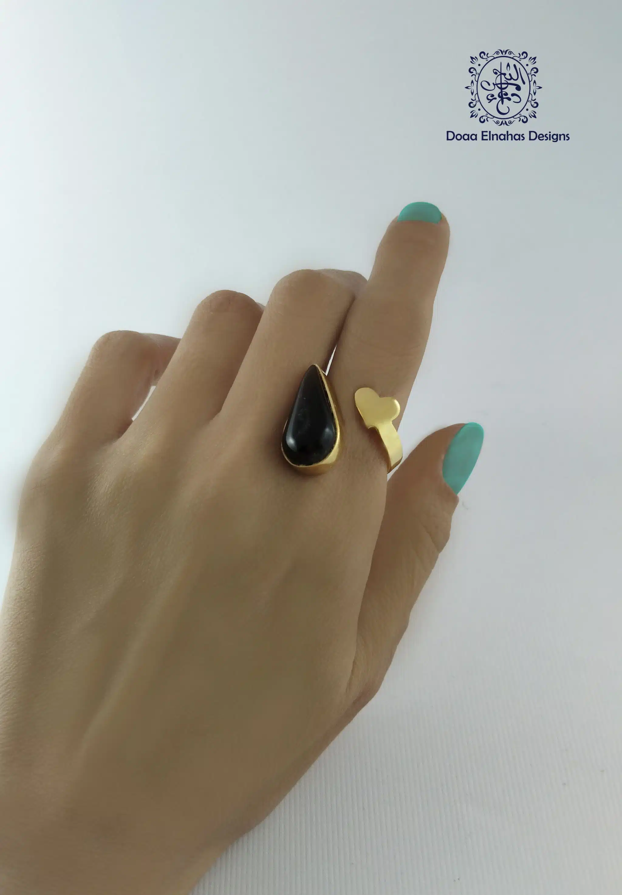 Gold-plated brass and agate ston