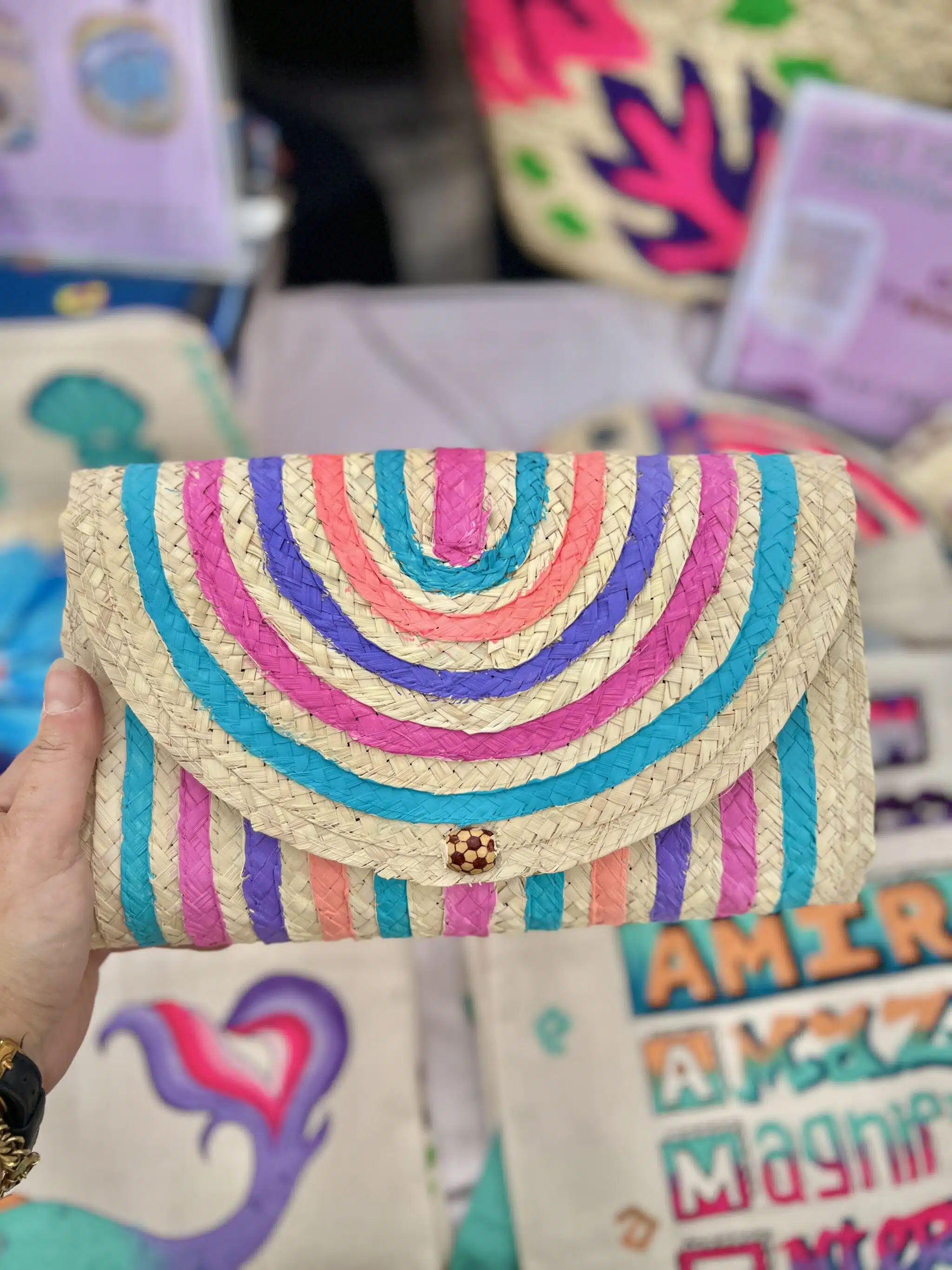 These hand-painted clutches are made of natural straw and feature a vibrant combination of summer colors. With a size of 15 x25cm medium size