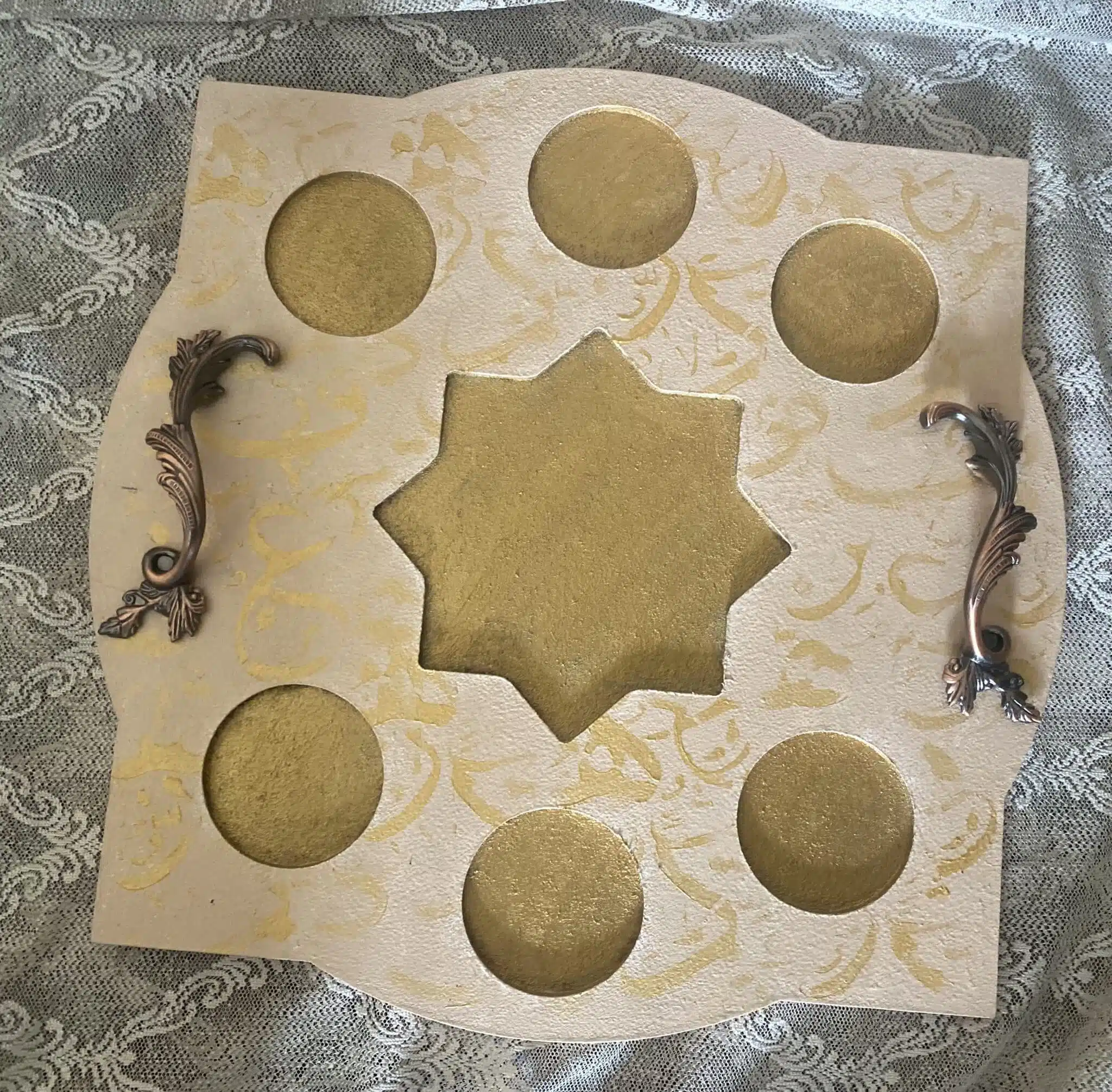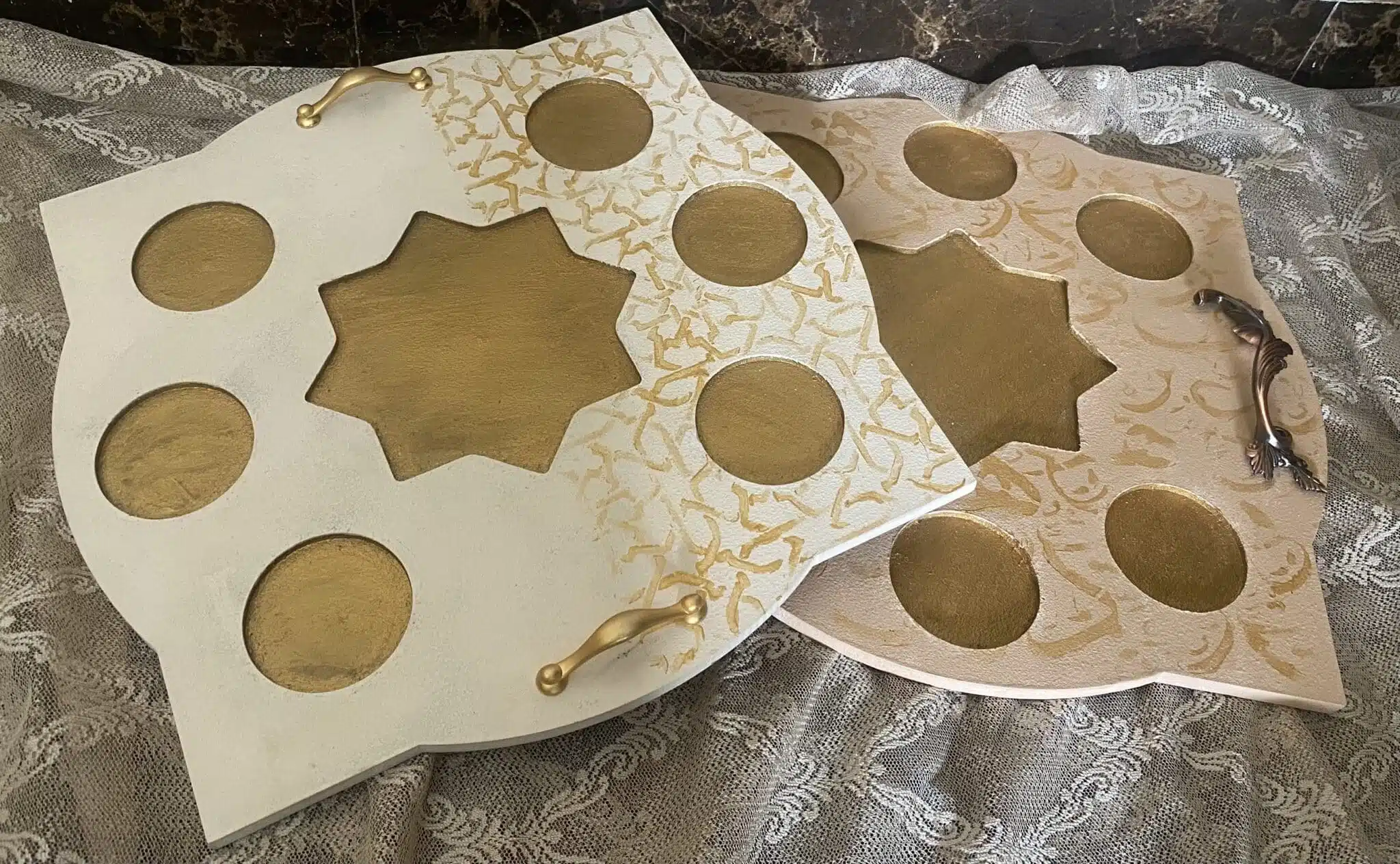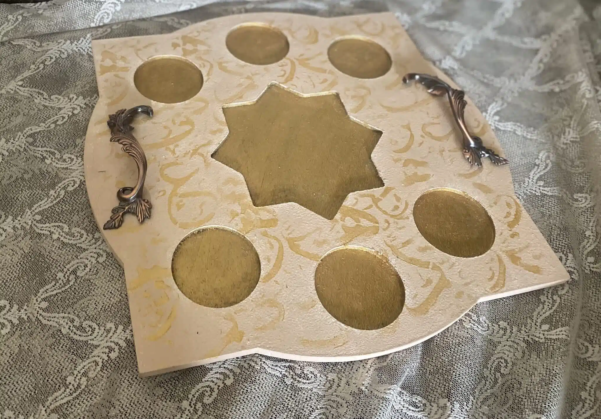 Wooden Ramadan Tray for Arabic Coffee calligraphy design, saumon color x gold
