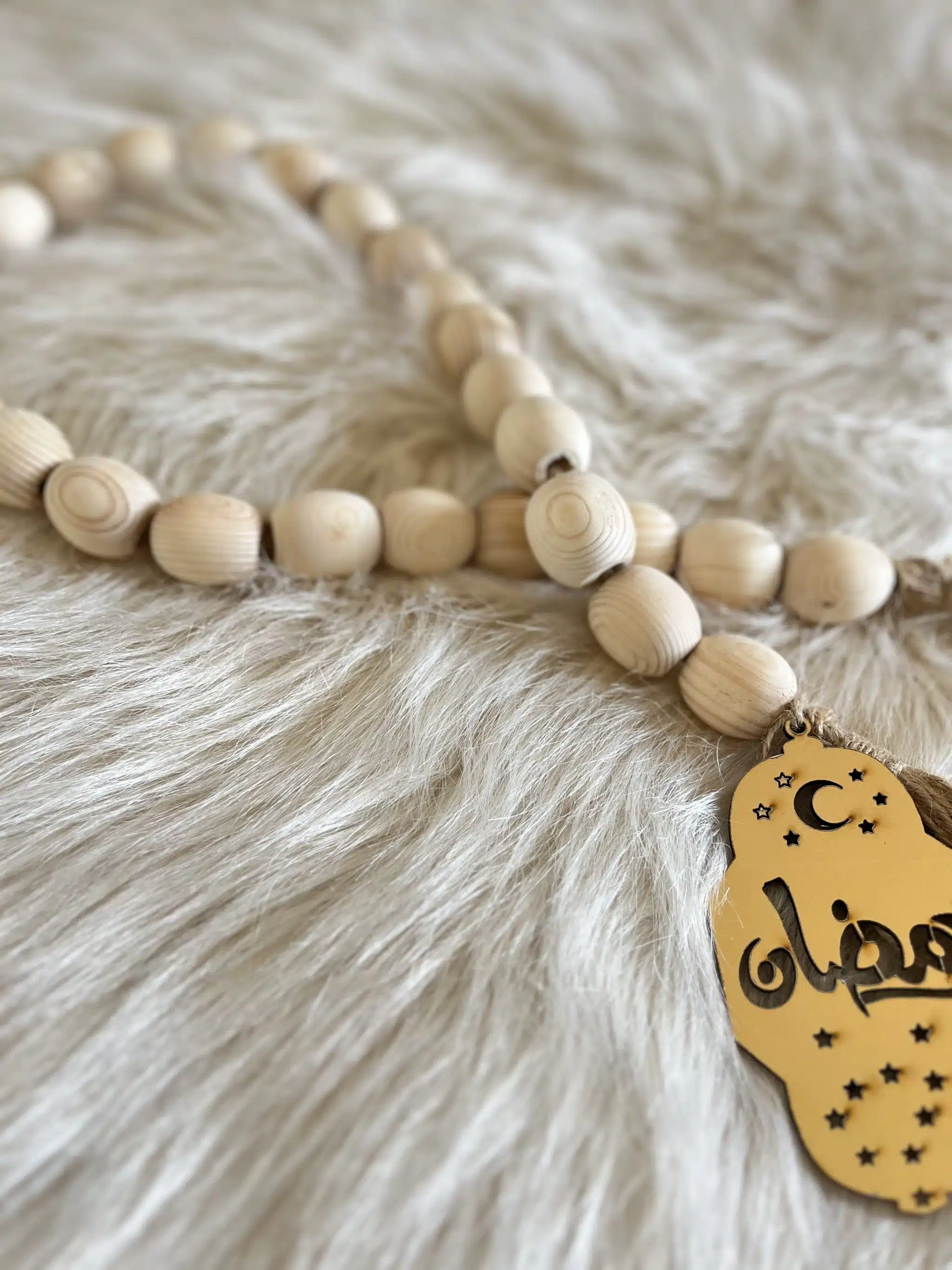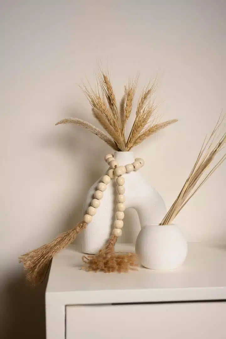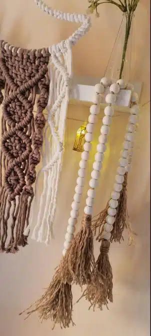 natural wooden pearls and jute