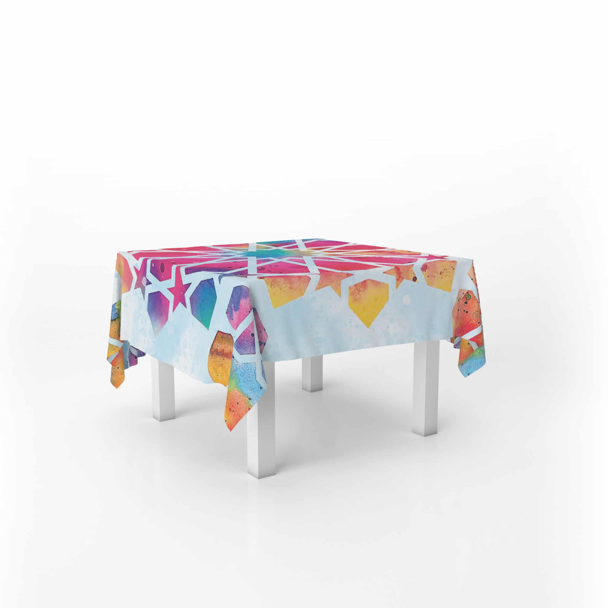 Table Cover Size 140×140 soft fabric mix of polyester & cotton, printed one side and washable on 30 degree.