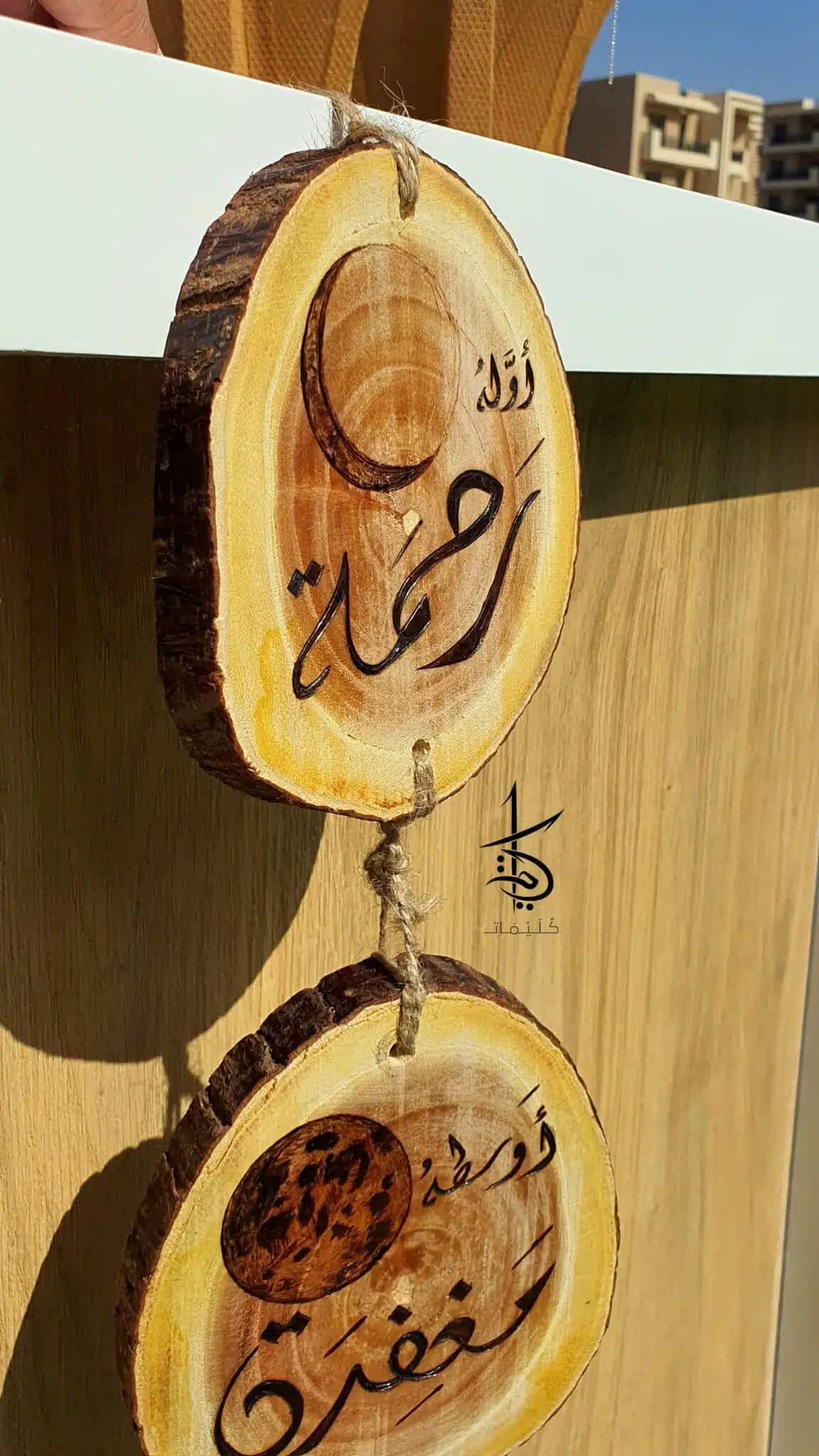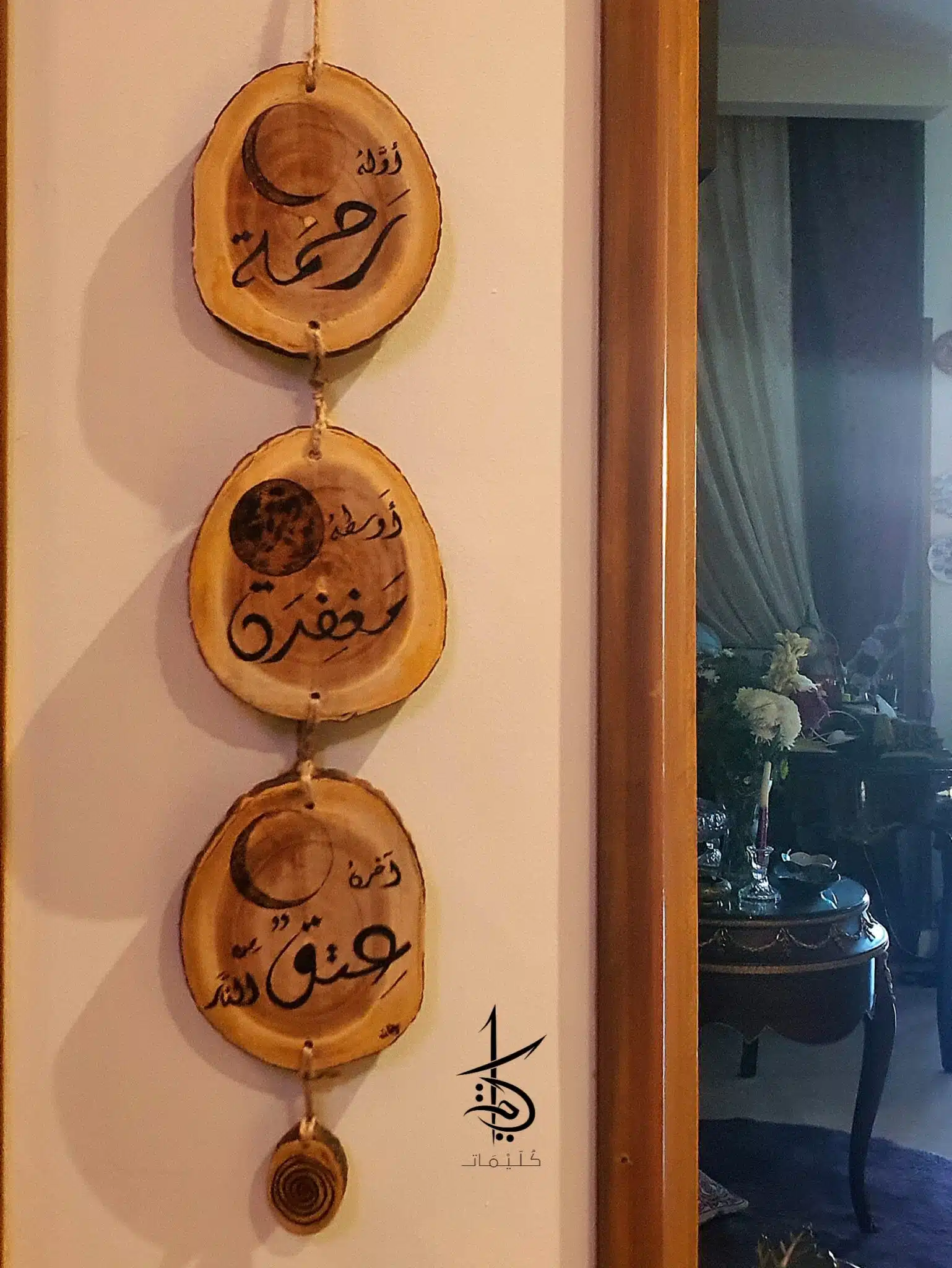 Ramadan moon phases hand-burned on rustic tree slices to add a warm touch to your room: