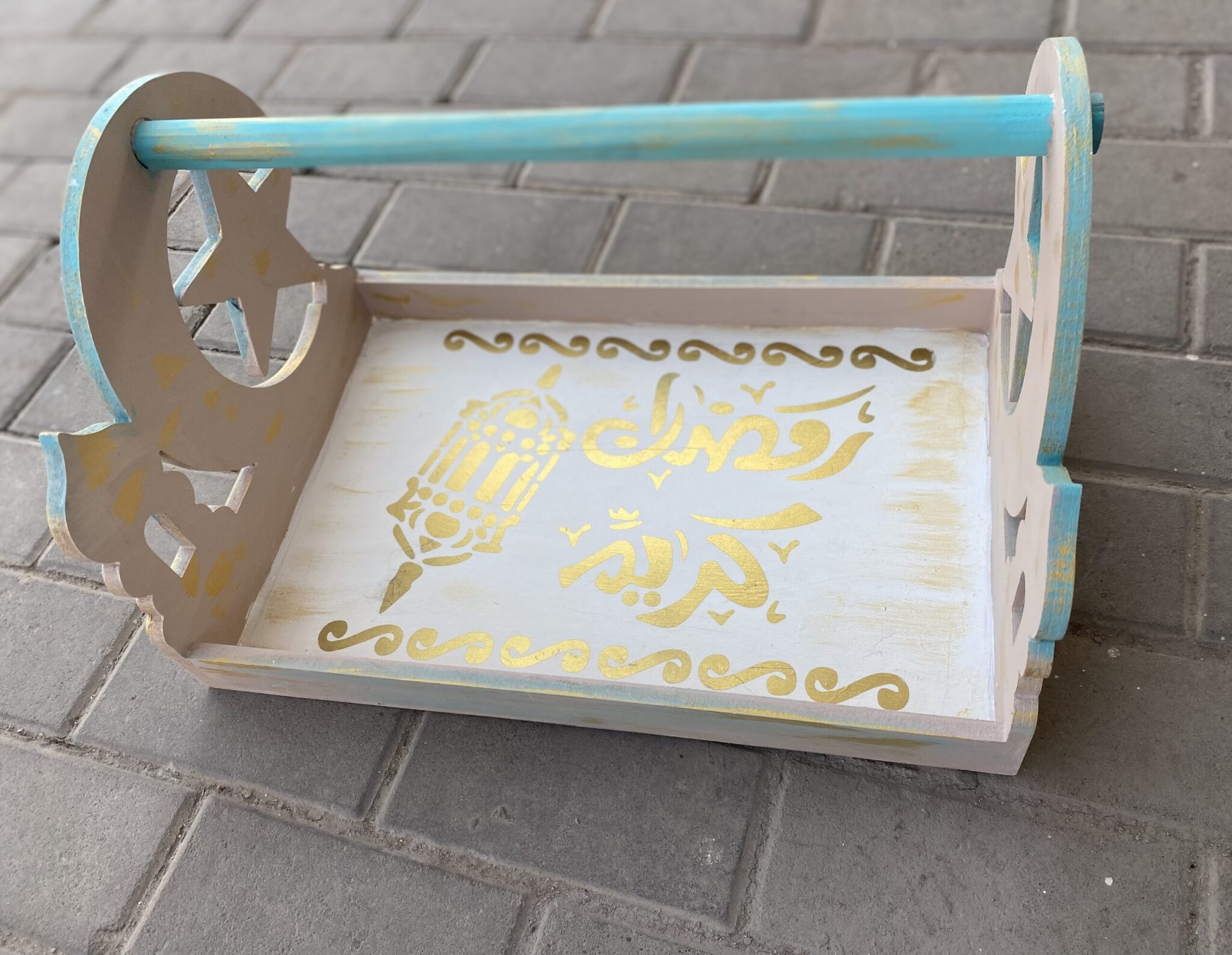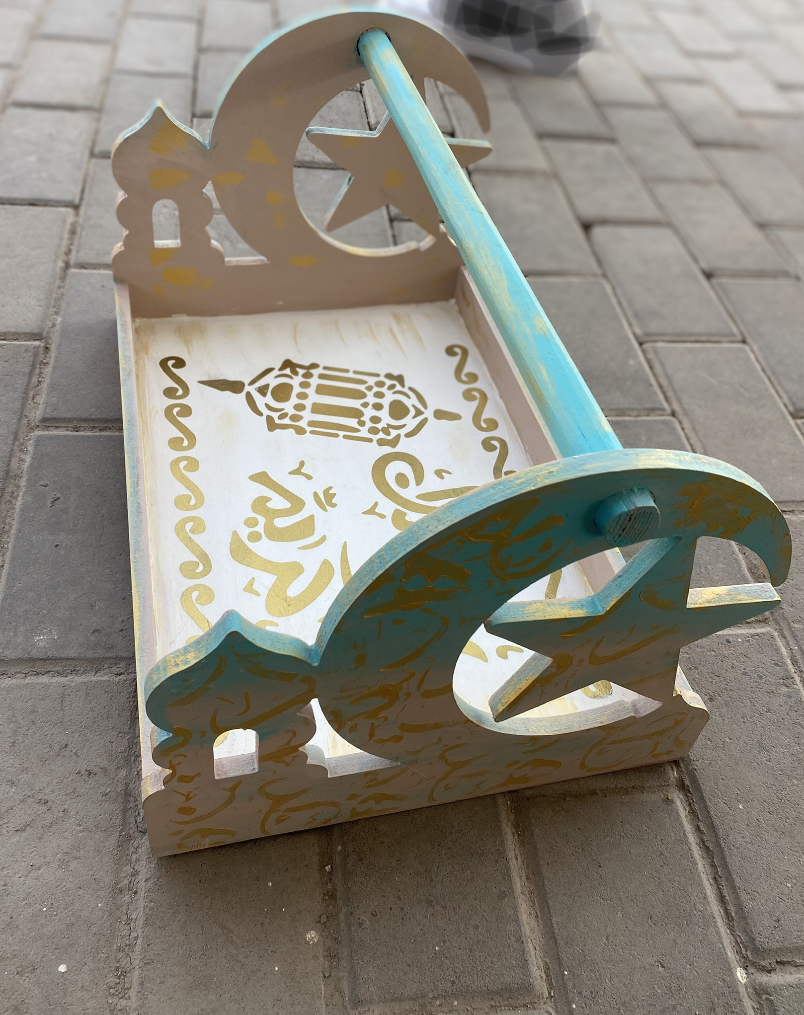 MDF Tray with sides Ramadan Design, Degradée turquoise x beige with touches of gold