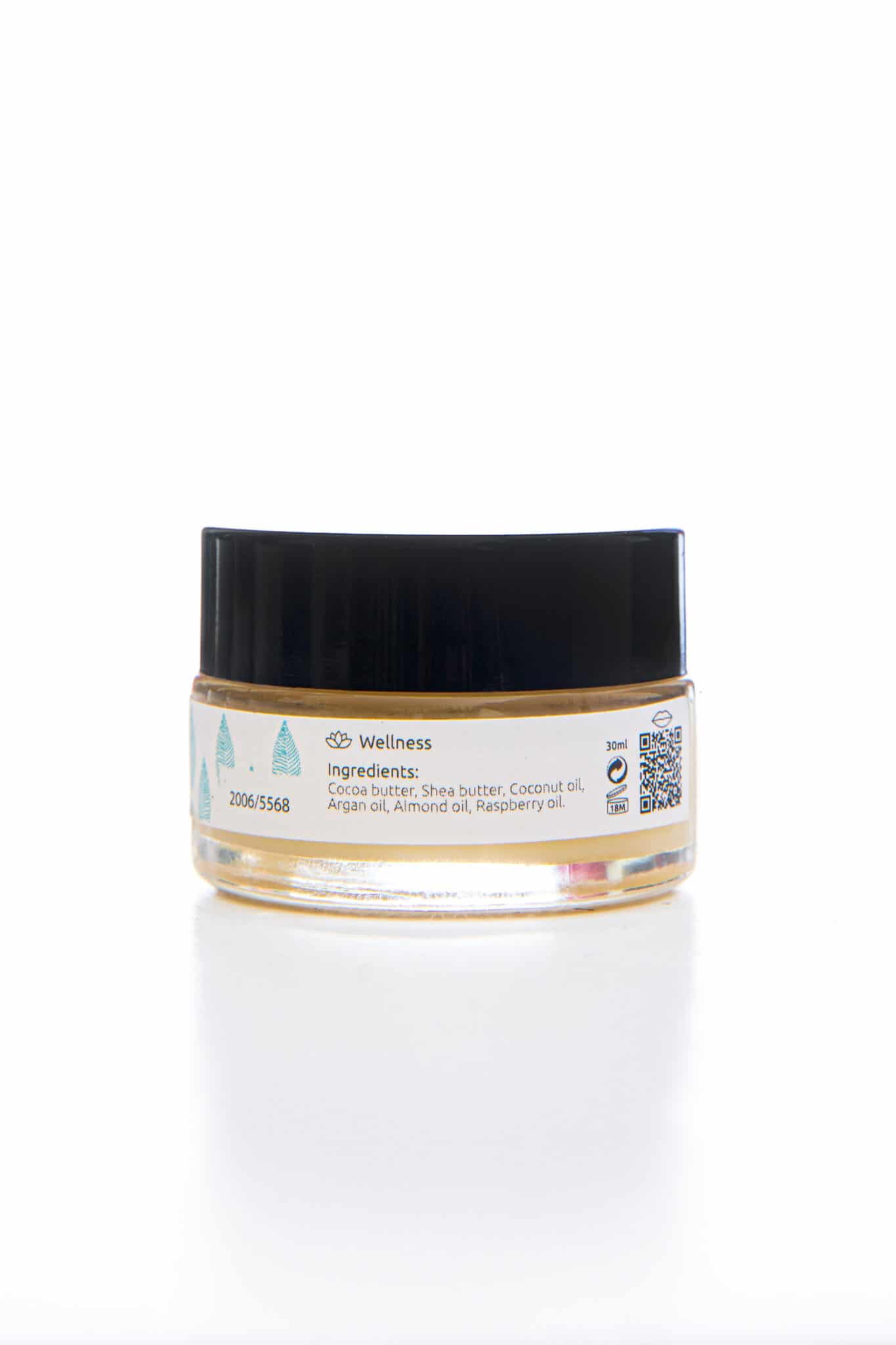 Cocoa butter, shea butter, coconut oil, argan oil, almond oil and raspberry oil.